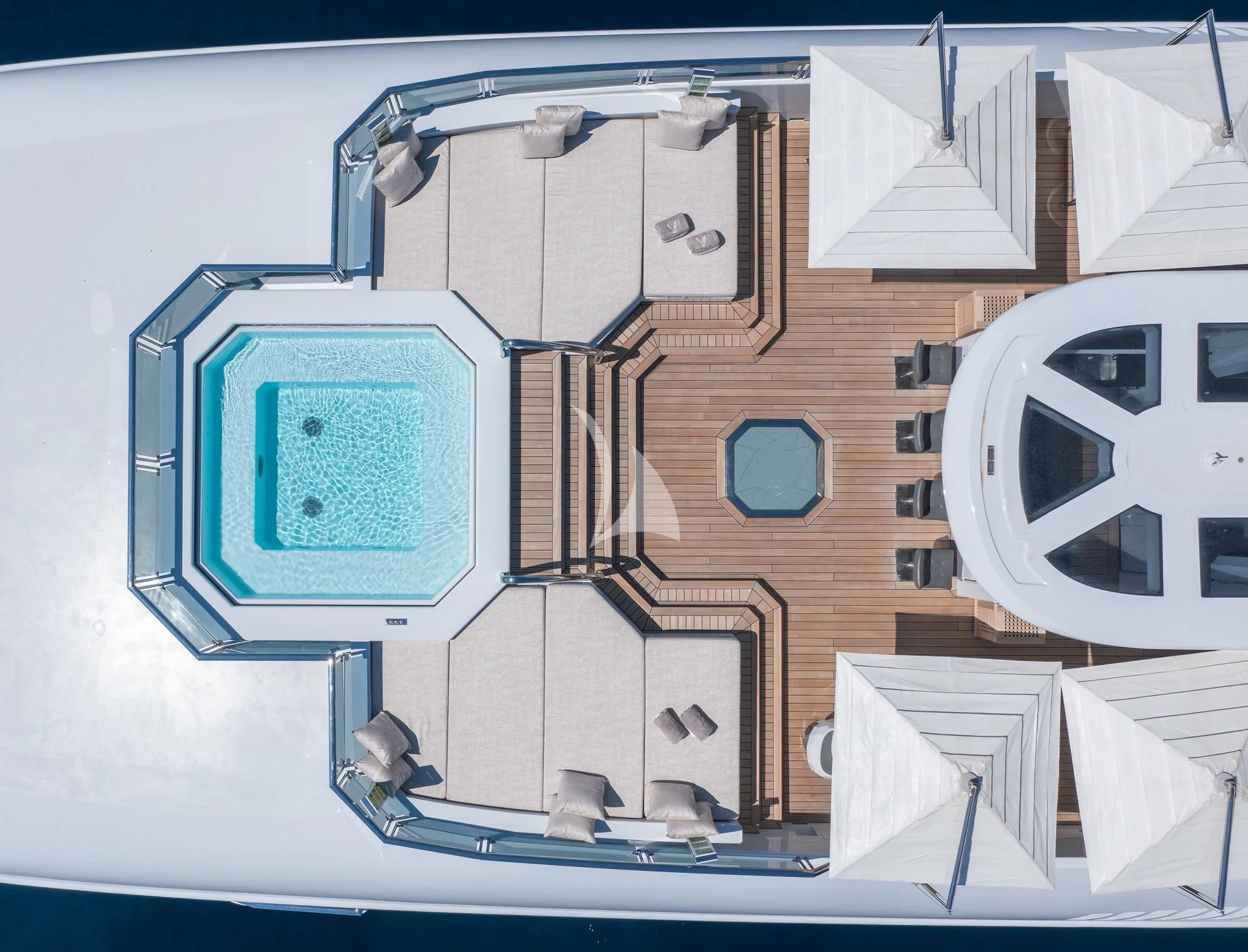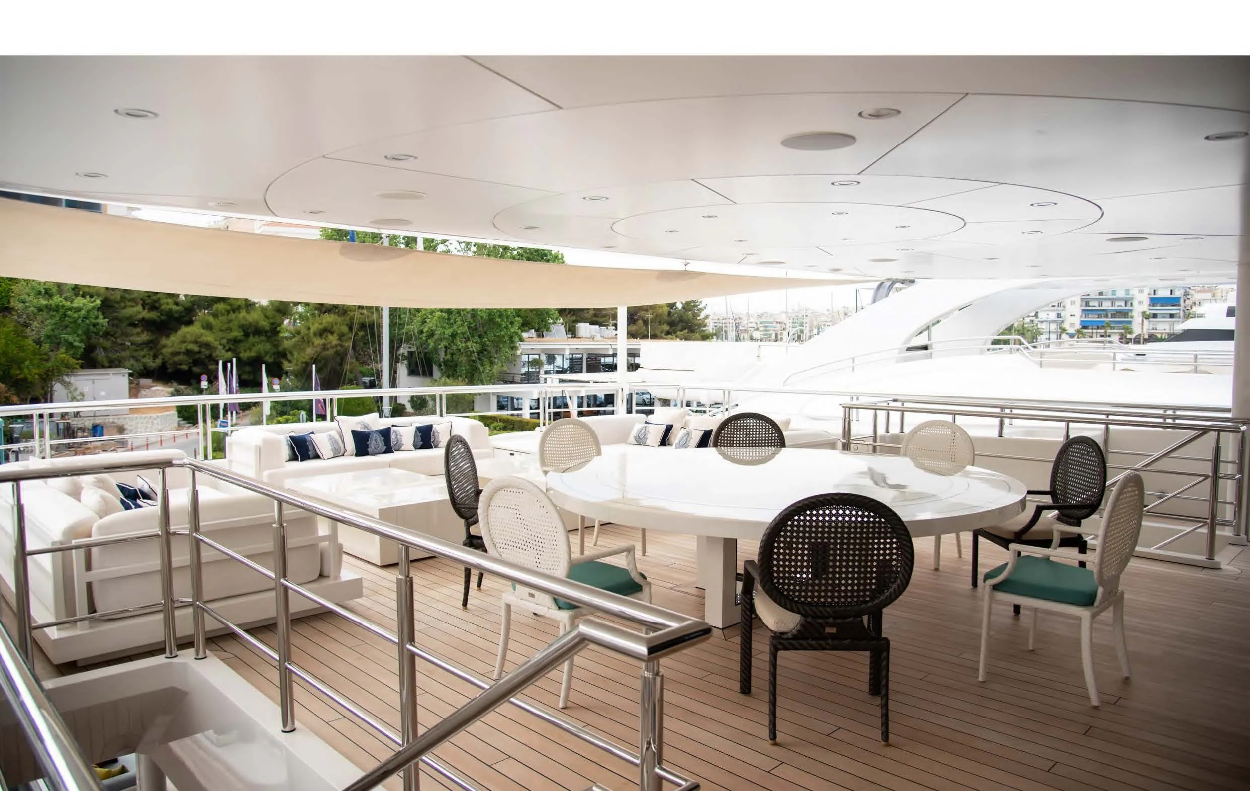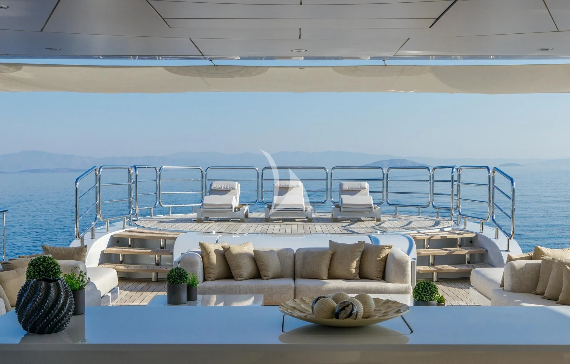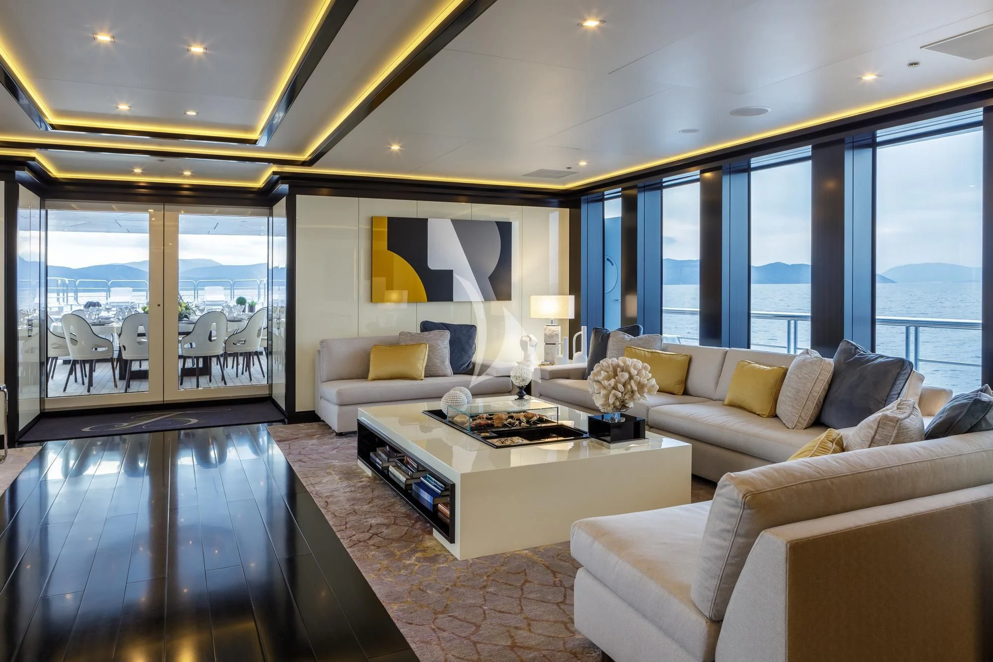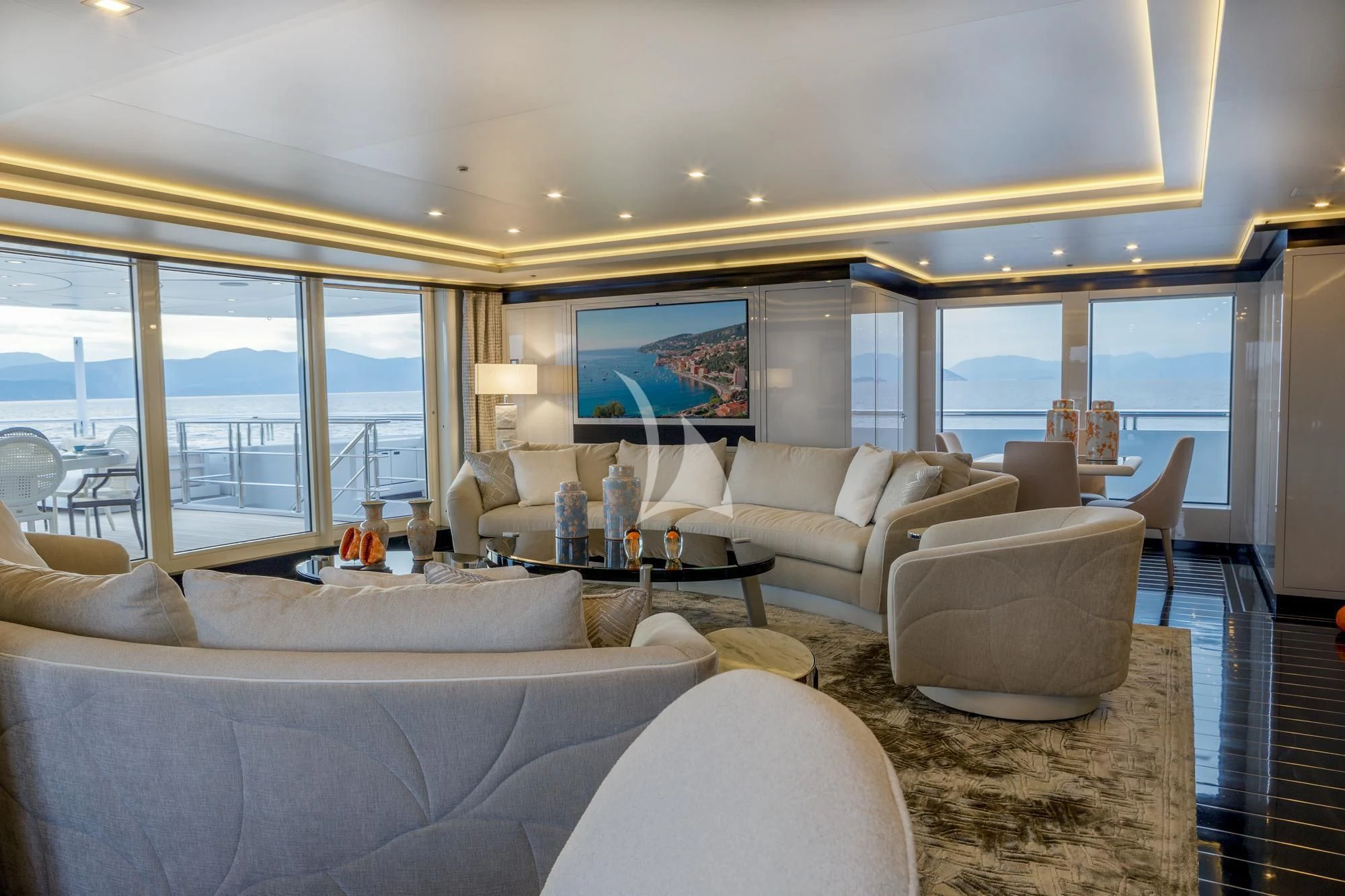 The exterior design of LADY VERA is as captivating as it is elegant. Her steel hull cuts through the waves with grace and precision, while her expansive beam of 39 feet (12.6 meters) provides ample space for onboard amenities and leisure areas. The sundeck invites guests to bask under the sun or enjoy alfresco dining with stunning panoramic views. The yacht's standout feature is undoubtedly its helipad, allowing for seamless access from air to sea, demonstrating that no aspect of luxury has been overlooked.