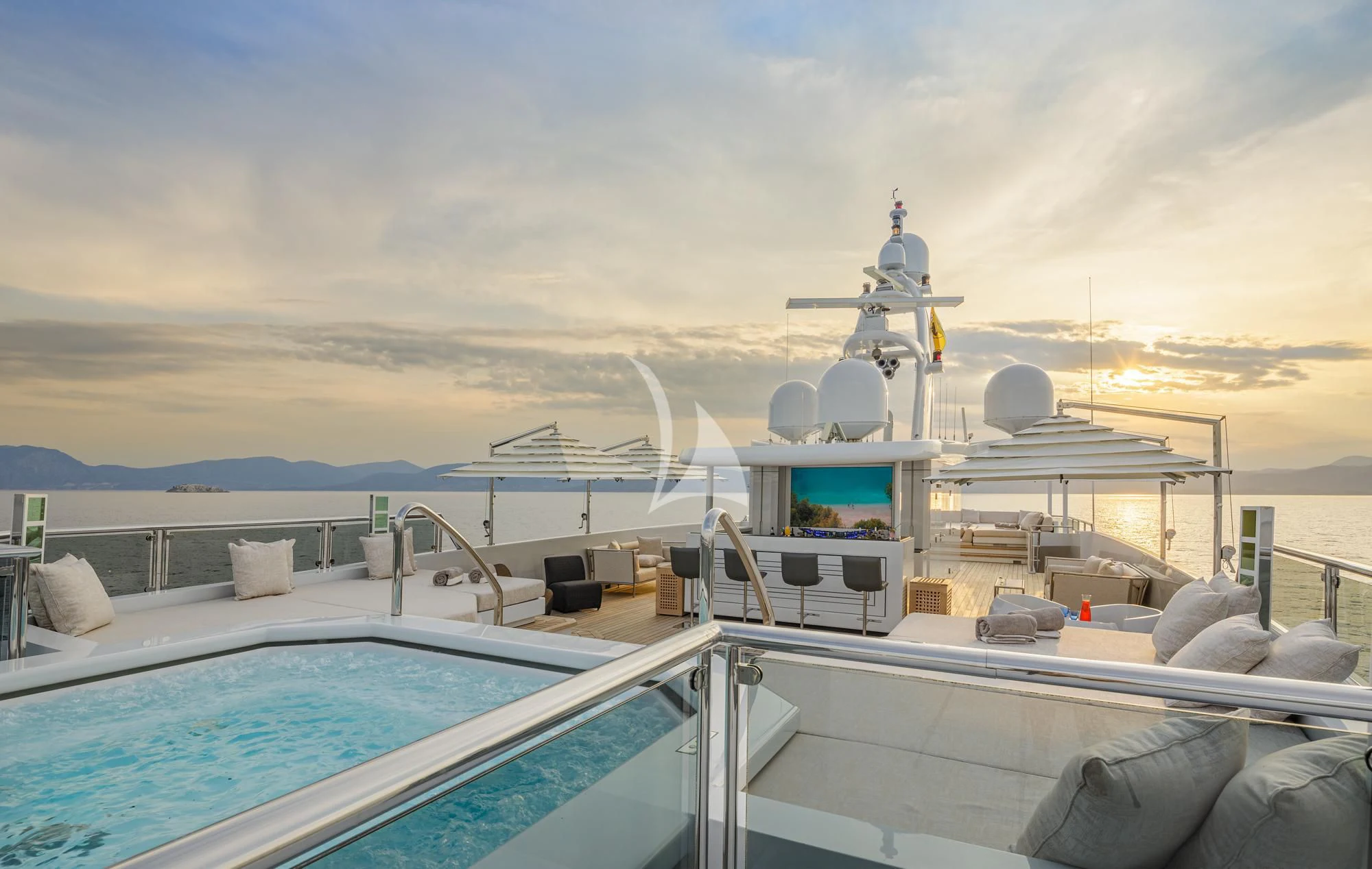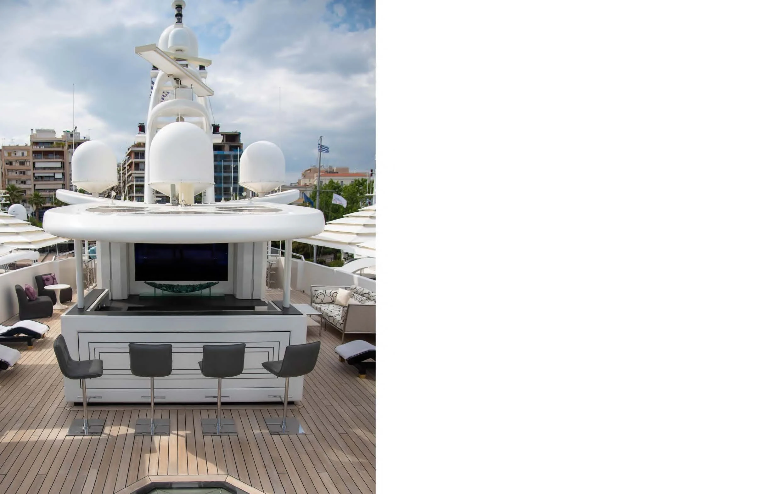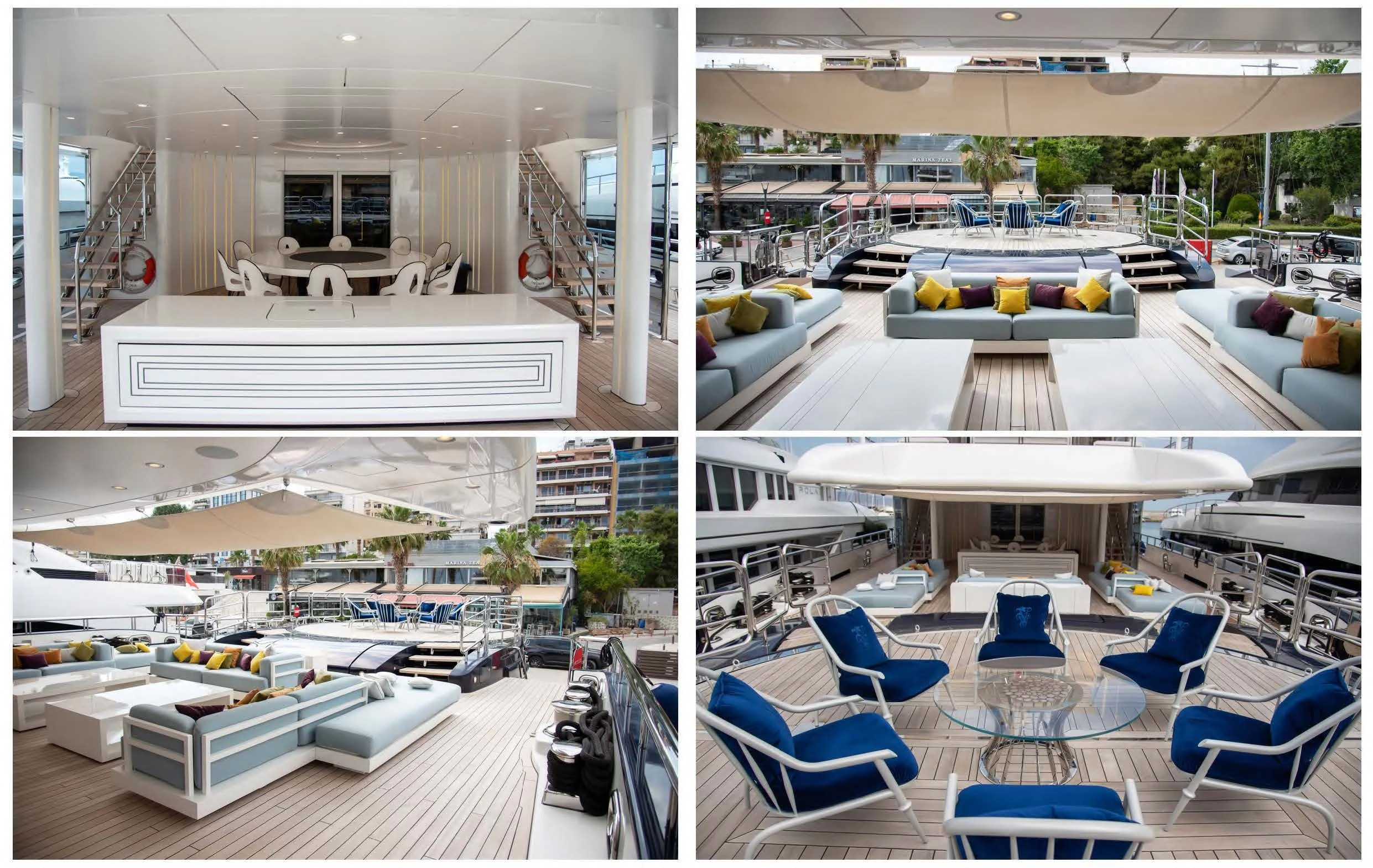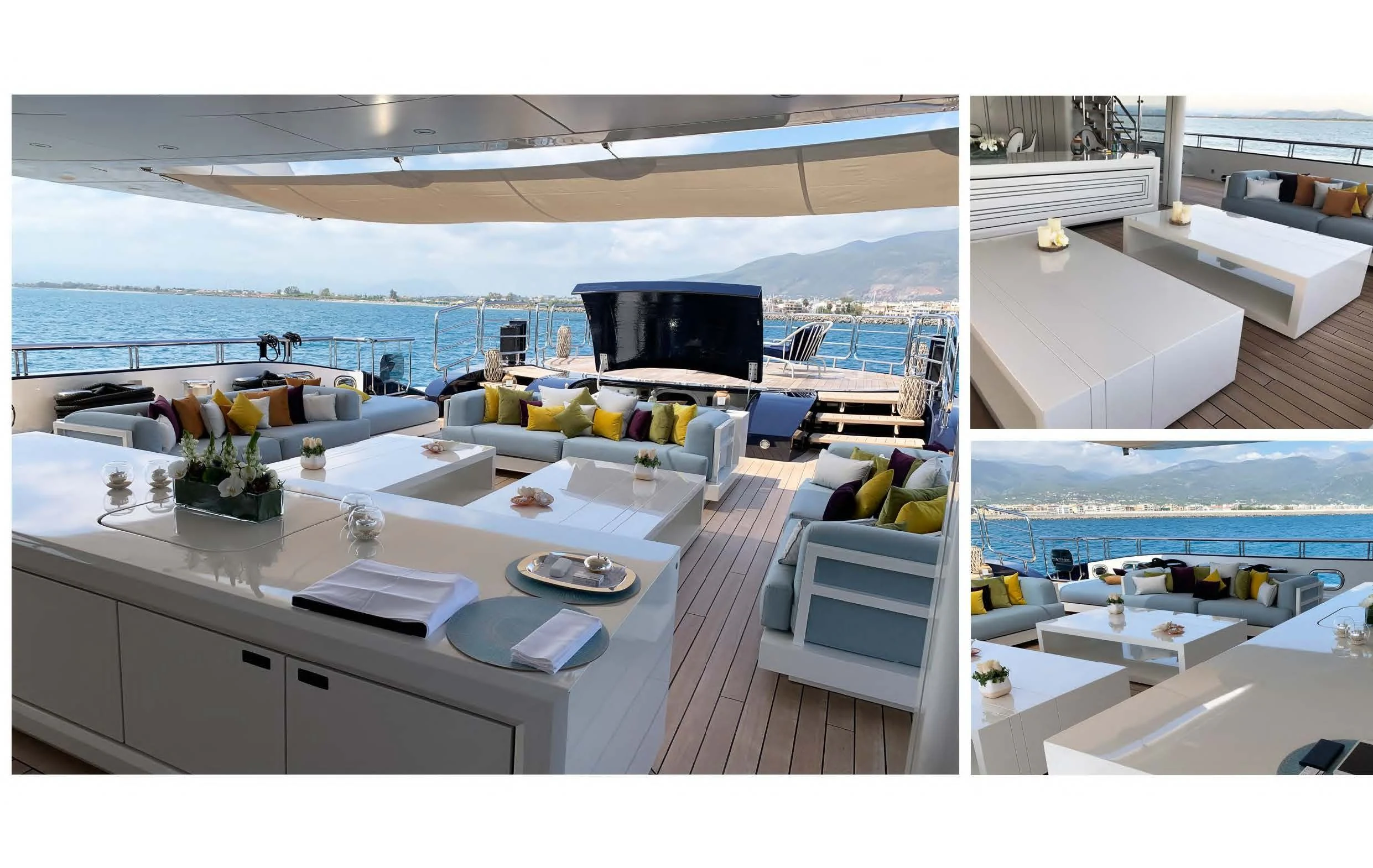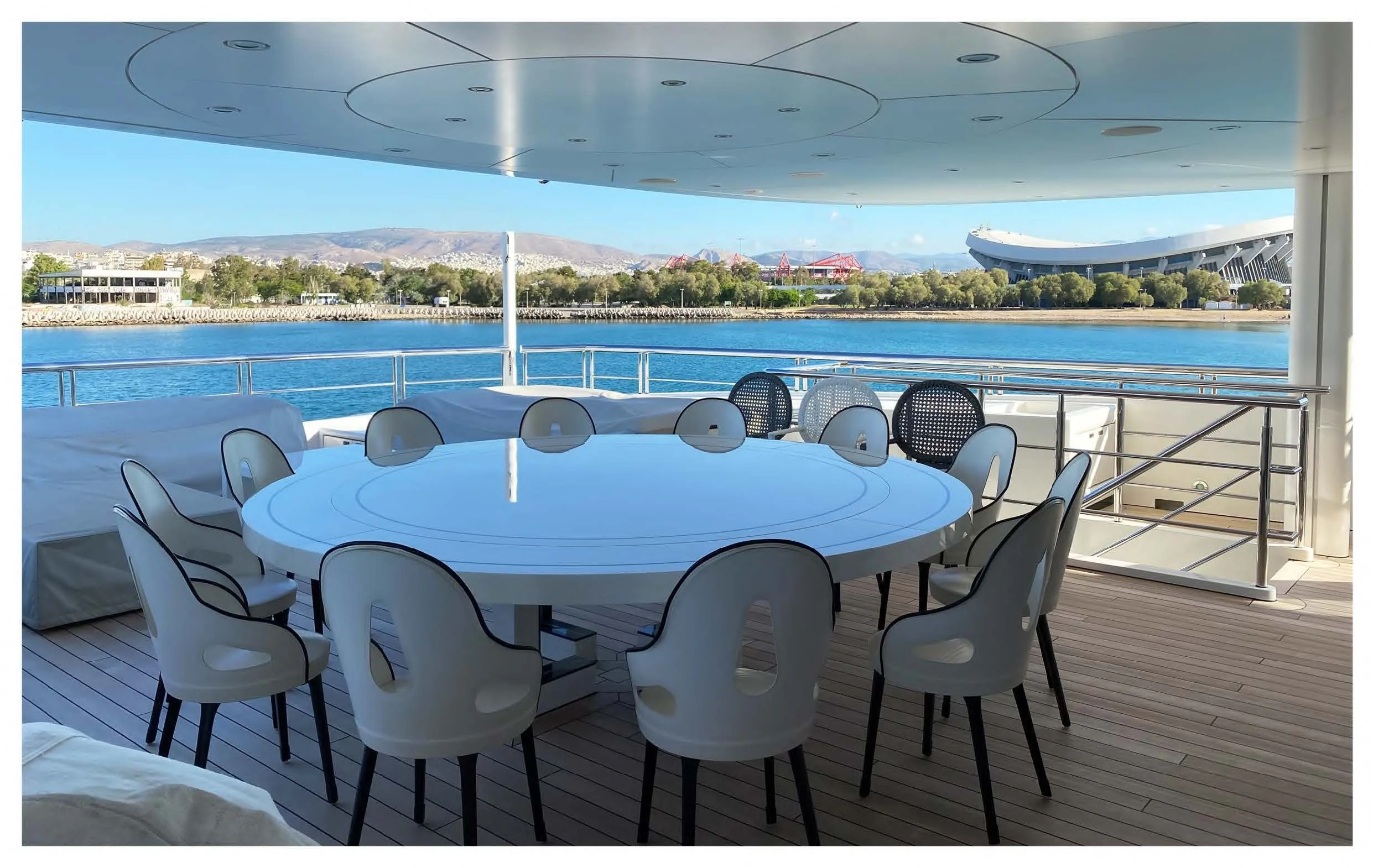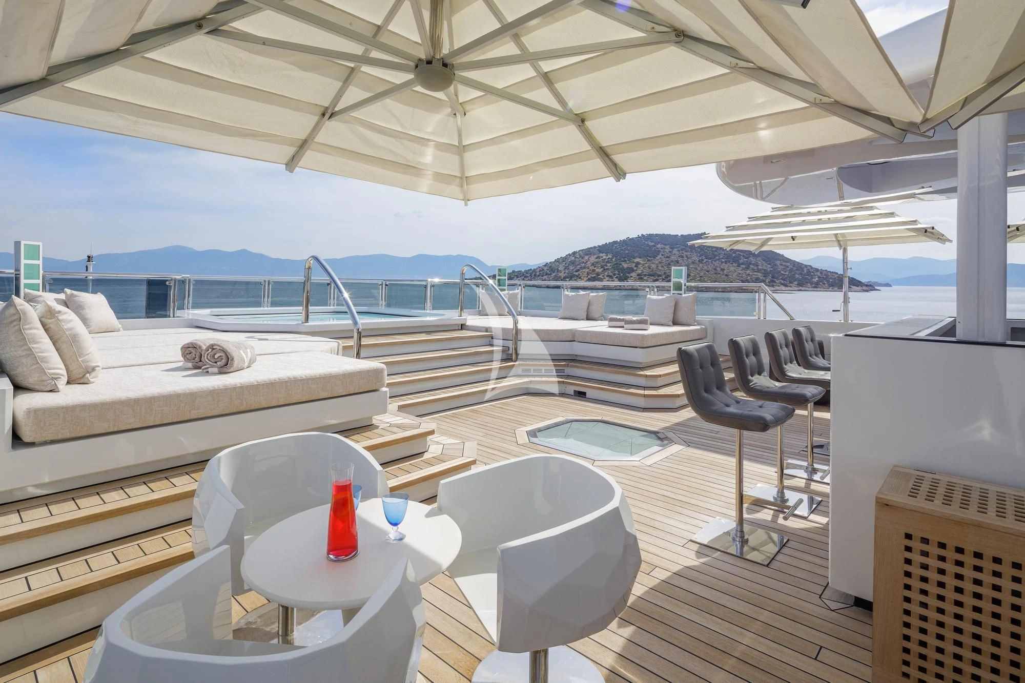 The exterior design of LADY VERA is as captivating as it is elegant. Her steel hull cuts through the waves with grace and precision, while her expansive beam of 39 feet (12.6 meters) provides ample space for onboard amenities and leisure areas. The sundeck invites guests to bask under the sun or enjoy alfresco dining with stunning panoramic views. The yacht's standout feature is undoubtedly its helipad, allowing for seamless access from air to sea, demonstrating that no aspect of luxury has been overlooked.