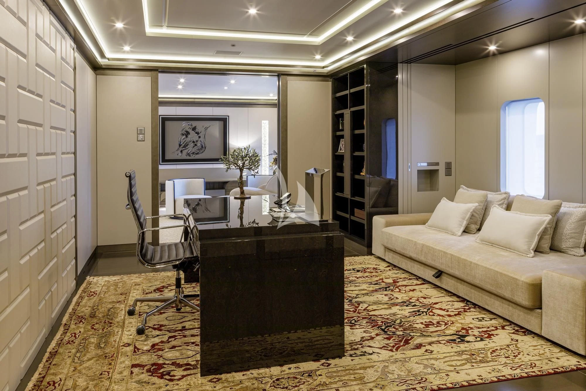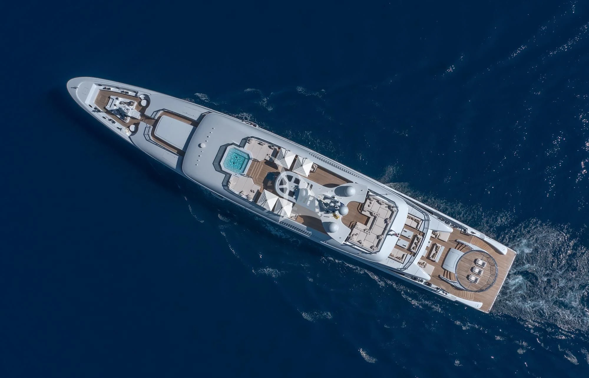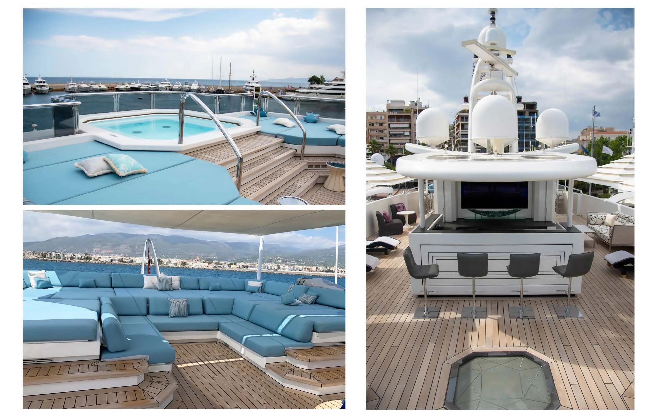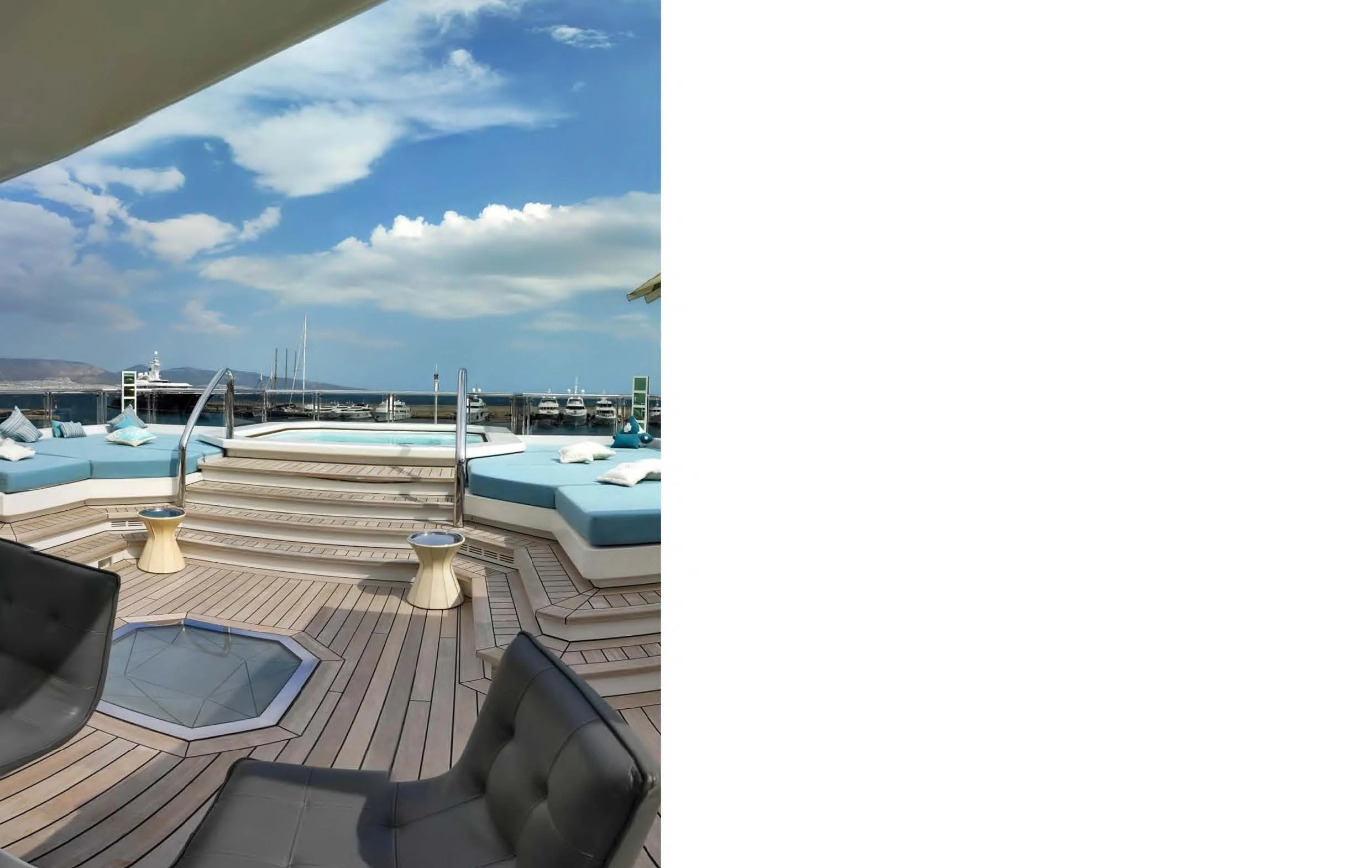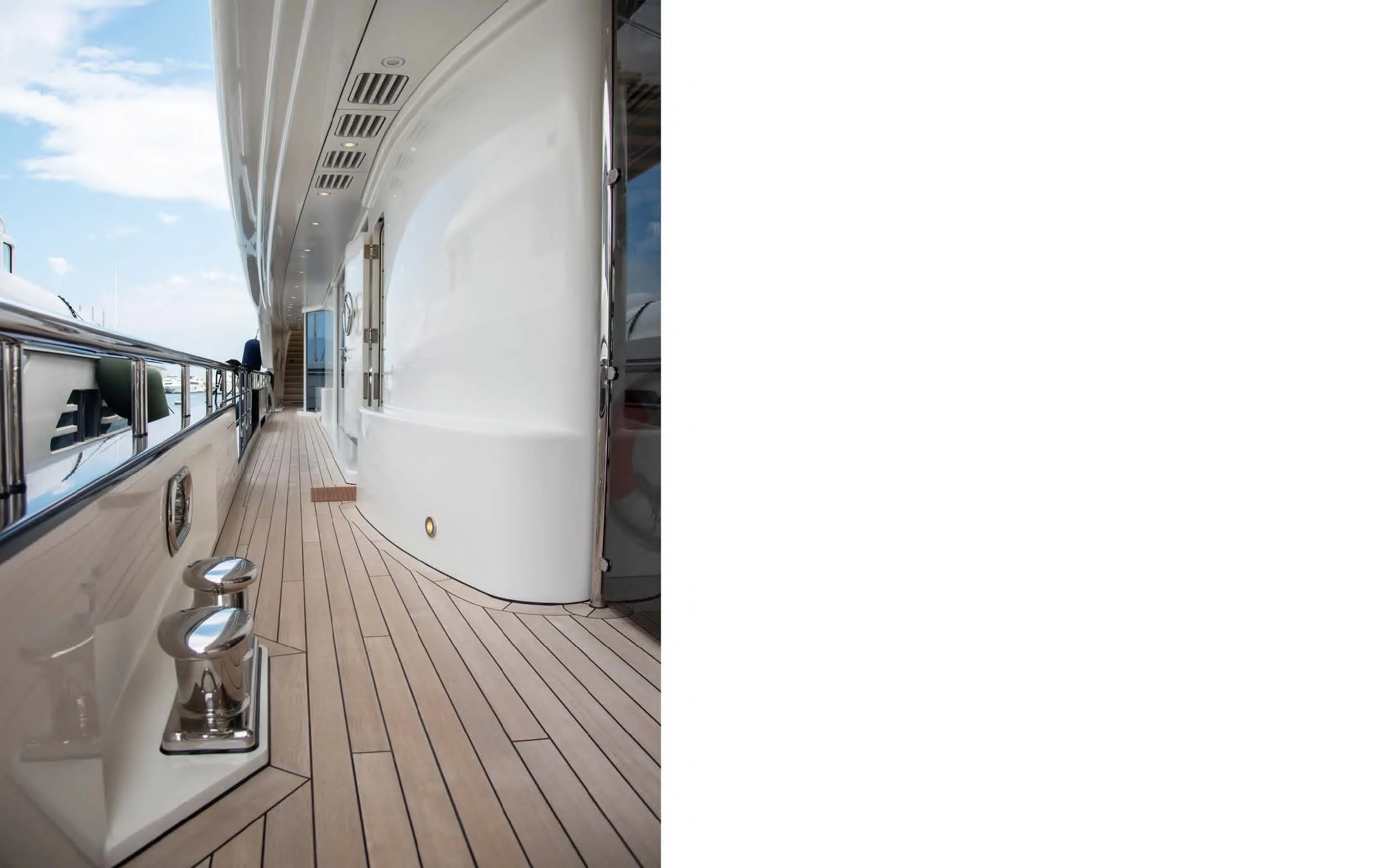 The exterior design of LADY VERA is as captivating as it is elegant. Her steel hull cuts through the waves with grace and precision, while her expansive beam of 39 feet (12.6 meters) provides ample space for onboard amenities and leisure areas. The sundeck invites guests to bask under the sun or enjoy alfresco dining with stunning panoramic views. The yacht's standout feature is undoubtedly its helipad, allowing for seamless access from air to sea, demonstrating that no aspect of luxury has been overlooked.