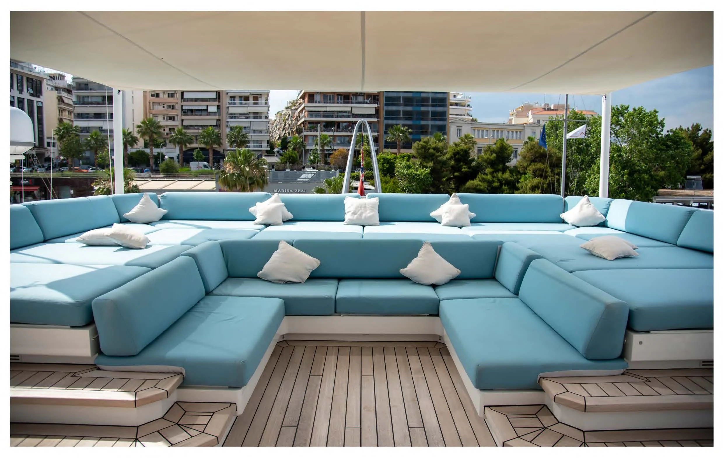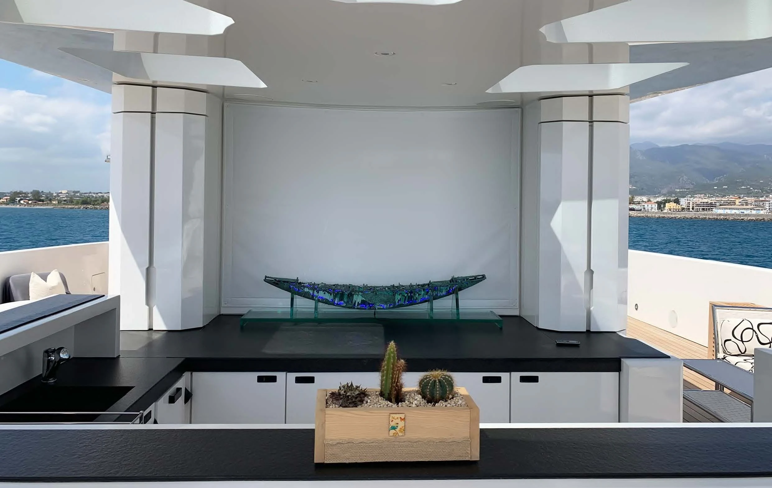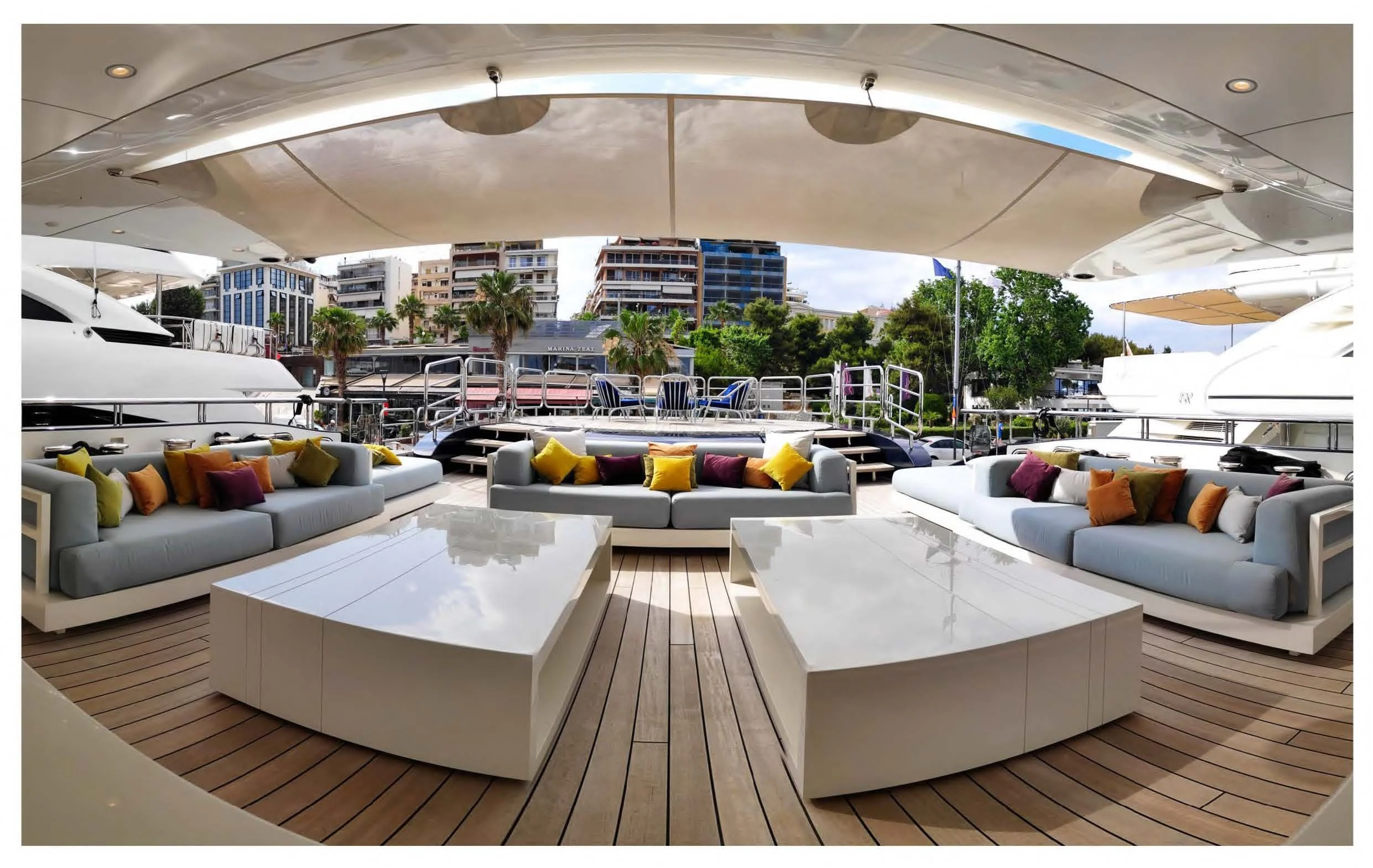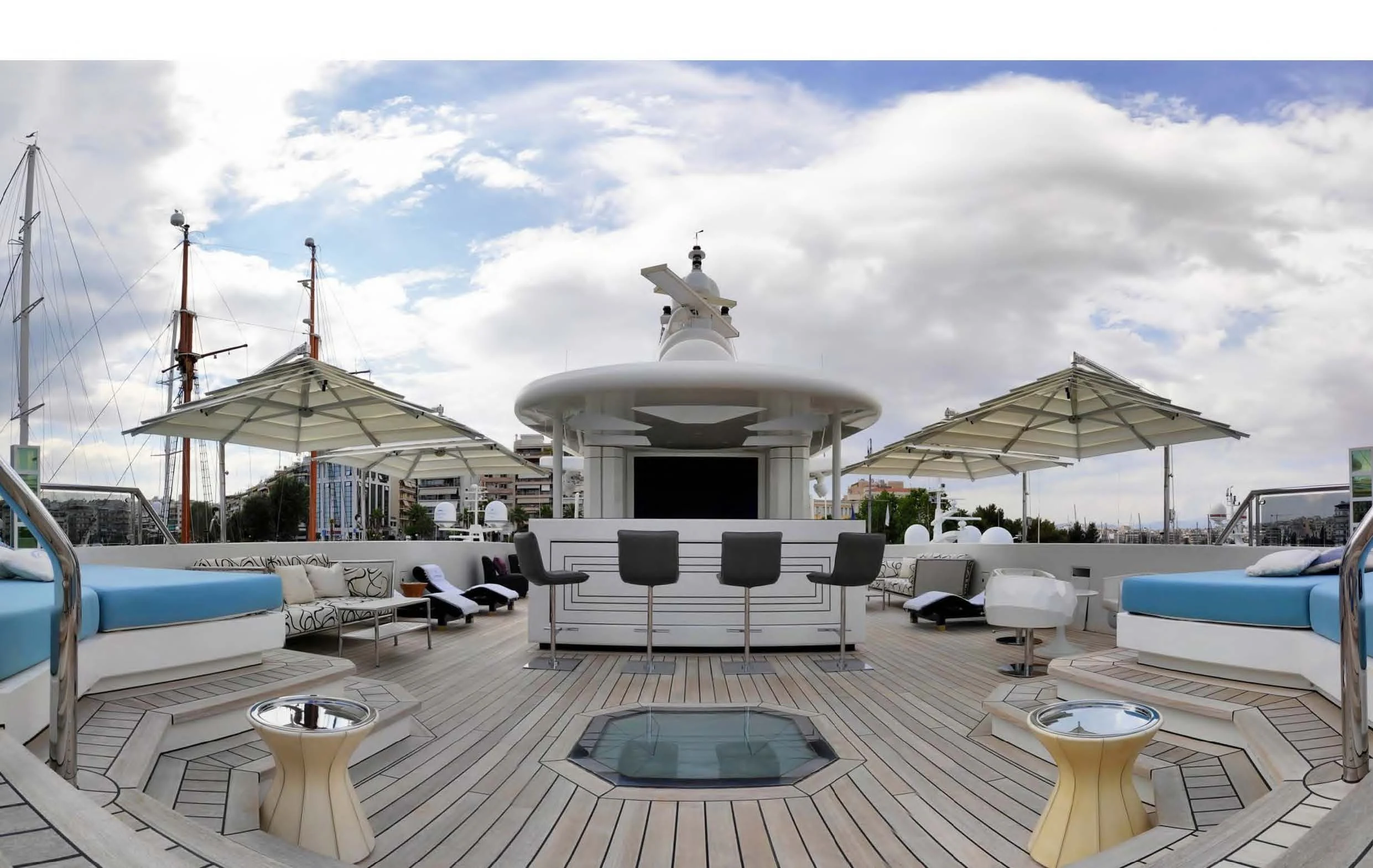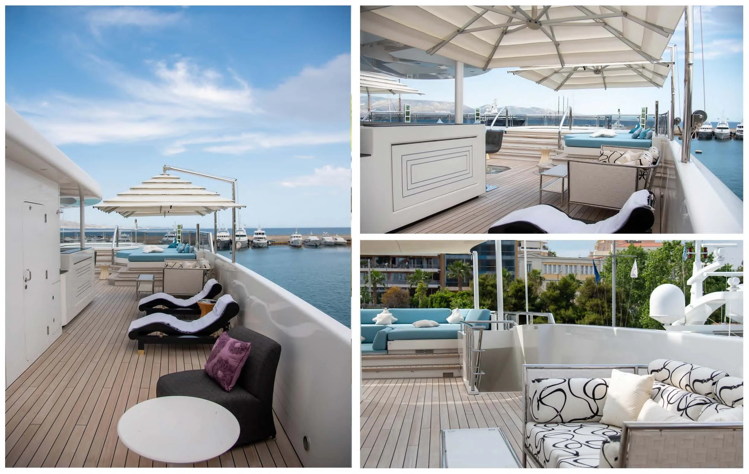 The exterior design of LADY VERA is as captivating as it is elegant. Her steel hull cuts through the waves with grace and precision, while her expansive beam of 39 feet (12.6 meters) provides ample space for onboard amenities and leisure areas. The sundeck invites guests to bask under the sun or enjoy alfresco dining with stunning panoramic views. The yacht's standout feature is undoubtedly its helipad, allowing for seamless access from air to sea, demonstrating that no aspect of luxury has been overlooked.