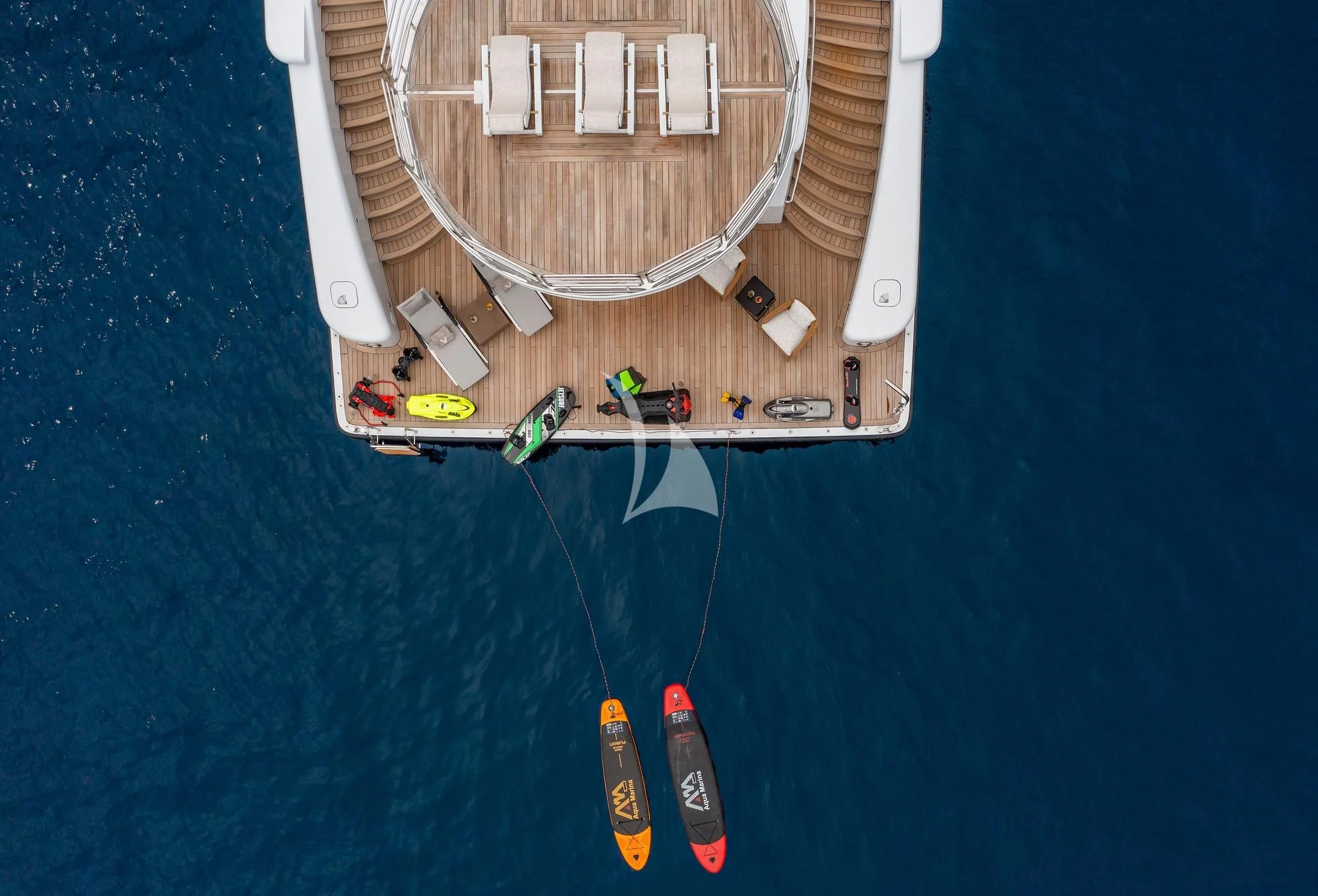 Onboard amenities further elevate the experience aboard LADY VERA; lavish lounging areas provide perfect spots for socializing or unwinding after a day filled with adventure or relaxation at the beach club—an idyllic setting where sea meets luxury in harmony. For those seeking thrill beyond tranquility, two MTU 16V 4000 M60 engines power this beauty—each boasting an impressive output of over 2000 horsepower—thus ensuring swift cruises at speeds up to 17 knots.