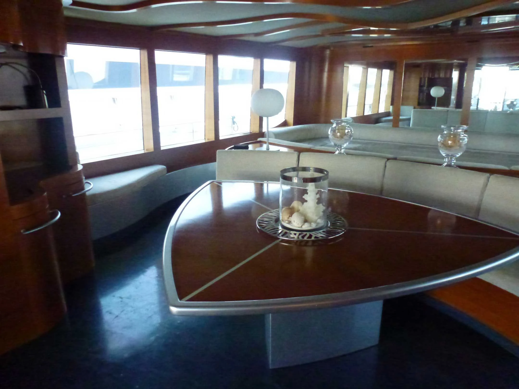 The hull, crafted from mahogany, adds to her classic charm while ensuring robust performance on the water. With her maximum speed of 30 knots and cruising speed of 27 knots powered by twin Deutz AG engines each delivering an impressive 2300 hp / 1715 kW, SATORI offers both swift travel and serene cruising experiences. Her beam measures at an expansive 24 feet with additional space stretching out to create an overall length of over 32 meters, providing ample space for guests onboard.
