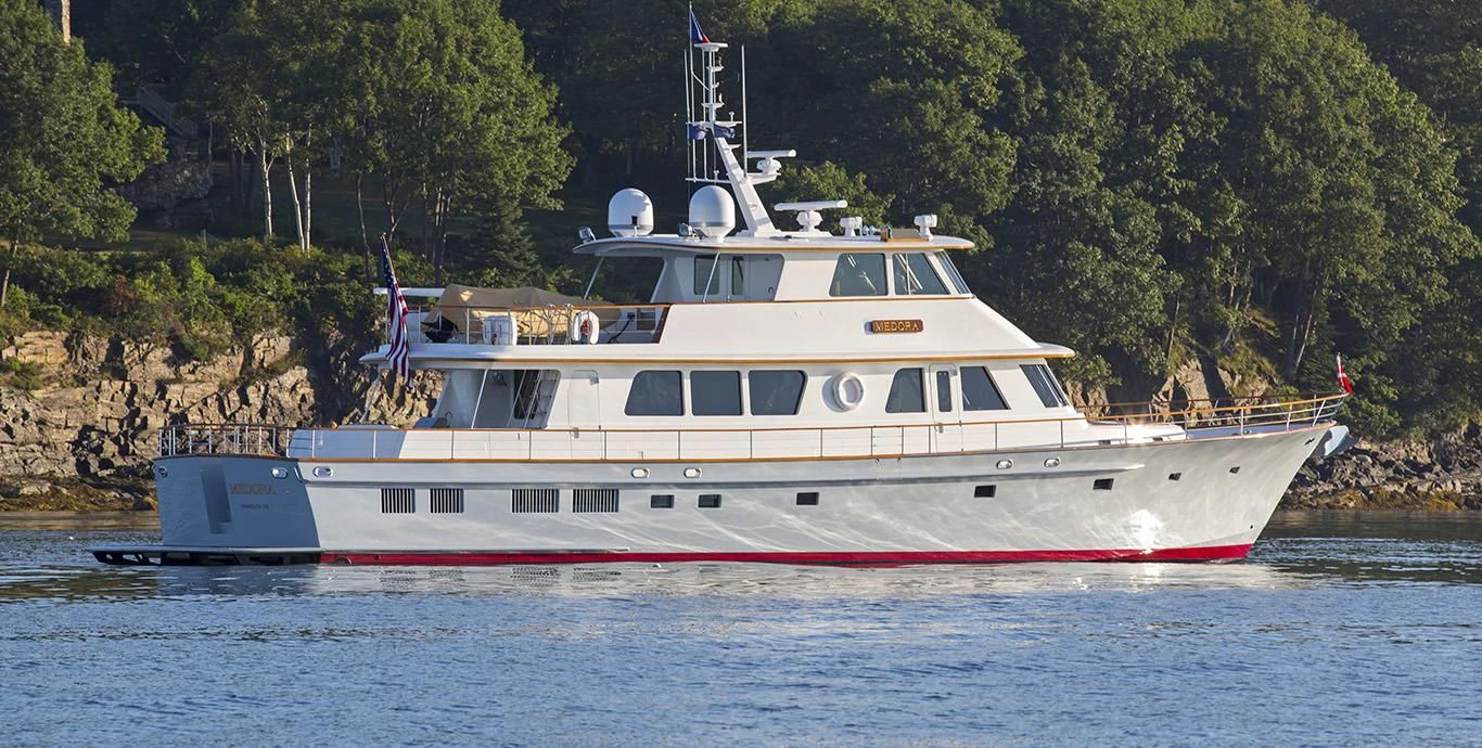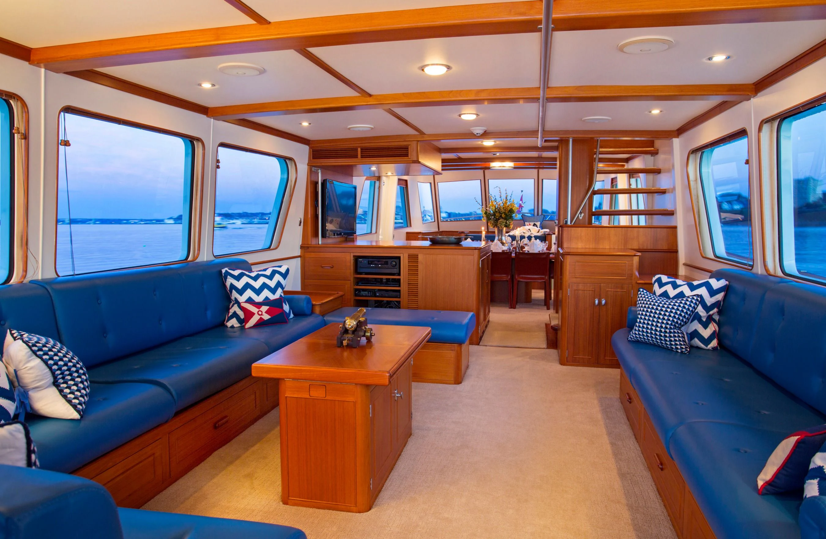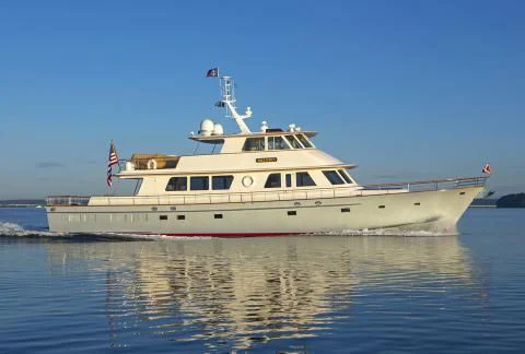 Welcome aboard the SEA BOLD, a 96-foot motor trawler custom built by New England Boatworks in 2003 and refitted to perfection in 2020. With her composite hull material and sleek design, she cuts an impressive figure on the water. Her length overall reaches an impressive 29.26 meters while her beam stretches to a generous 6.25 meters, creating ample space for exterior lounging areas and alfresco dining spots.