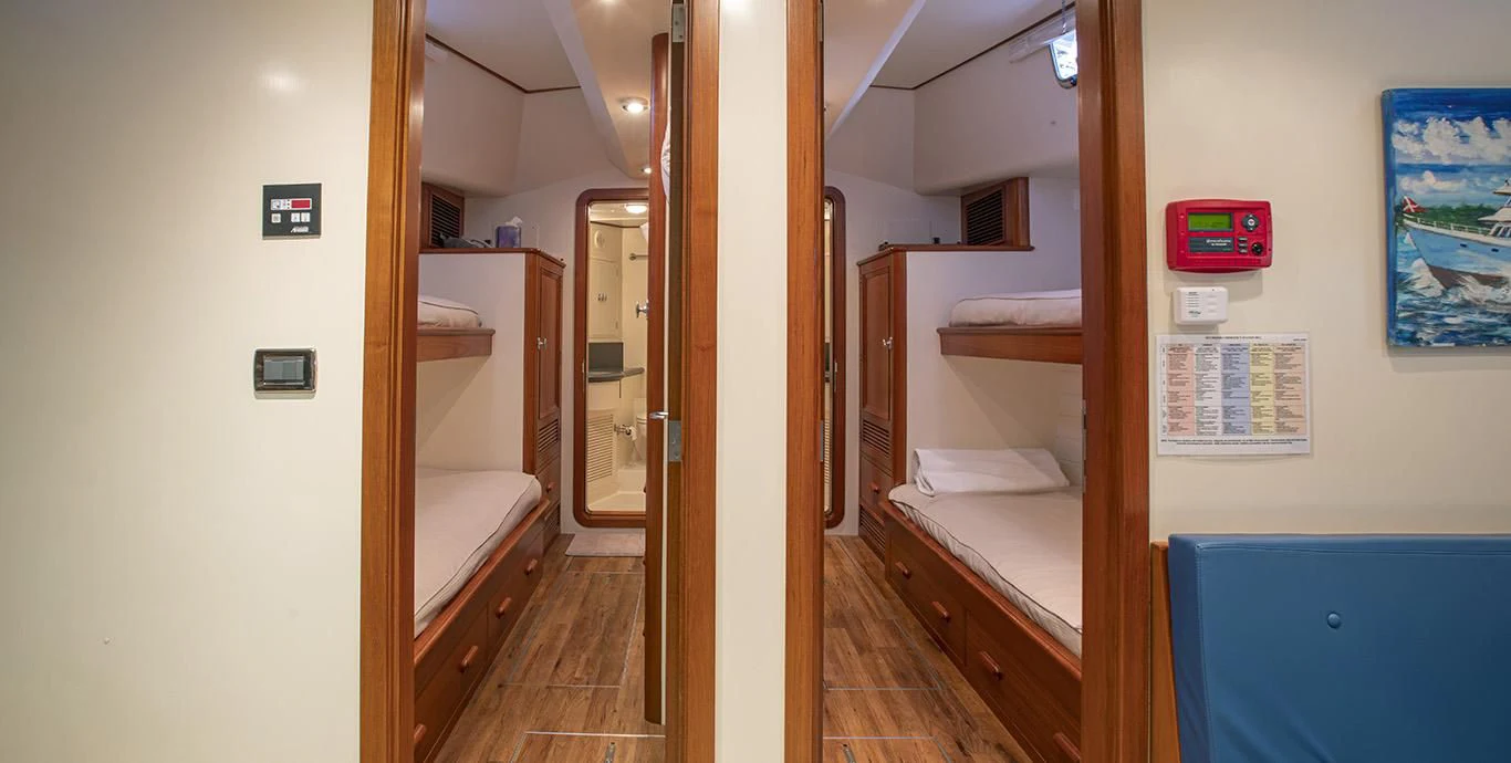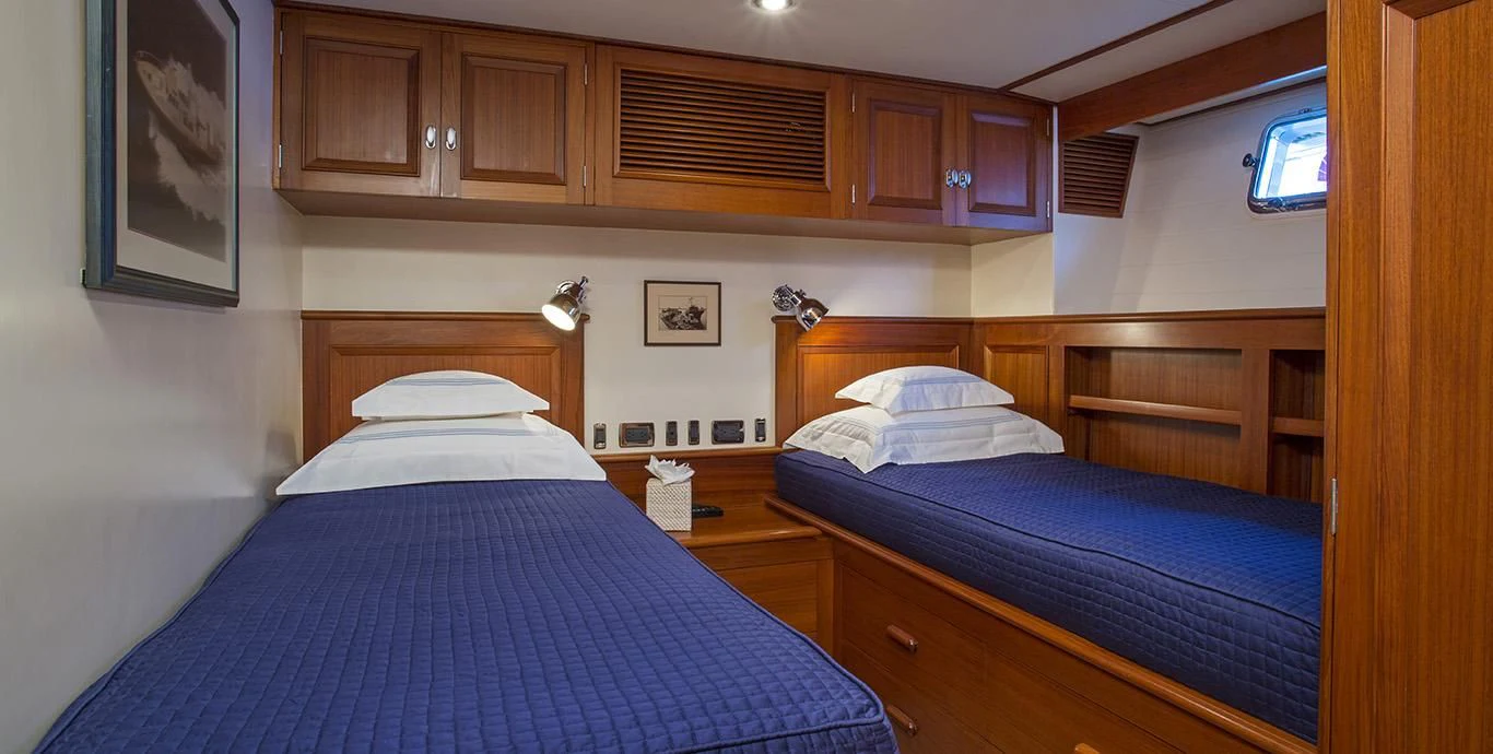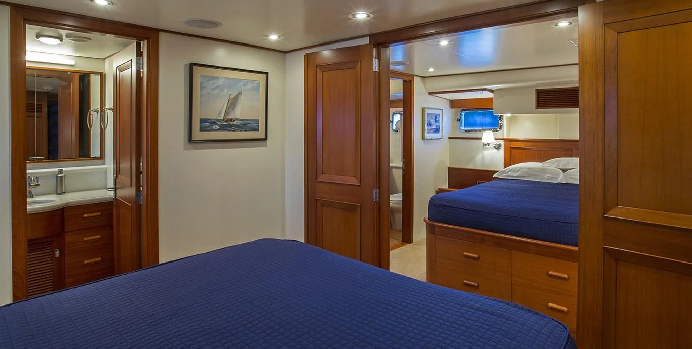 Step inside this luxurious vessel and you'll find accommodations befitting its grandeur: four spacious cabins that can comfortably house up to eight guests along with quarters for four dedicated crew members who ensure your experience onboard is nothing short of extraordinary. Each cabin exudes elegance and comfort, offering serene retreats after days spent exploring azure waters or basking under the sun on one of SEA BOLD's inviting sundecks.