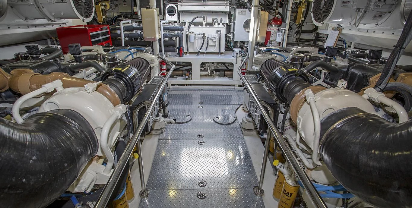 The SEA BOLD's exterior is not only about size but also about style and functionality. The yacht boasts a cruising speed of 22 knots, powered by two Caterpillar 3412E engines with a total power output of 1440 hp each. The propulsion is provided by Straight Shaft Inboard machinery ensuring smooth sailing across seas. The Wagner NB2 steering system ensures precise navigation while the Quantum bow thruster aids in maneuverability during docking or undocking.
