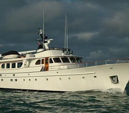 The SEA CZAR's exterior design is an ode to traditional maritime aesthetics, boasting sleek lines and an imposing steel hull that commands attention wherever she sails. Her spacious sundeck offers ample space for sunbathing or enjoying alfresco dining under the stars, while her cruising speed of 10.5 knots ensures smooth voyages across serene waters. The yacht's maximum speed reaches up to an impressive 12.5 knots, powered by twin Caterpillar D343T engines each offering a robust output of 460 hp / 343 kW.