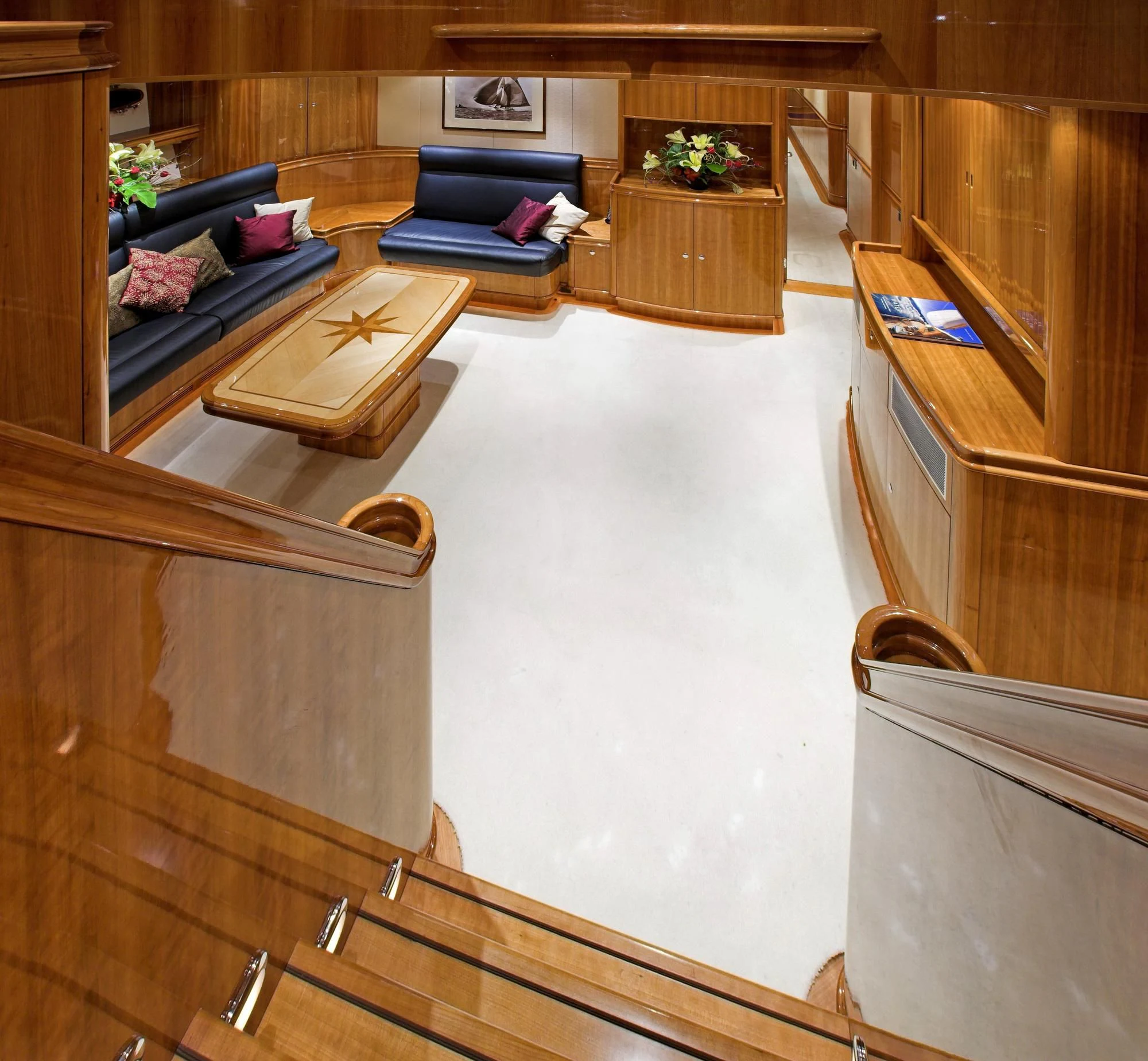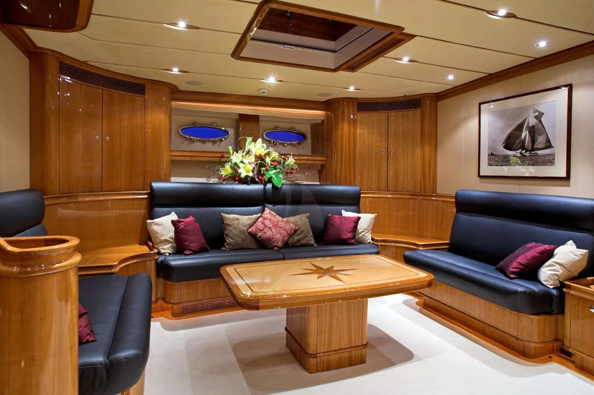 SEABISCUIT's exterior is designed impeccably to reflect her adventurous spirit while maintaining an aura of sophistication. Her monohull structure, crafted from sturdy aluminum, cuts through the waves effortlessly at a cruising speed of nine knots, reaching up to twelve knots at her maximum speed. The yacht’s expansive sundeck offers ample space for sunbathing or simply enjoying panoramic ocean views under the open sky. Alfresco dining areas allow guests to savor gourmet meals amidst gentle sea breezes while lounging areas provide tranquil spaces for relaxation.