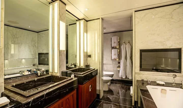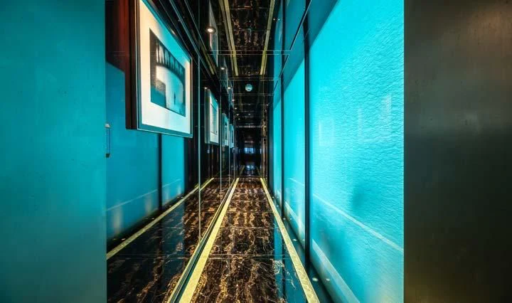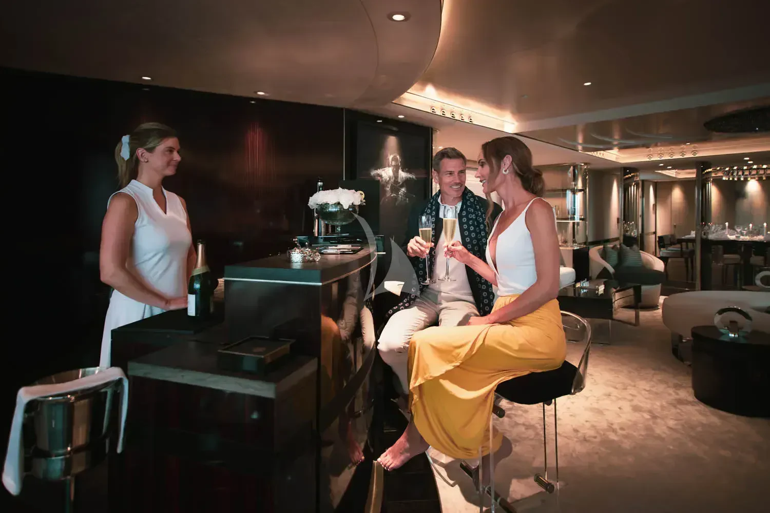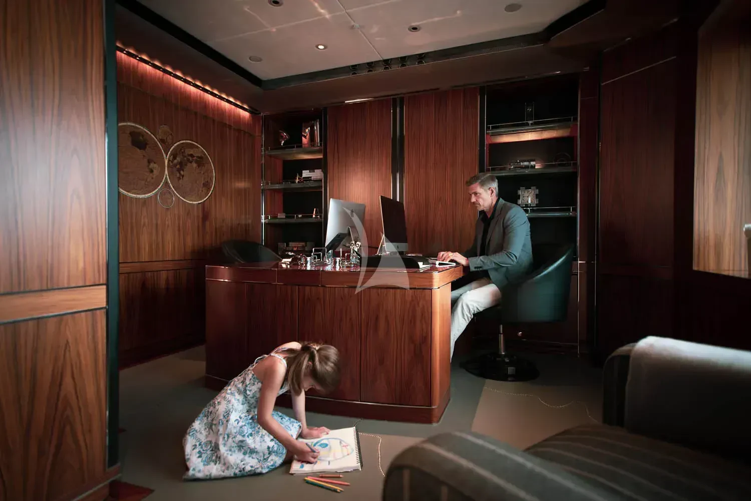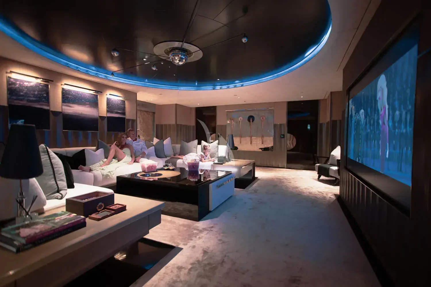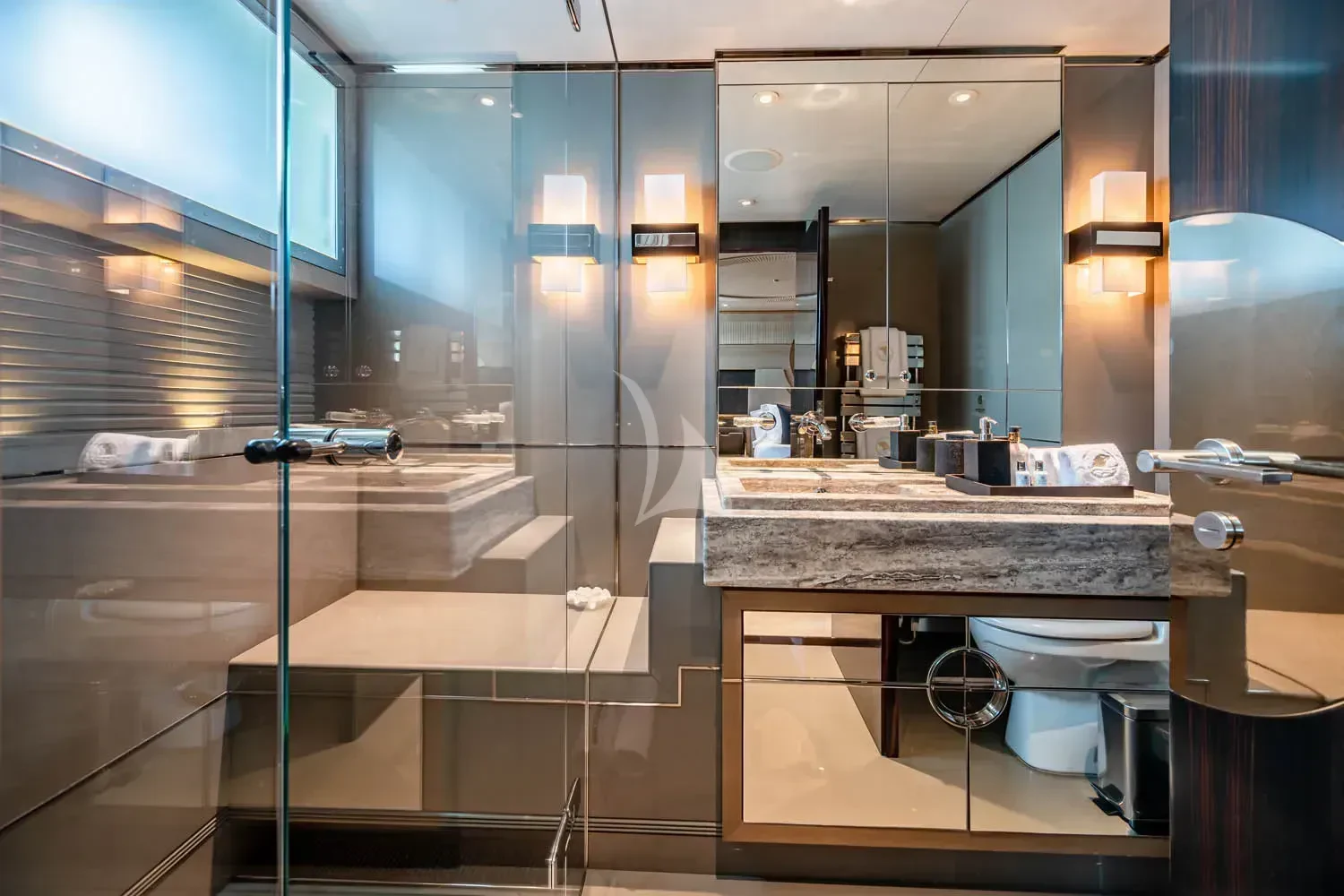 The interior spaces of SEALION are designed to provide the ultimate luxury experience for the guests on board. The interior design of the space features a striking contrast between dark elements such as Macassar ebony, black lacquer, black jet beading, and dark stained oak flooring, and lighter elements such as an off-white deck head, a silvery-white long-piled art silk carpet, and upholstery in shades of taupe and metallic silver. The warmth of the leather wall paneling helps to balance out the coolness of the metallic tones. Almond gold and Perspex are also used as accents throughout, with almond gold plating on the many fittings and dividing strips and Perspex on the Schimmel Grand Piano by the aft deck doors. The main salon and dining area are sophisticated and formal, with a beautiful combination of dark and light elements that create a sense of elegance and refinement. The skylounge is spacious and comfortable, with ample lounge areas and a cinema room ideal for relaxation and entertainment. The gym on the main deck offers incredible views and is a great place to work out while enjoying the passing scenery.