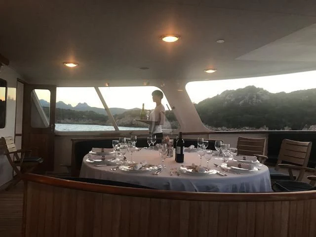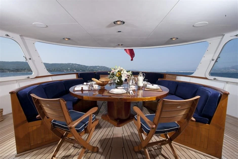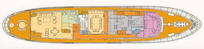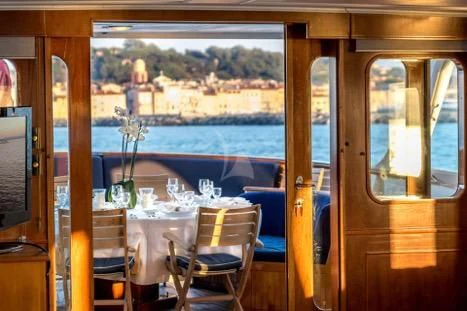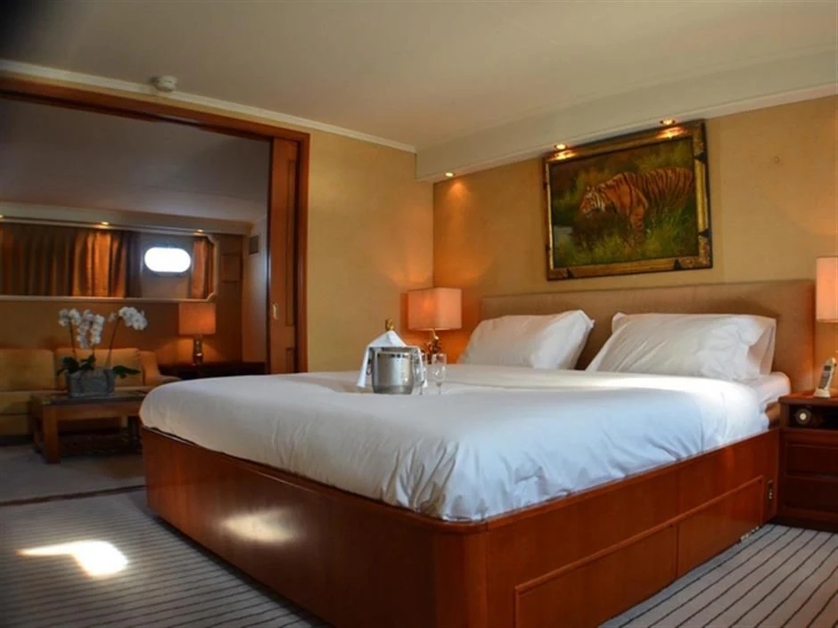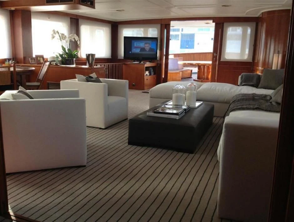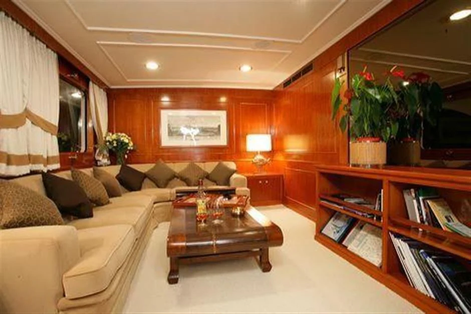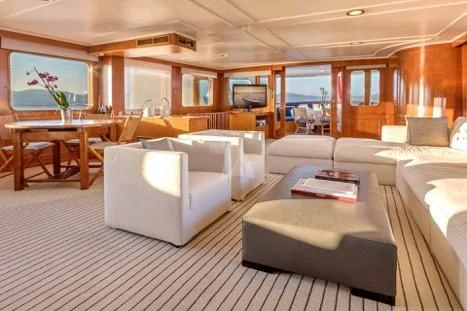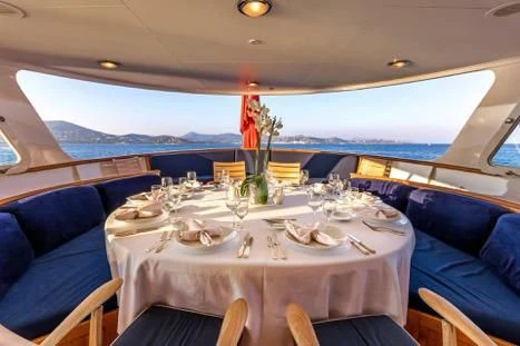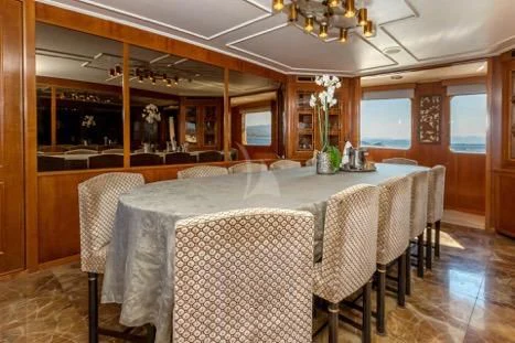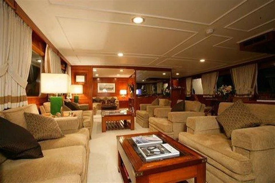 The main salon serves as the hub for social gatherings; it's spacious yet intimate setting makes it perfect for both entertaining guests or unwinding in solitude. Adjacent lies the dining area where gastronomic delights can be savored amidst elegant surroundings under the watchful eyes of our dedicated crew members who tend their services with utmost professionalism ensuring every need is catered to with precision.