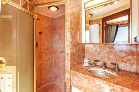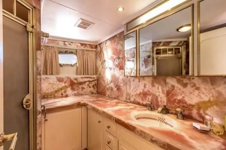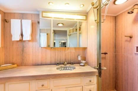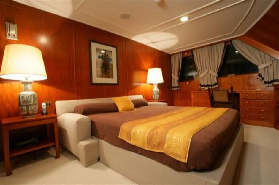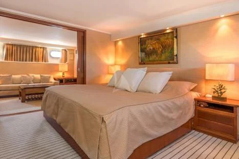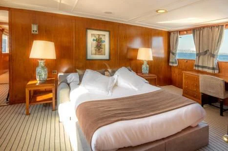 Step aboard SECRET LIFE to discover an interior that exudes opulence at every turn, accommodating up to twelve guests across five luxurious cabins all designed with meticulous attention to detail. The master stateroom stands as a testament to grandeur, offering unrivaled comfort and sophistication for its occupants while additional guest cabins are equally lavish, providing serene retreats after long days spent under the sun.