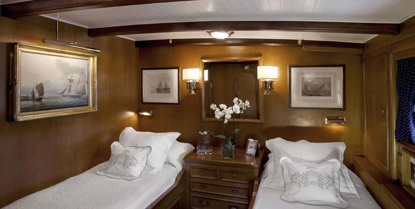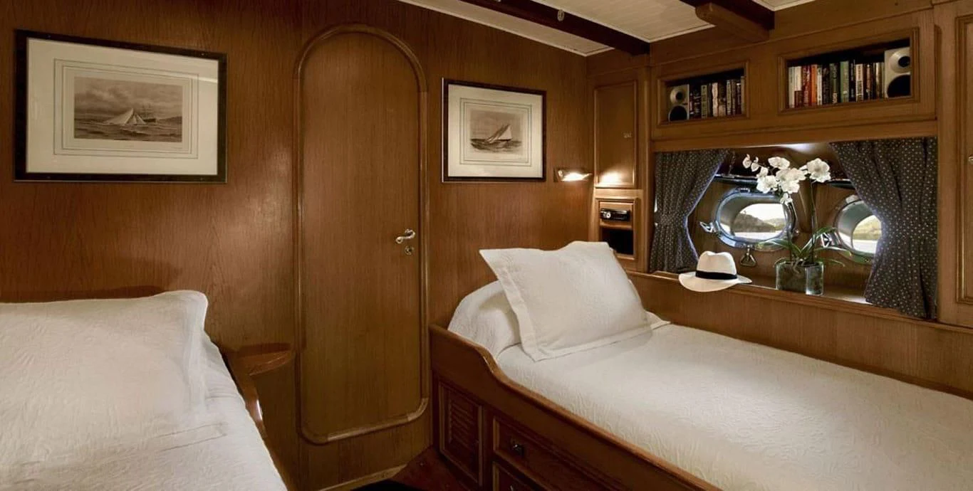 SELJM offers lavish accommodations for up to eight guests across four beautifully designed cabins including a luxurious master stateroom that serves as your private sanctuary at sea - spacious, serene, and adorned with all modern amenities for your ultimate comfort.