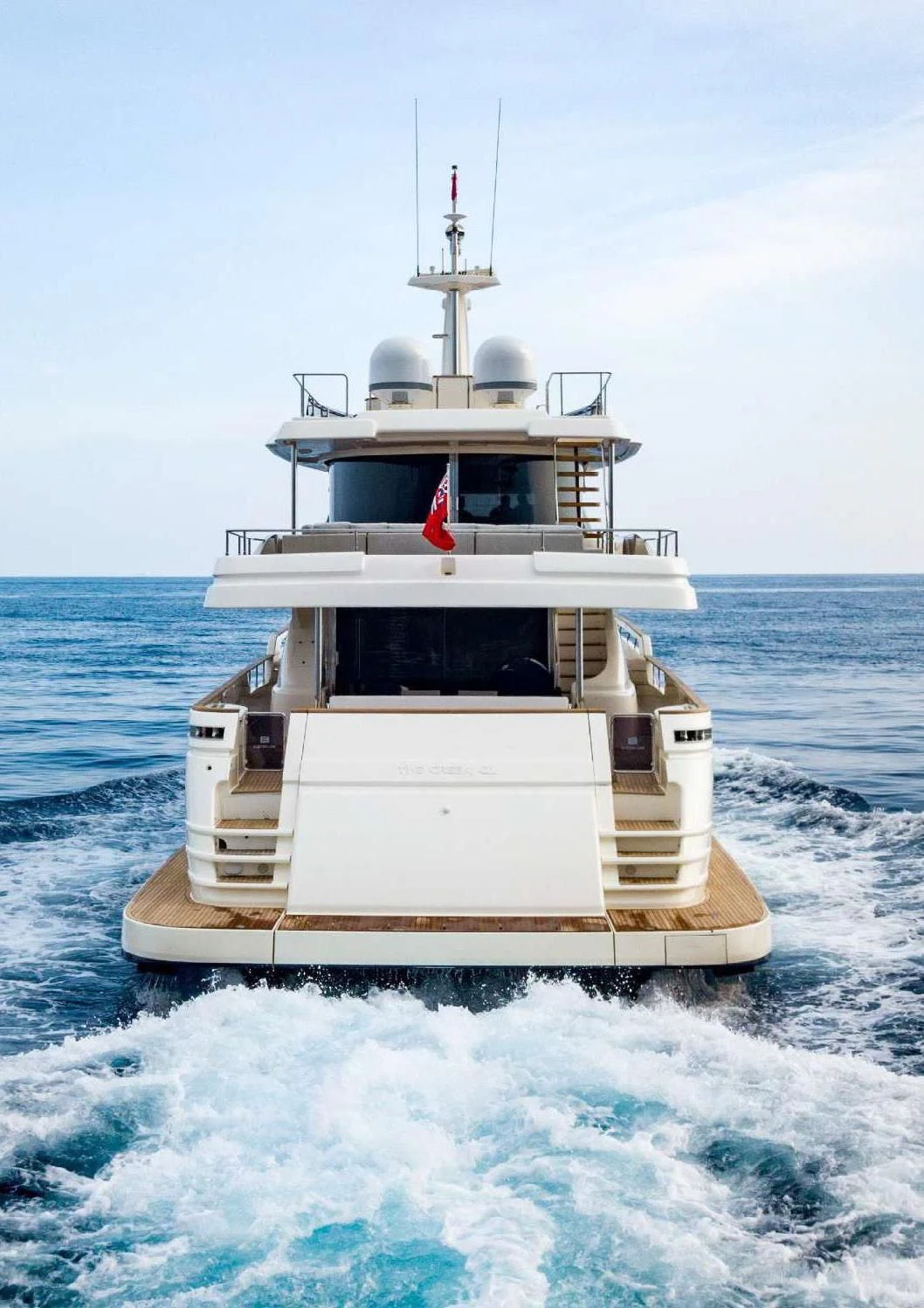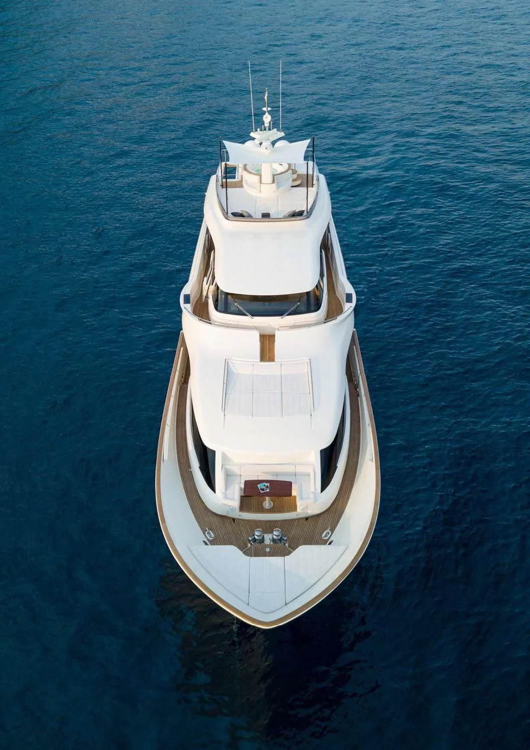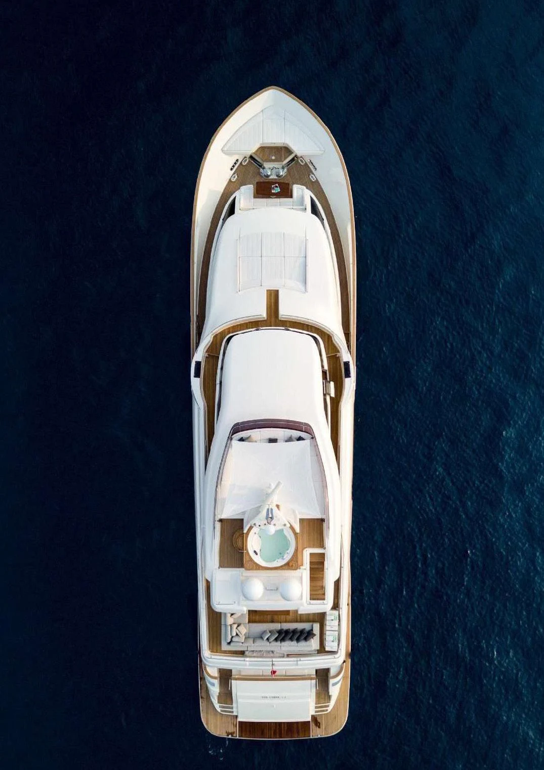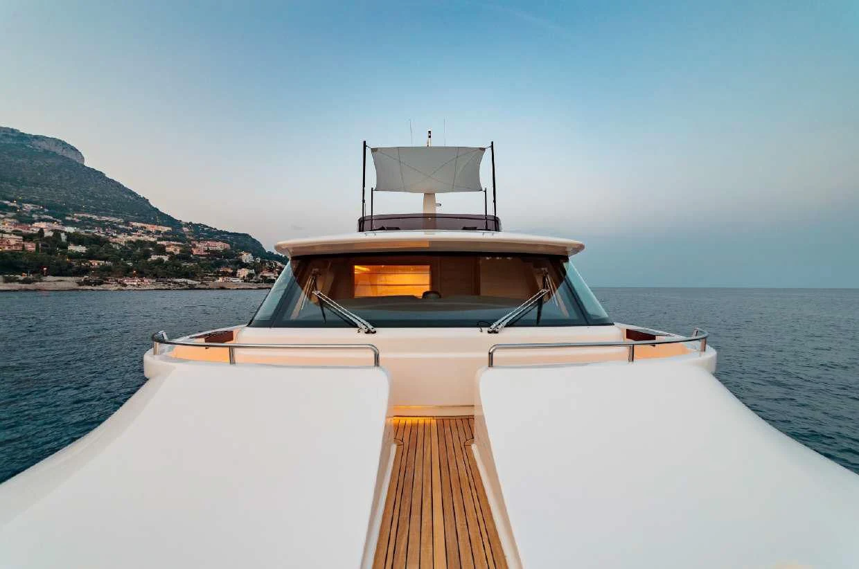 SEVEN's exterior design exudes a stately charm that captivates at first sight. Her sleek lines and modern silhouette are a testament to the expertise of the Custom Line Navetta 28 model's design team. Notably, she boasts an expansive beam of approximately SEVEN meters (23 feet), ensuring ample exterior space for leisurely pursuits under the sun or stars alike. Whether you choose to bask on her sundecks, dine alfresco in one of her luxurious outdoor dining areas or unwind in any of her plush lounging areas – SEVEN offers countless opportunities for relaxation and entertainment.