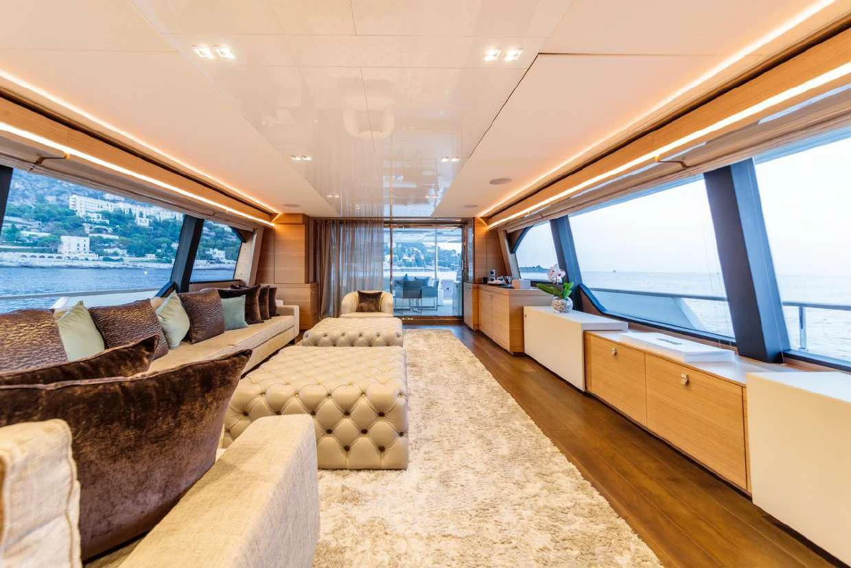 Step aboard the magnificent SEVEN, a testament to nautical engineering and design. Born from the esteemed Custom Line shipyard in 2016, this spectacular motor yacht measures an impressive 28.31 meters (approximately 91 feet) in length. Renowned for her semi-displacement hull crafted from high-quality GRP, she is both robust and elegant in her build.