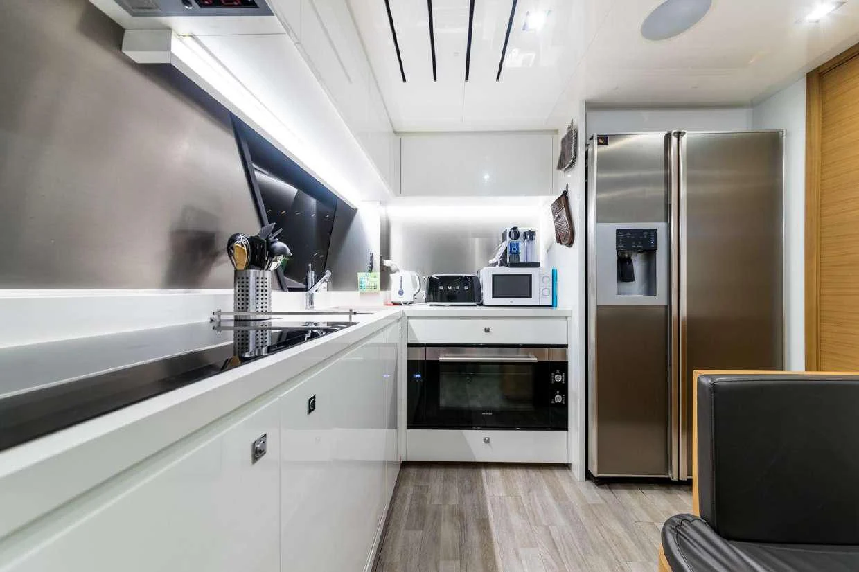Onboard amenities include everything from a state-of-the-art main salon perfect for socializing or simply relaxing after a day spent exploring exotic locales, to an exquisite dining area where guests can enjoy gourmet meals prepared by our skilled culinary crew members who are among five dedicated staff ensuring your voyage on SEVEN is nothing short of extraordinary.