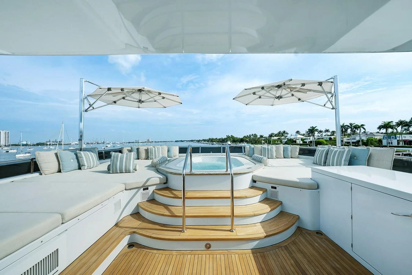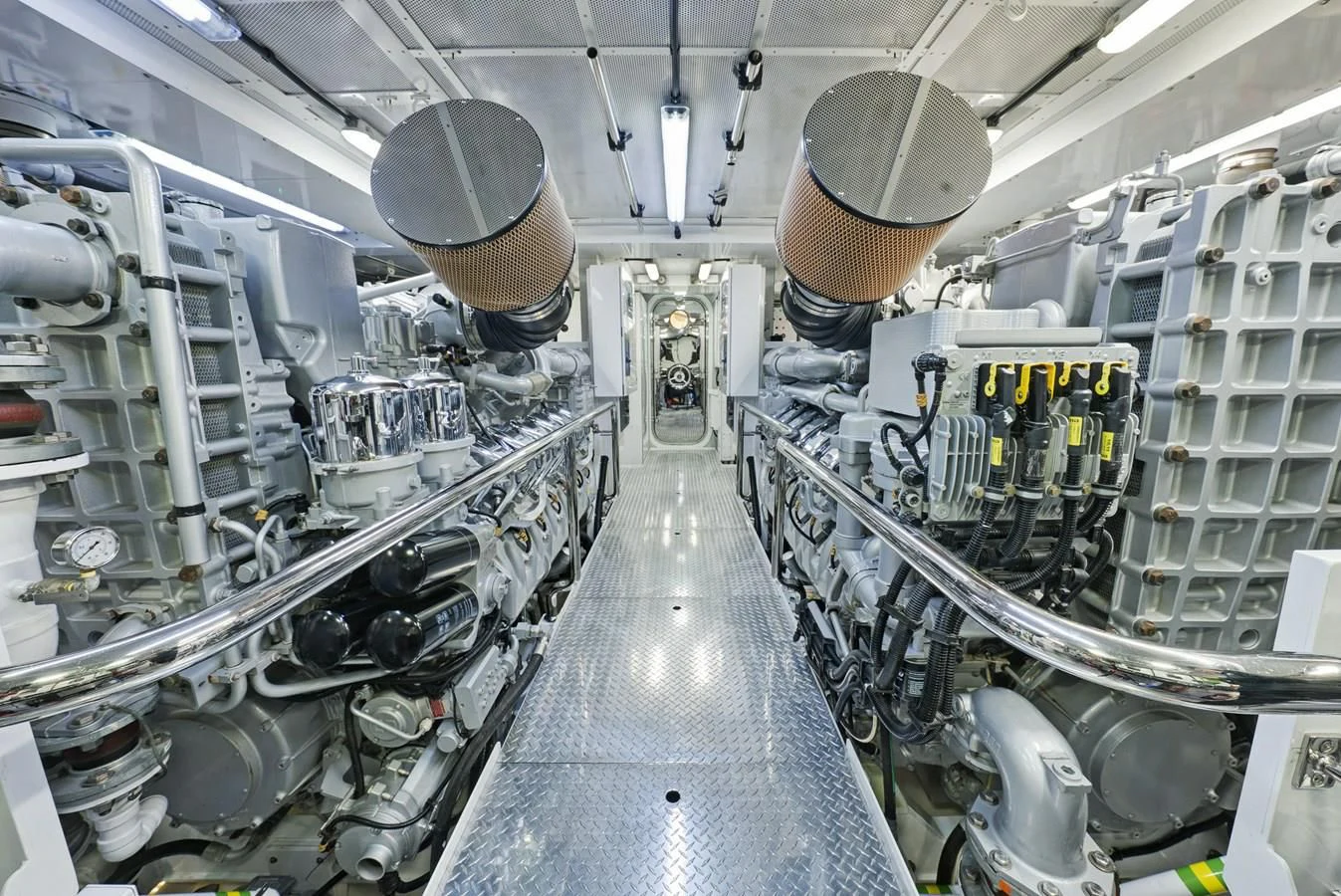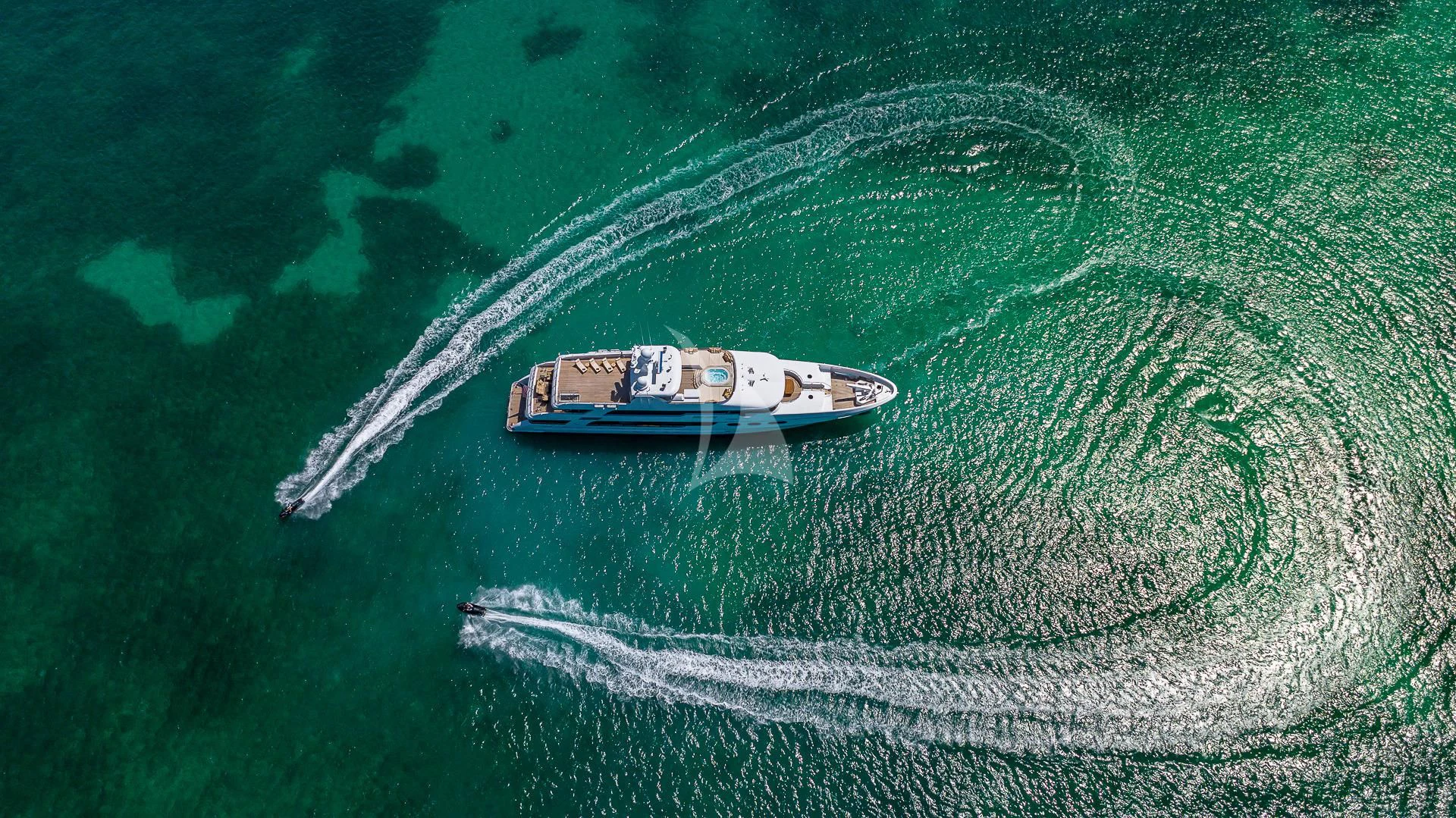 SILVER LINING's exterior design is both elegant and imposing – an embodiment of nautical prowess that is impossible to ignore. Her sleek silhouette cuts through the water with grace at cruising speeds of 11 knots, reaching up to a maximum speed of 16 knots when required. The yacht’s expansive sundeck invites guests to bask under the sun while enjoying panoramic views or dine alfresco under starlit skies. Notably, SILVER LINING has been designed as helicopter-capable, setting her apart from many other vessels in her class.