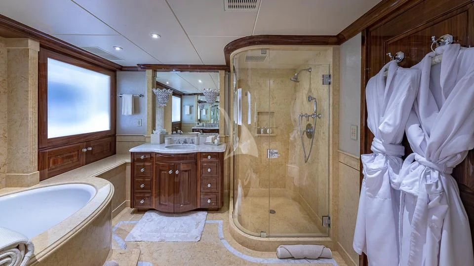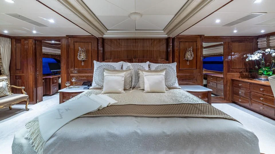 The interior design of SILVER LINING exudes an understated opulence that marries contemporary aesthetics with timeless elegance. Each room within this floating palace showcases meticulous attention to detail – from bespoke furnishings that enhance comfort to unique design elements that captivate the eye. A soothing color palette creates a serene ambience throughout her living spaces, further enhancing the sense of tranquility on board.