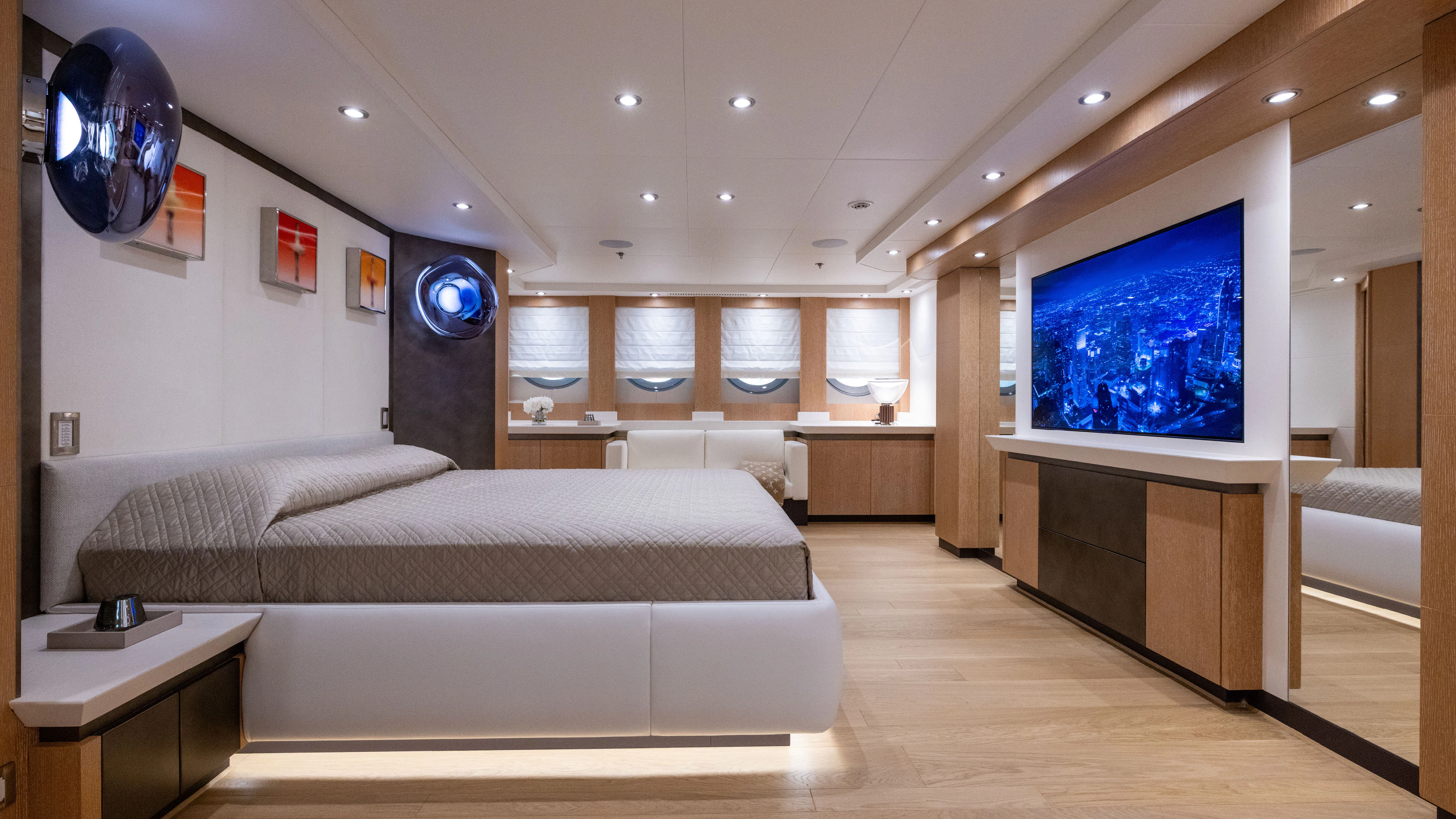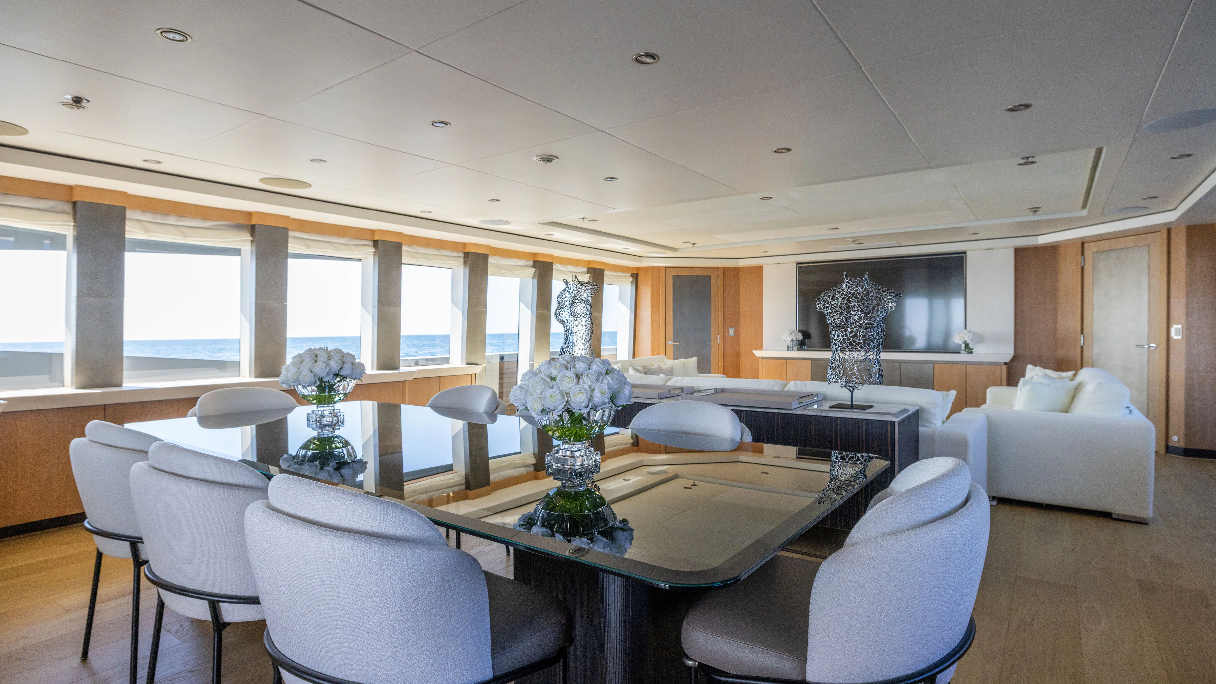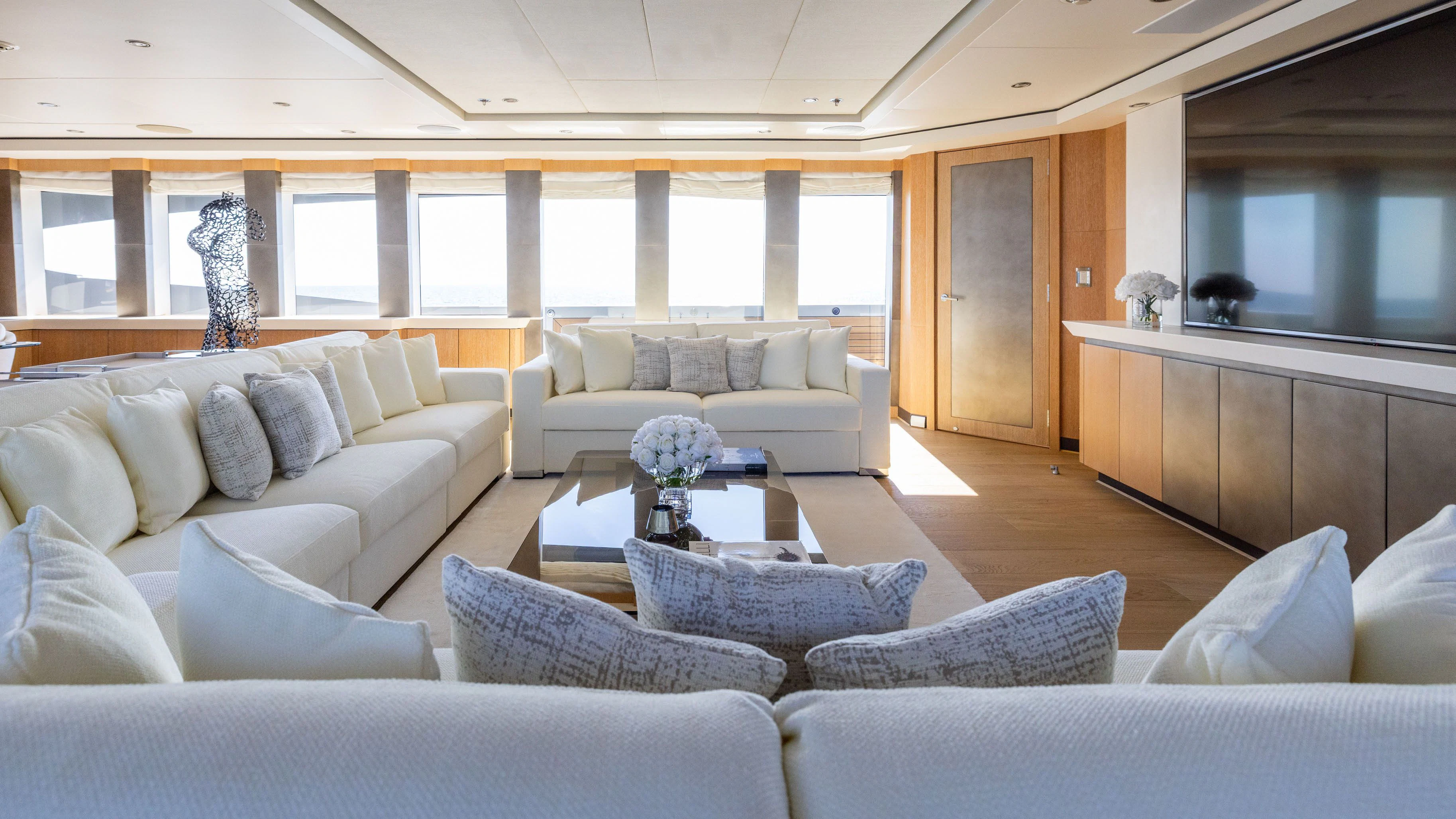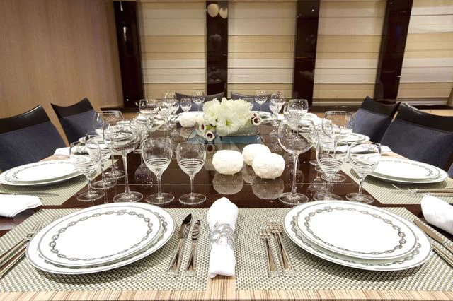 Step inside SILVER WAVE and you are greeted by an interior that exudes luxury at every turn. With accommodation for ten guests across FIVE lavish cabins, each space has been thoughtfully designed to provide maximum comfort and style. The master stateroom stands out with its sumptuous decor, state-of-the-art amenities, and spacious layout – truly a personal sanctuary on the sea. Throughout the yacht, high-quality furnishings combined with a sophisticated color palette create an ambiance of refined elegance.
