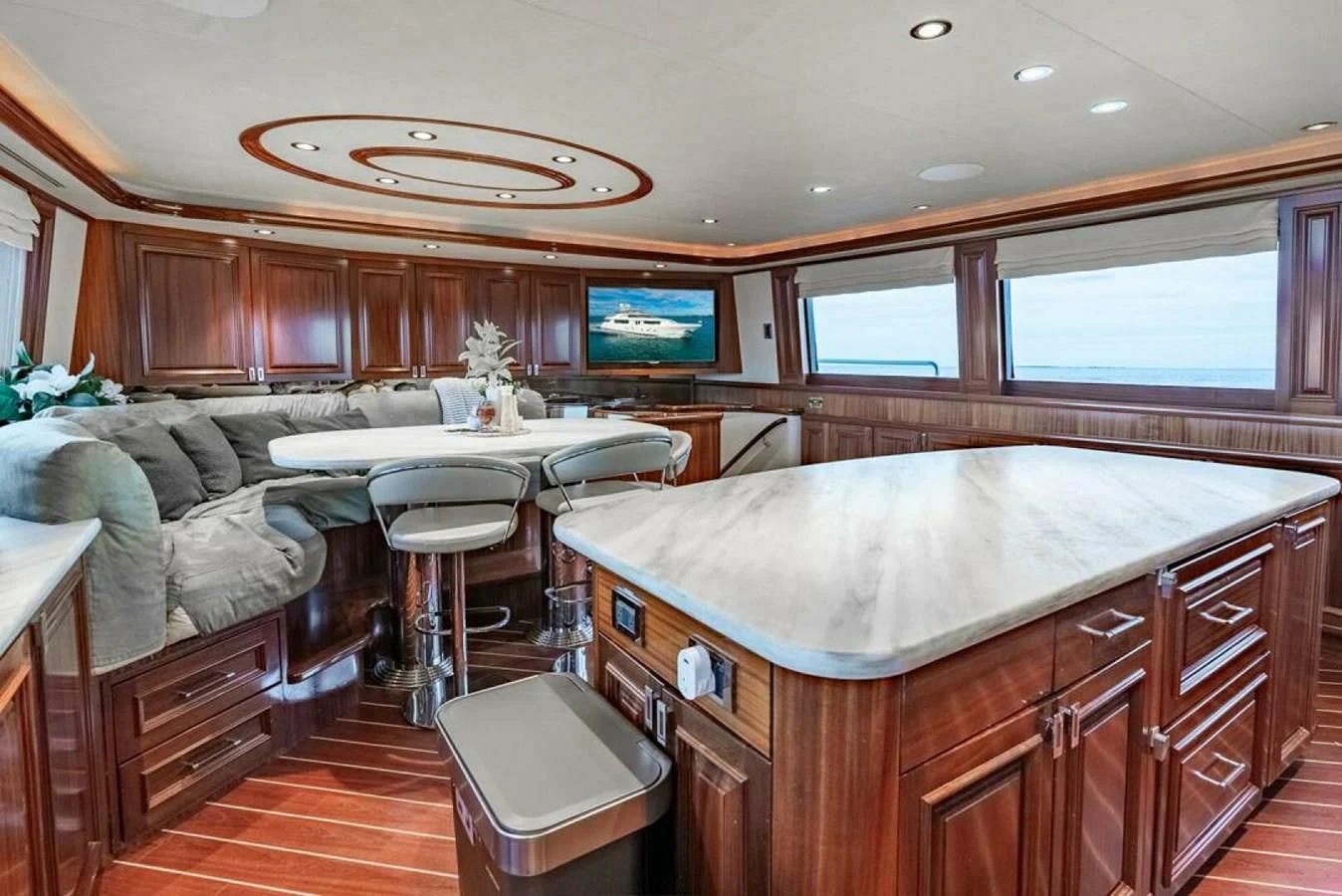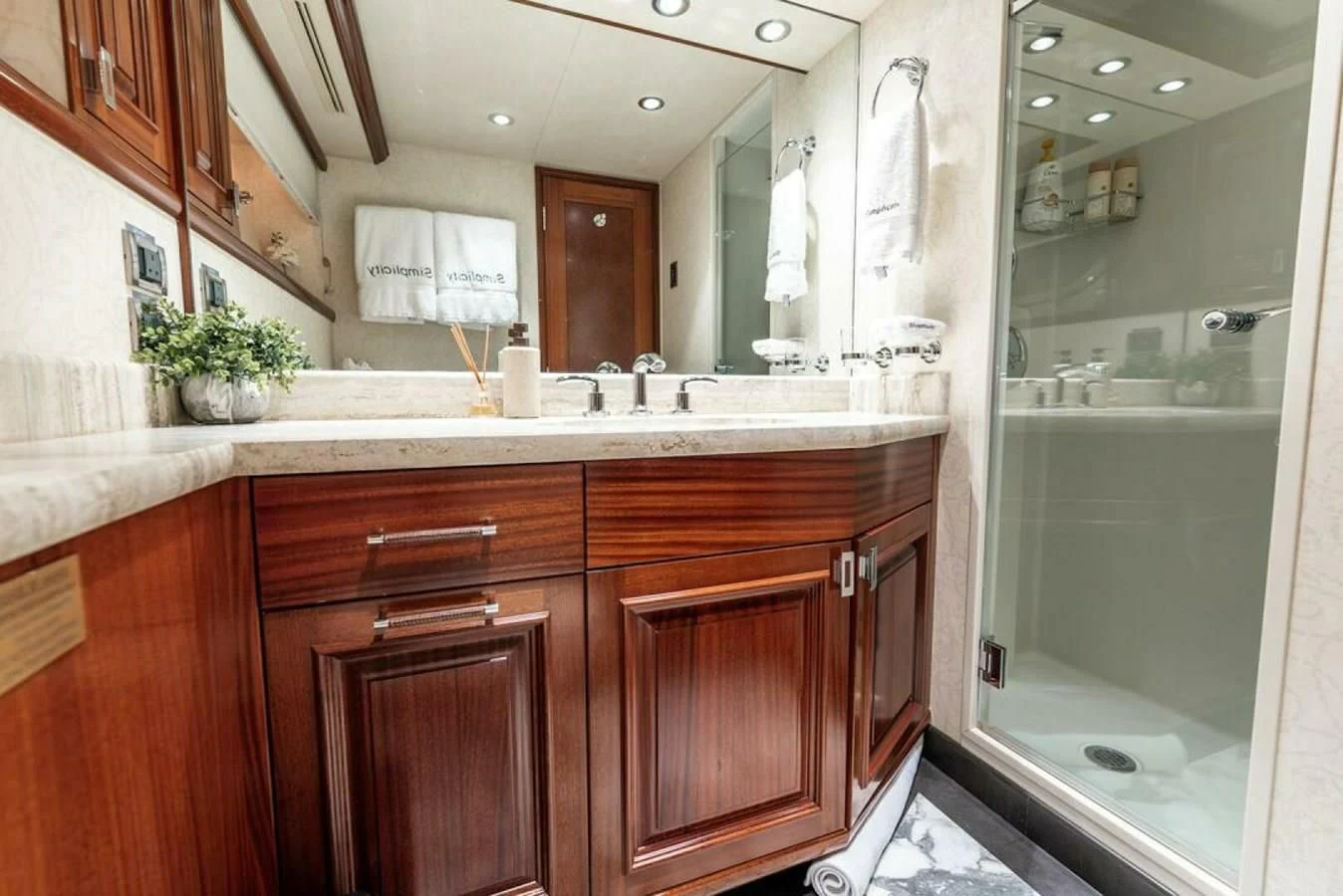 SIMPLICITY’s freshwater capacity stands at1000 gallons – bountiful enough for extended trips at sea without compromising on your needs! This luxury yacht provides more than just transportation; it offers an immersive experience into unparalleled grandeur where every journey becomes unforgettable.