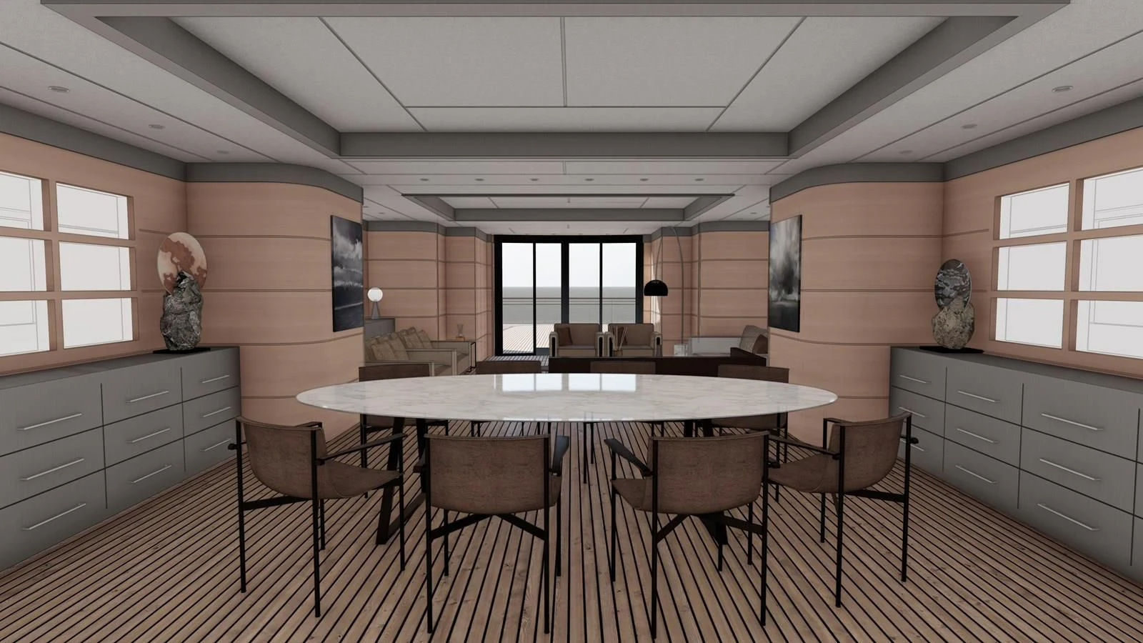 The exterior design of the SOFIA 3 is nothing short of breathtaking. Her sleek lines and impressive size are immediately striking while her expansive sundecks offer ample space for sunbathing or simply enjoying the view. Alfresco dining areas provide an ideal setting for meals under the stars while various lounging areas allow guests to relax in comfort and style. The exterior spaces have been thoughtfully designed to maximize enjoyment and relaxation, making every moment aboard an unforgettable experience.