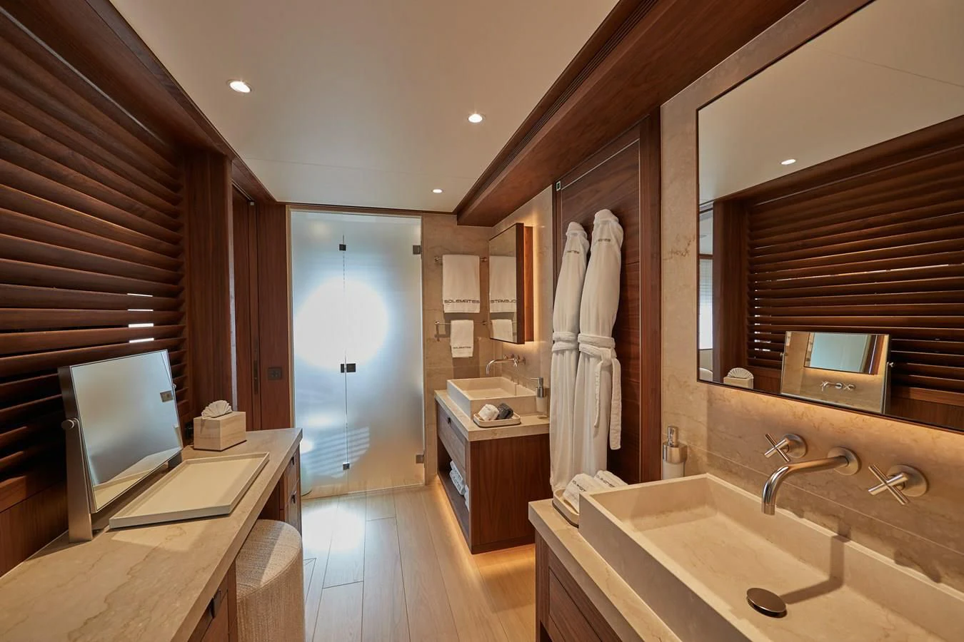Step inside SOLEMATES, and you'll be greeted by interiors that are nothing short of breathtakingly lavish yet tastefully understated. Four exquisite cabins accommodate up to ten guests in opulent comfort, attended by seven dedicated crew members ensuring impeccable service round-the-clock. High-speed Wi-Fi keeps you connected with your world while you're sailing away in another one!