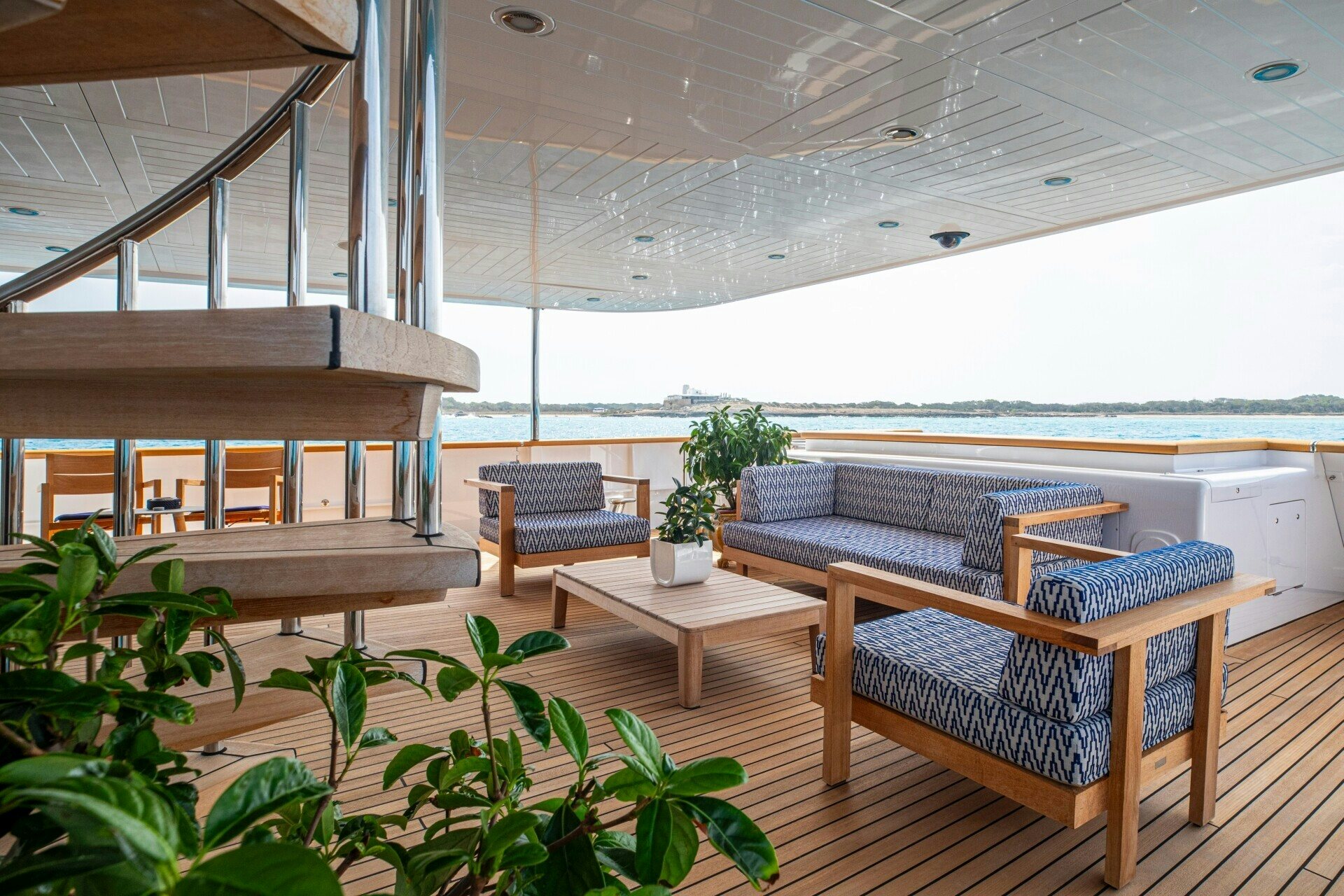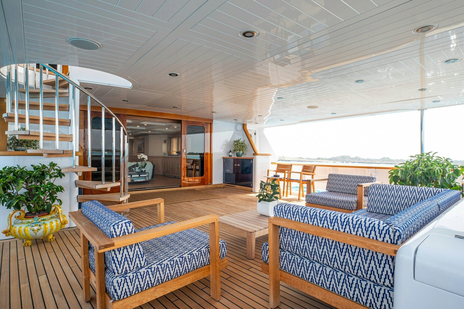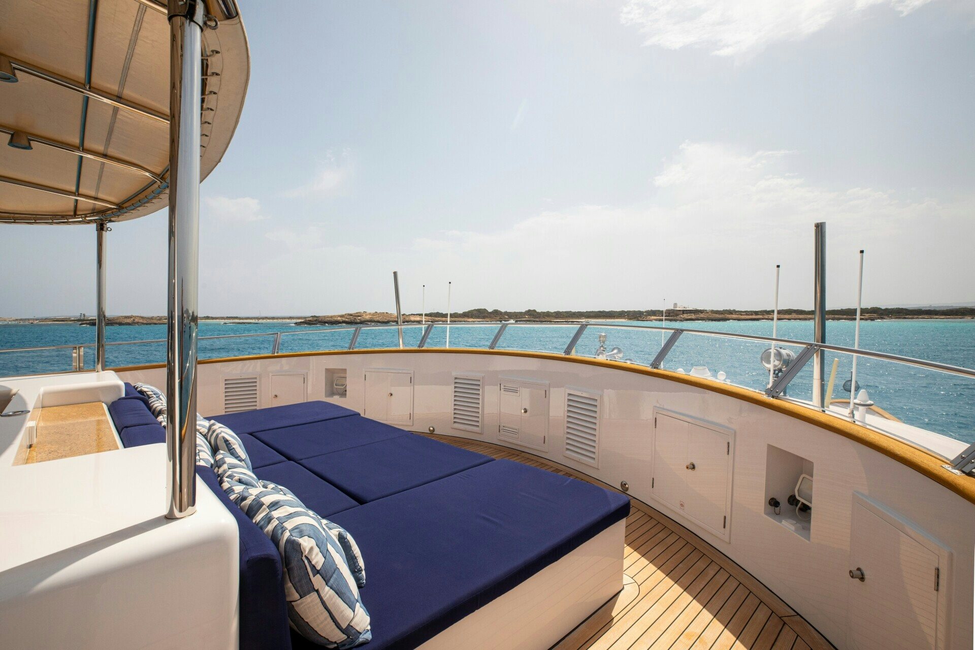 The outdoor spaces on SOLINDA are nothing short of spectacular. Her expansive sundecks are perfect for sunbathing or enjoying panoramic ocean views while cruising at her comfortable speed of 12 knots. An alfresco dining area allows guests to dine under the stars against the backdrop of endless sea horizons. A deck Jacuzzi provides a luxurious spot for relaxation, complemented by at-anchor stabilizers ensuring smooth and stable voyages even when stationary.