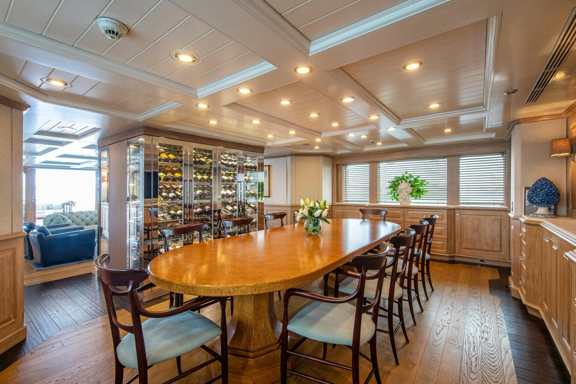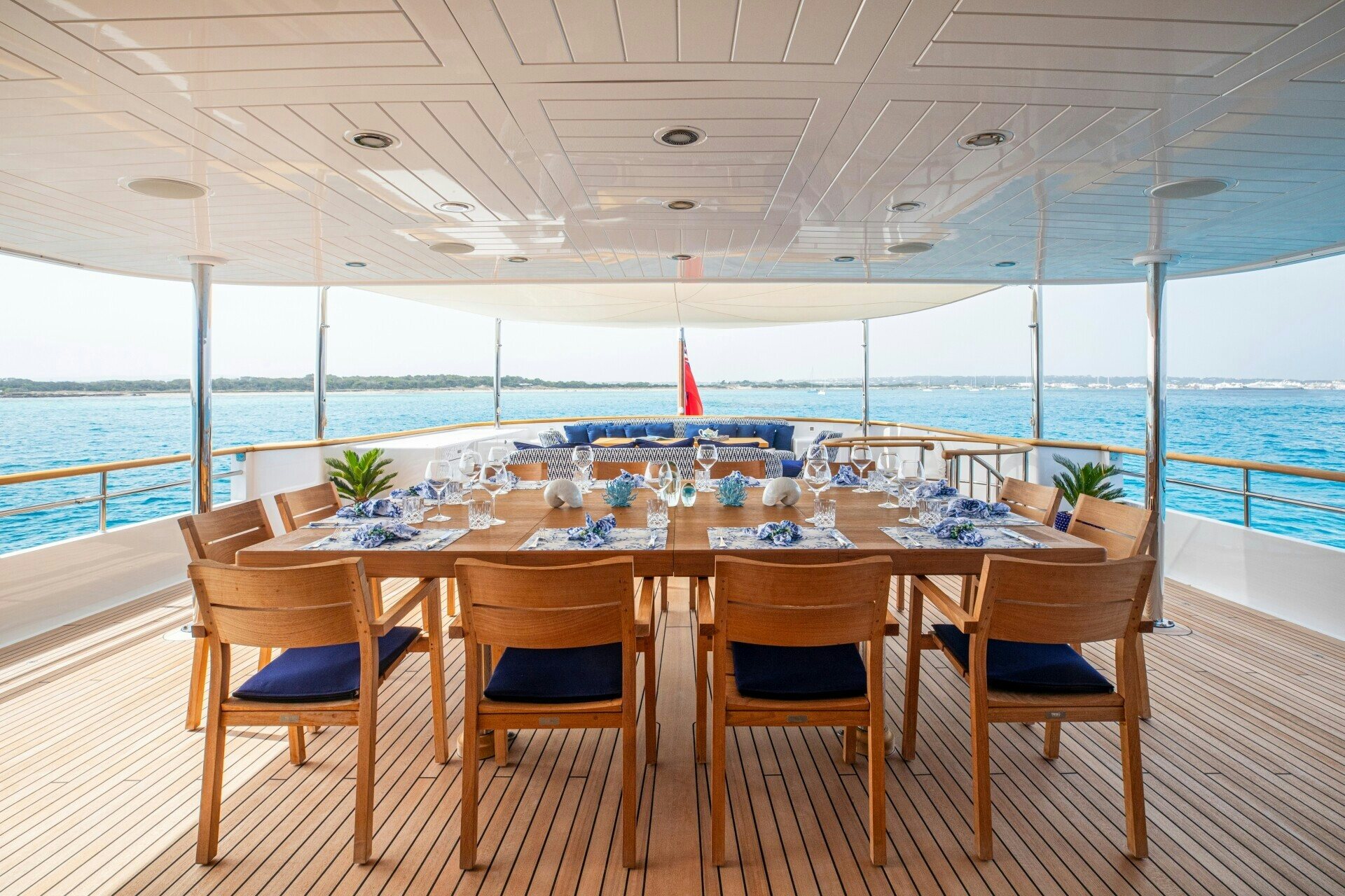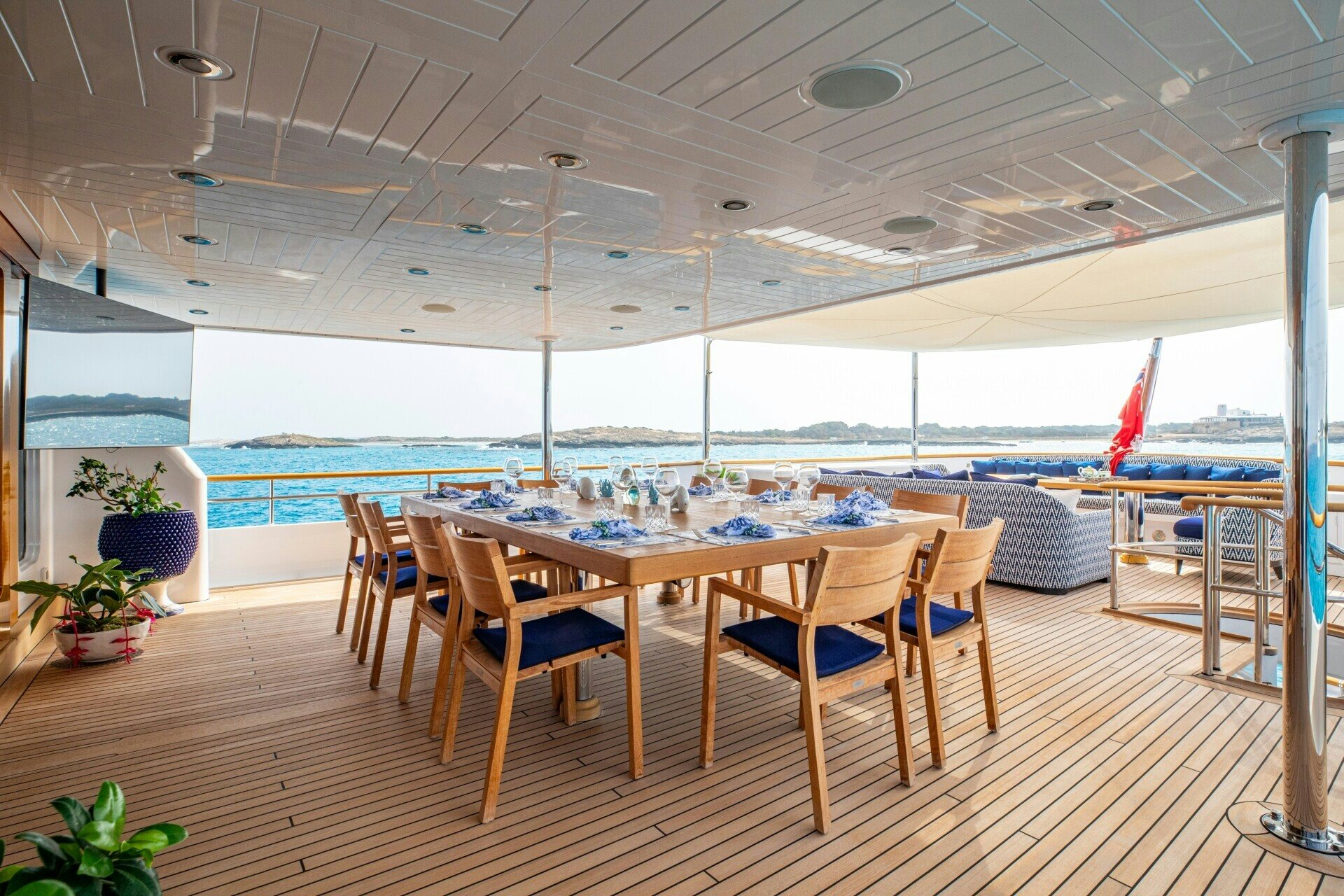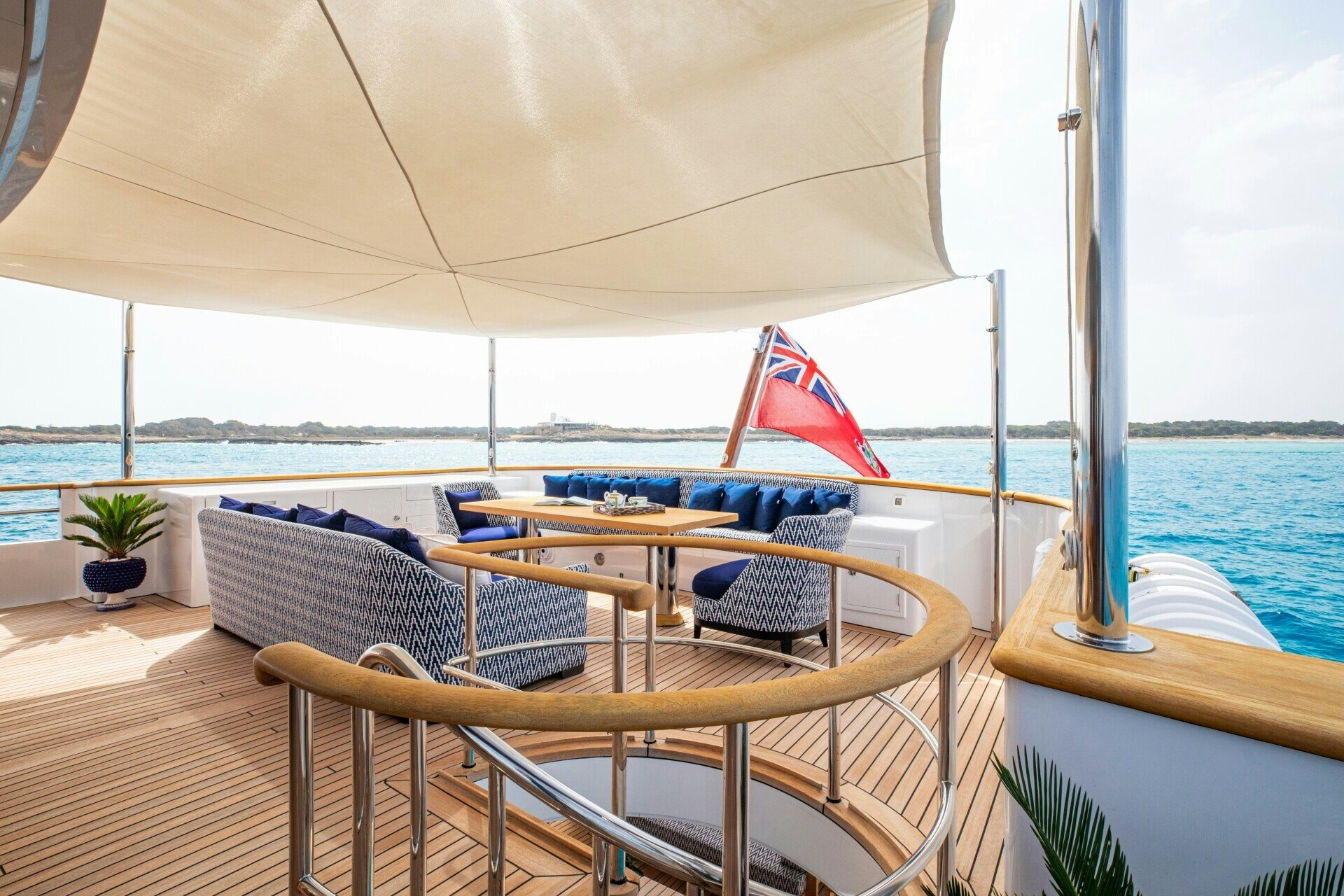 The outdoor spaces on SOLINDA are nothing short of spectacular. Her expansive sundecks are perfect for sunbathing or enjoying panoramic ocean views while cruising at her comfortable speed of 12 knots. An alfresco dining area allows guests to dine under the stars against the backdrop of endless sea horizons. A deck Jacuzzi provides a luxurious spot for relaxation, complemented by at-anchor stabilizers ensuring smooth and stable voyages even when stationary.