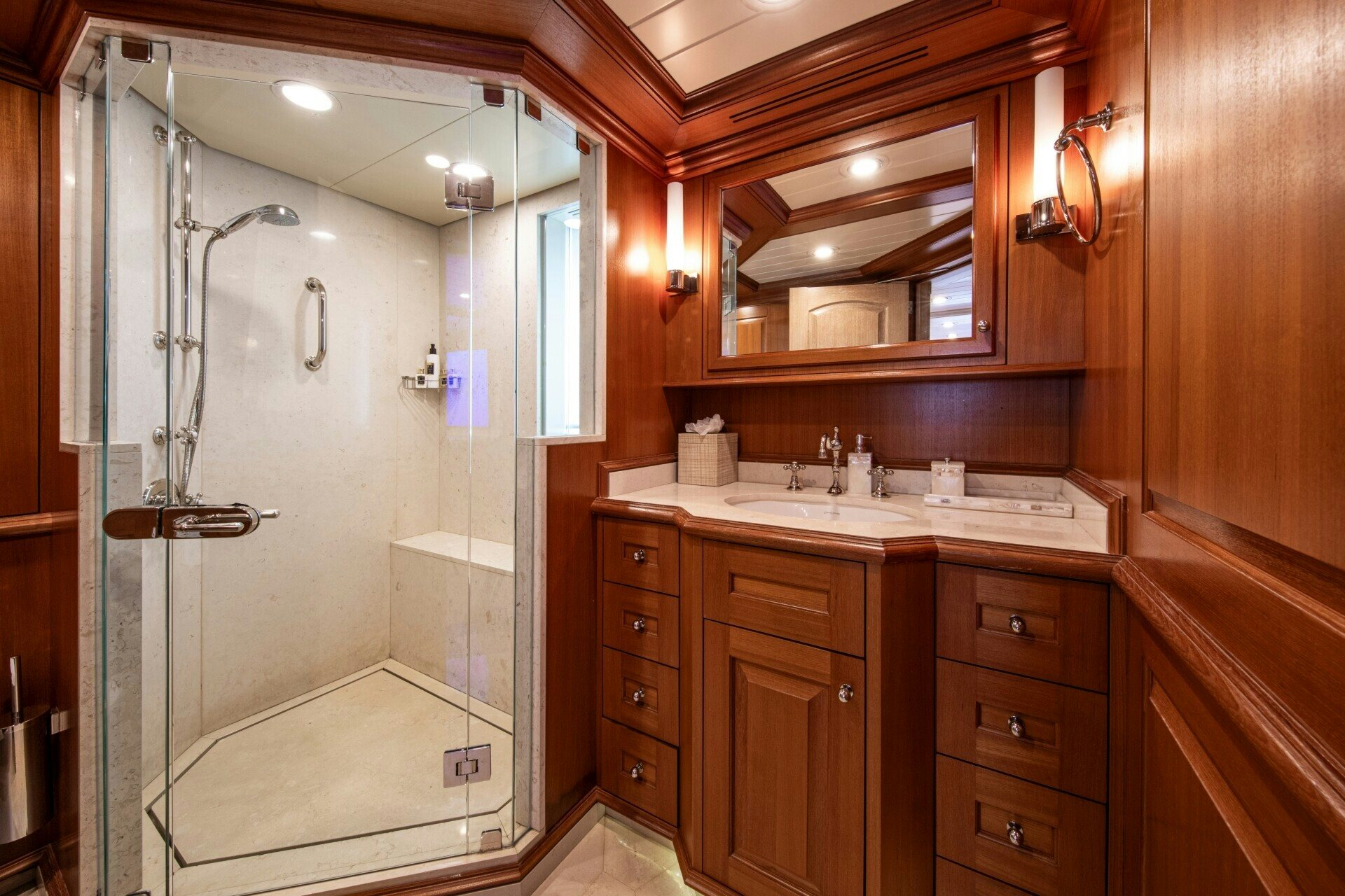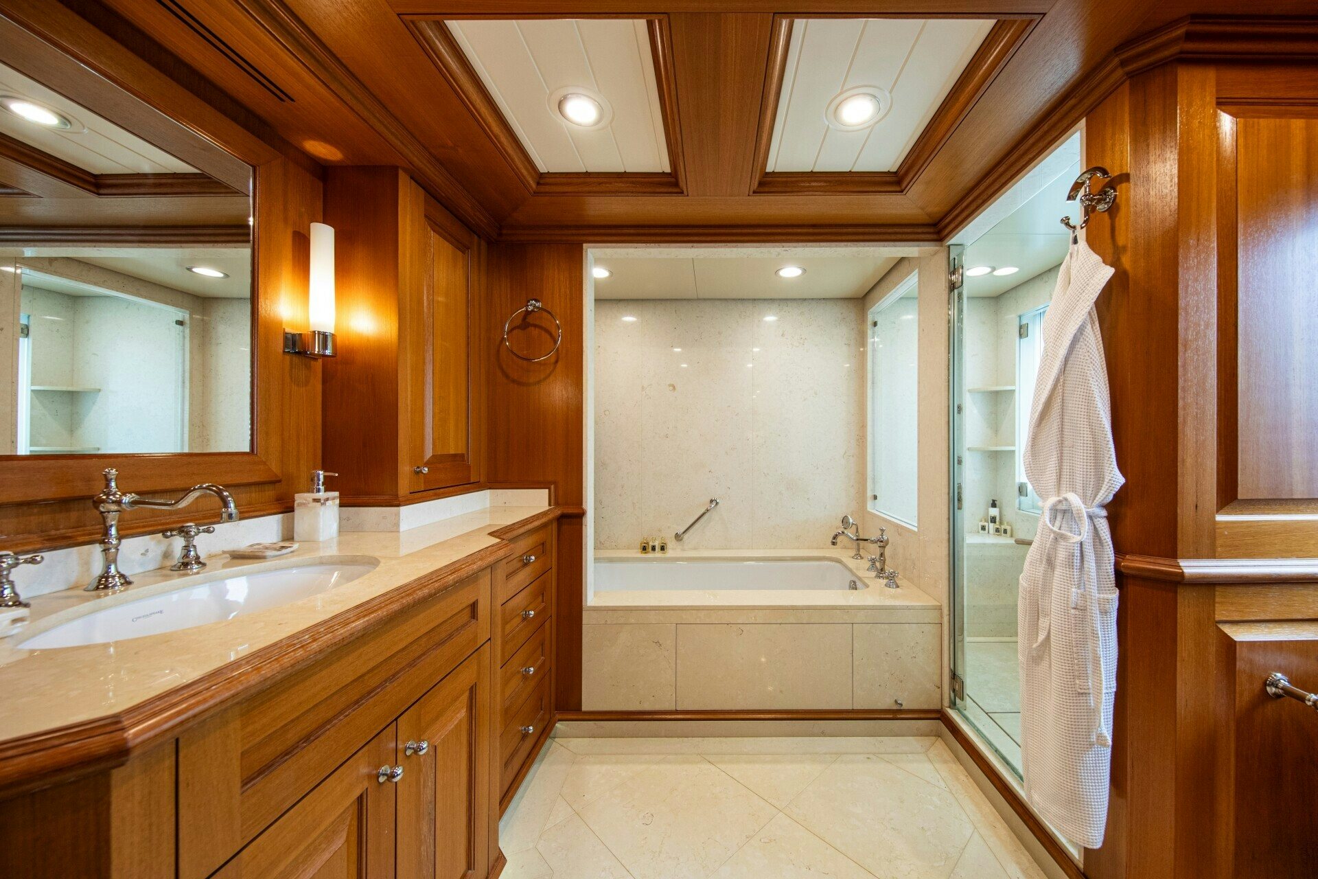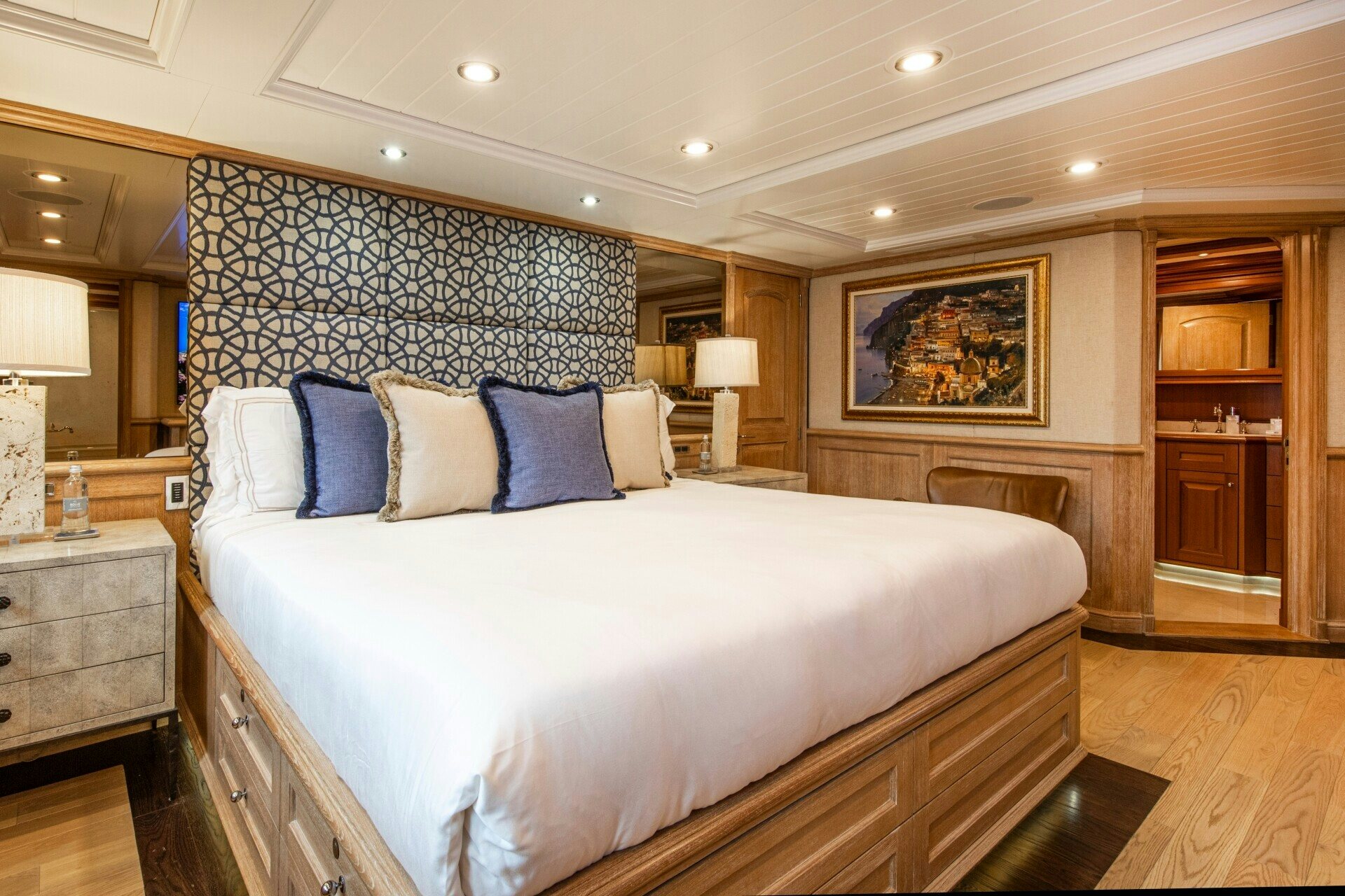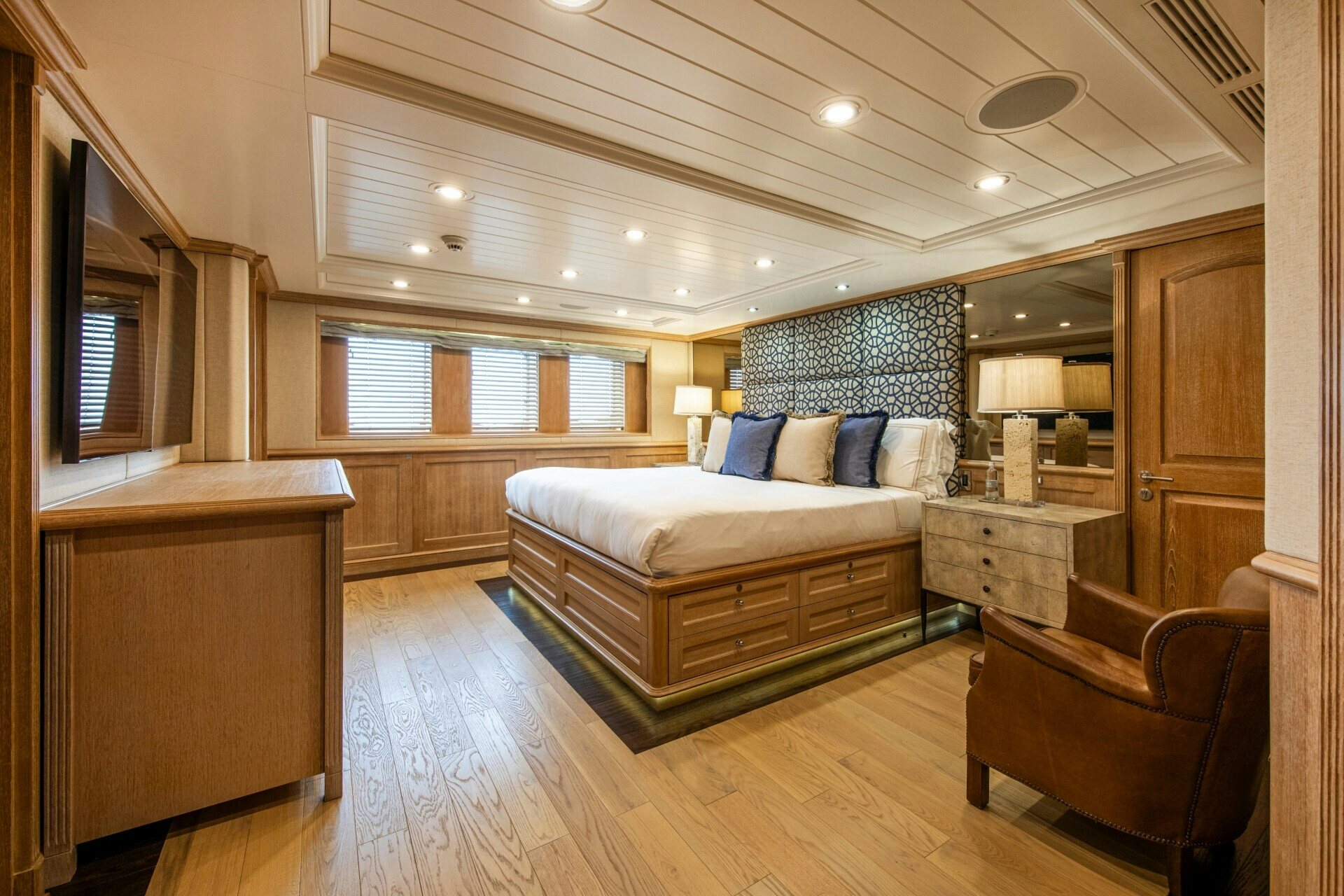 Step inside SOLINDA, you will be greeted by an interior that exudes opulence and comfort in equal measure. Accommodating up to ten guests across five sumptuous cabins, each space is meticulously designed for ultimate comfort. The master stateroom stands out with its lavish furnishings and spacious layout while additional staterooms provide equally luxurious accommodations for guests. All cabins feature en-suite facilities, ensuring privacy and convenience for all onboard.