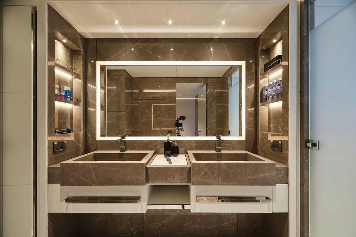 Three electrical boilers will be provided, AC230 or 400 V, 1,5 KW, capacity 120 liters (32 gallons) each, located in the crew bilge area, they will be connected as follows: