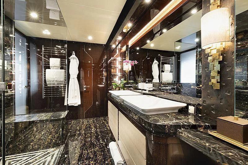 Step inside SONISHI, and you will be greeted by interiors that exude elegance and sophistication. Designed to accommodate up to ten guests across five luxurious cabins, each space within this yacht has been meticulously crafted for comfort and style. The master stateroom stands as a testament to luxury living at sea - spacious, opulent yet inviting with its tasteful color palette and unique design elements.