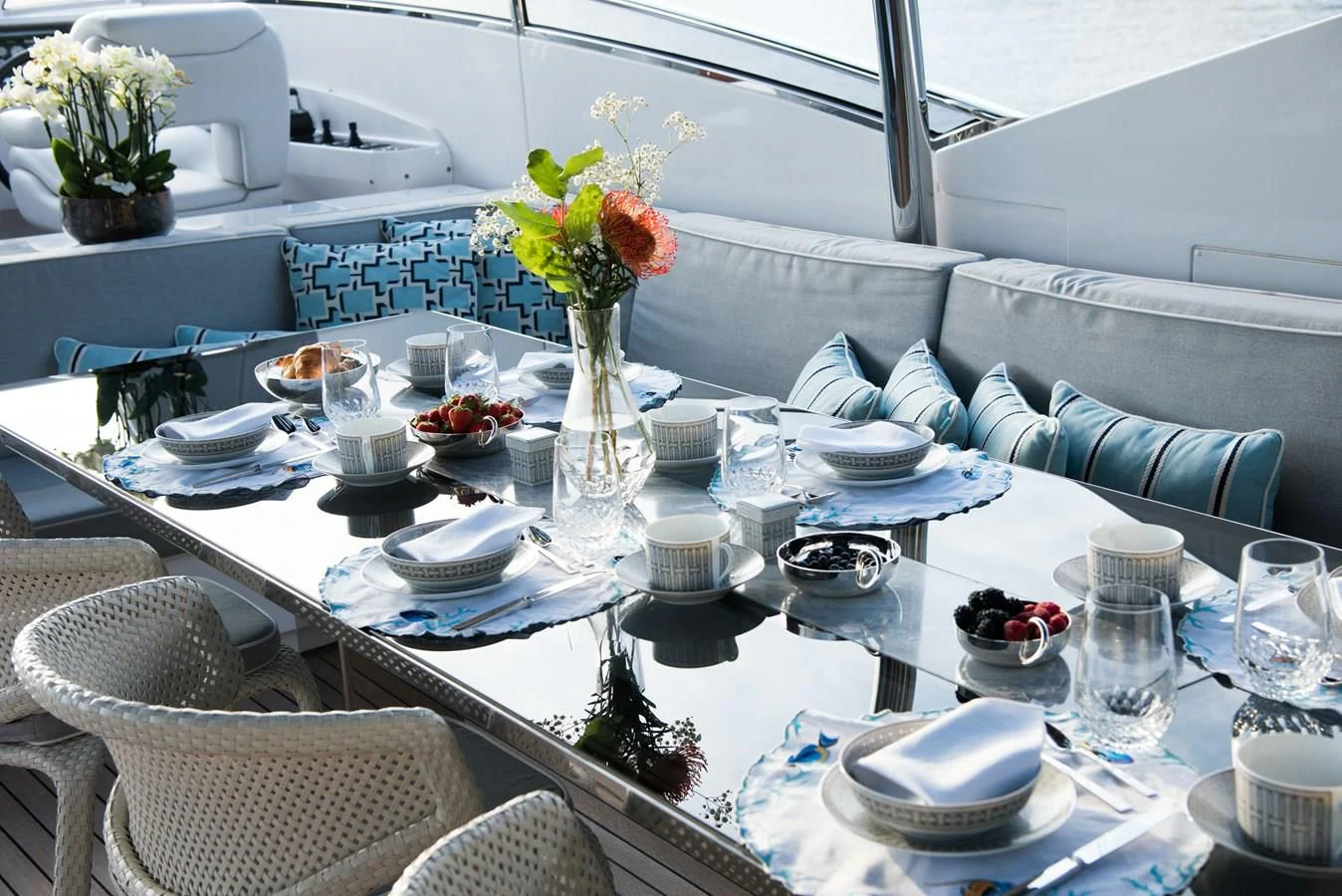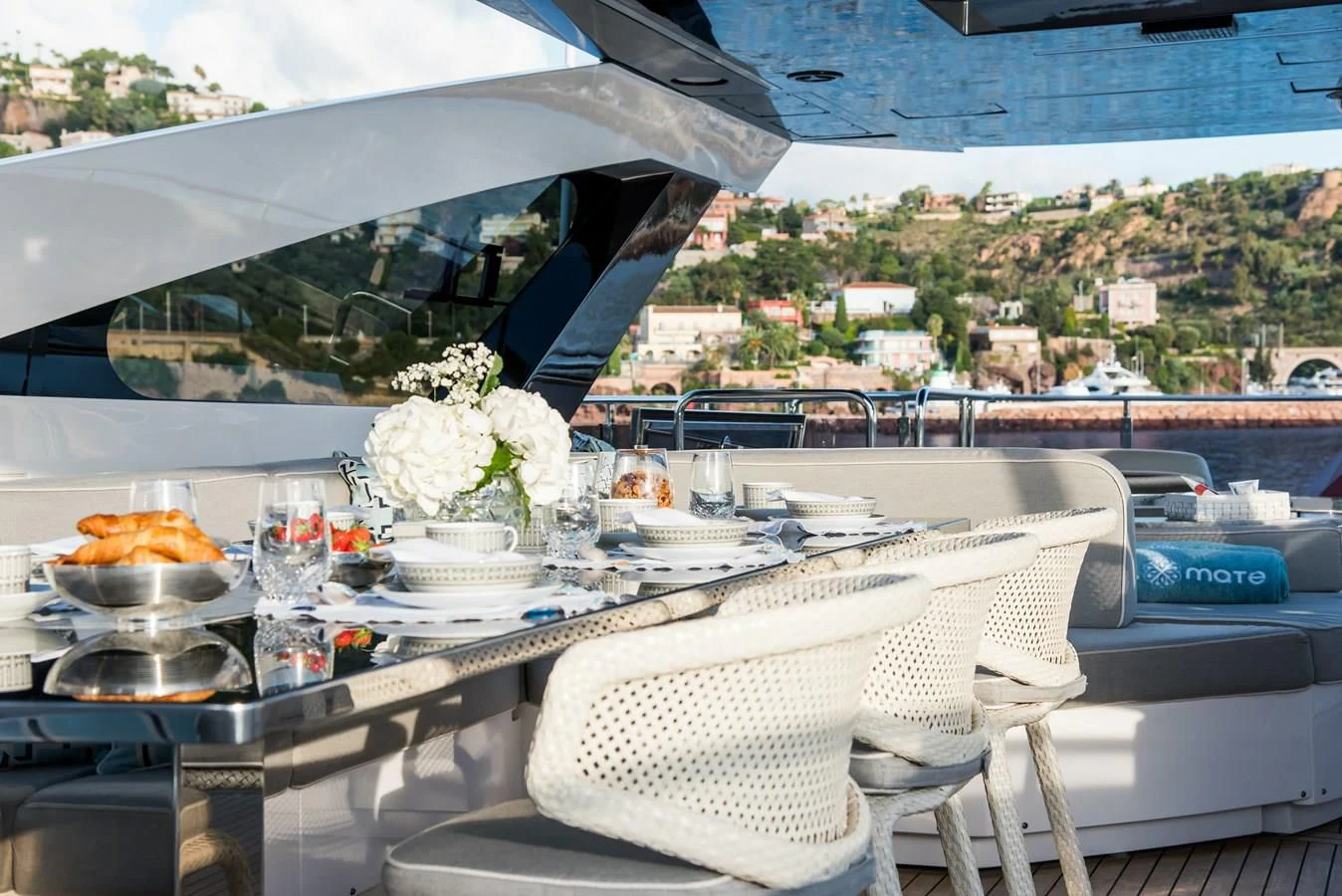 The interior is in elegant tones of cream with dark accents for a contemporary, warm and welcoming ambience. Soulmate remains fresh with an extensive upholstery and soft furnishing update by Sabrina Monte Carlo and continuous maintenance each winter.