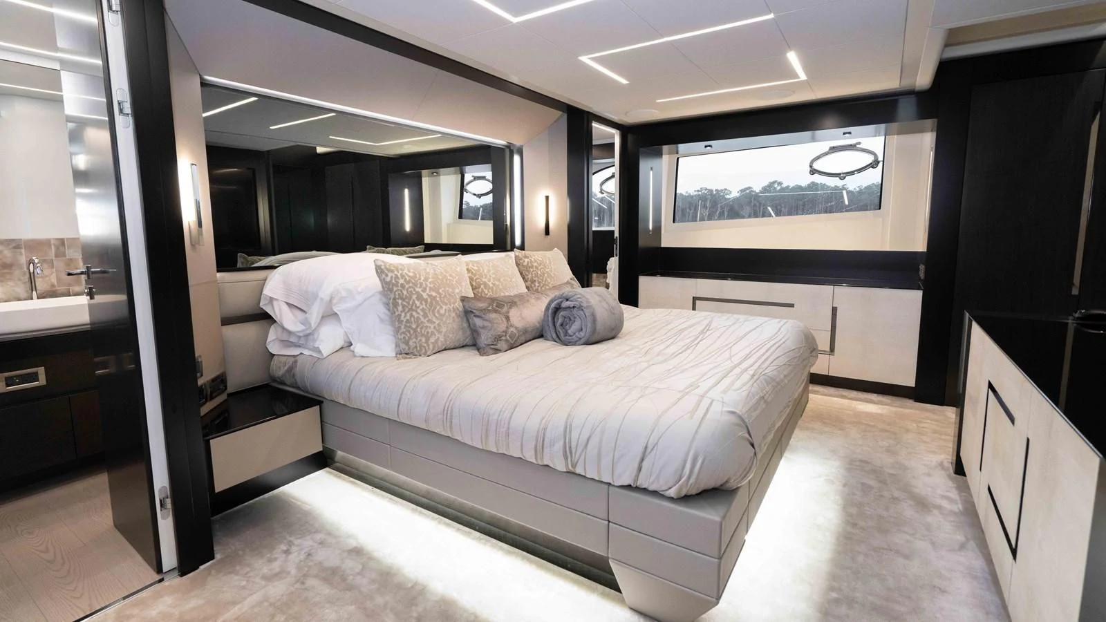 The main salon aboard the STALLION is an epitome of luxury living at sea - spacious yet intimate; grand yet welcoming; modern yet timeless – it’s where every moment turns into cherished memories. A dedicated dining area provides ample space for guests to enjoy delectable meals prepared by skilled chefs onboard.
