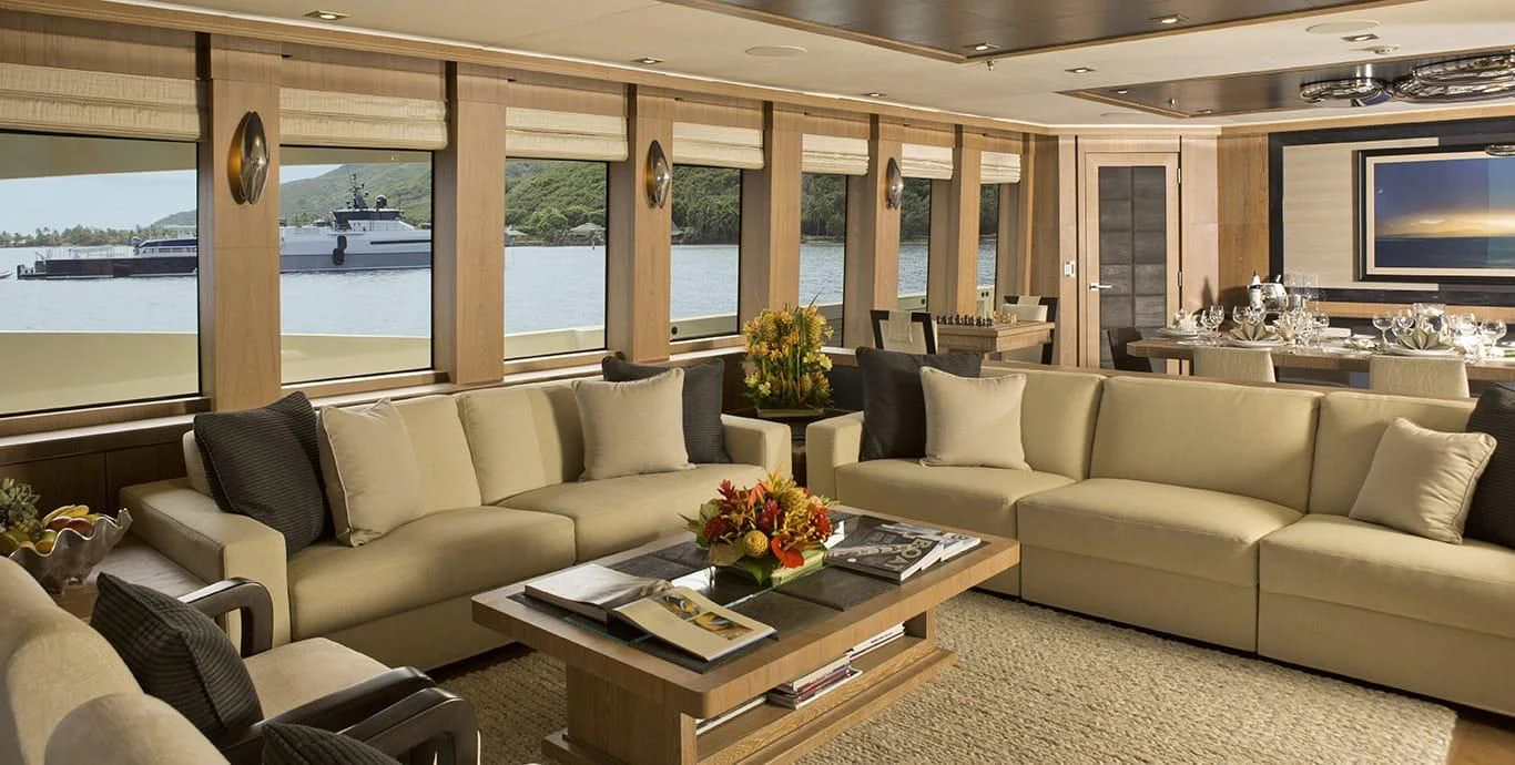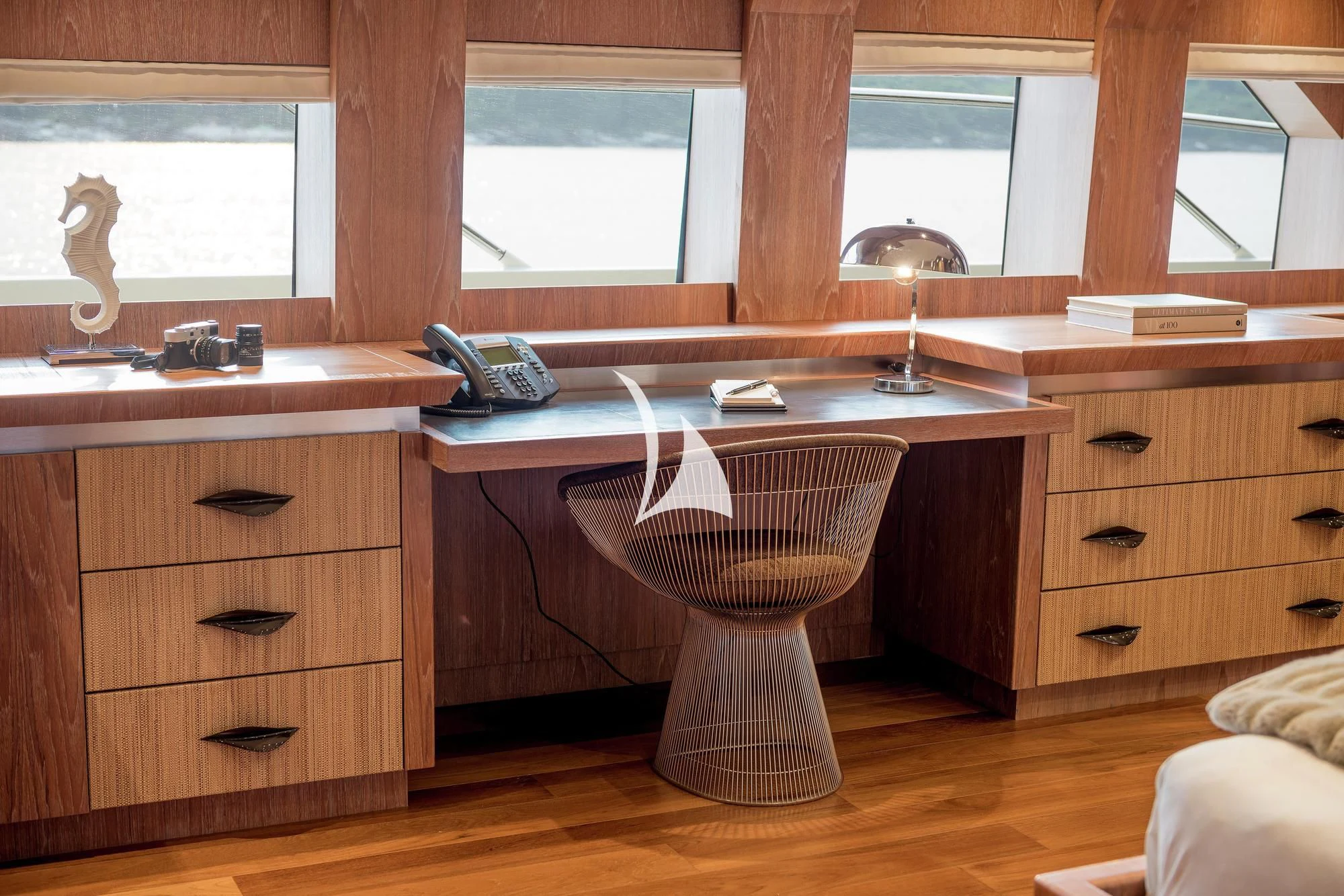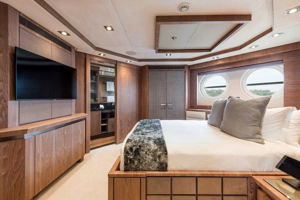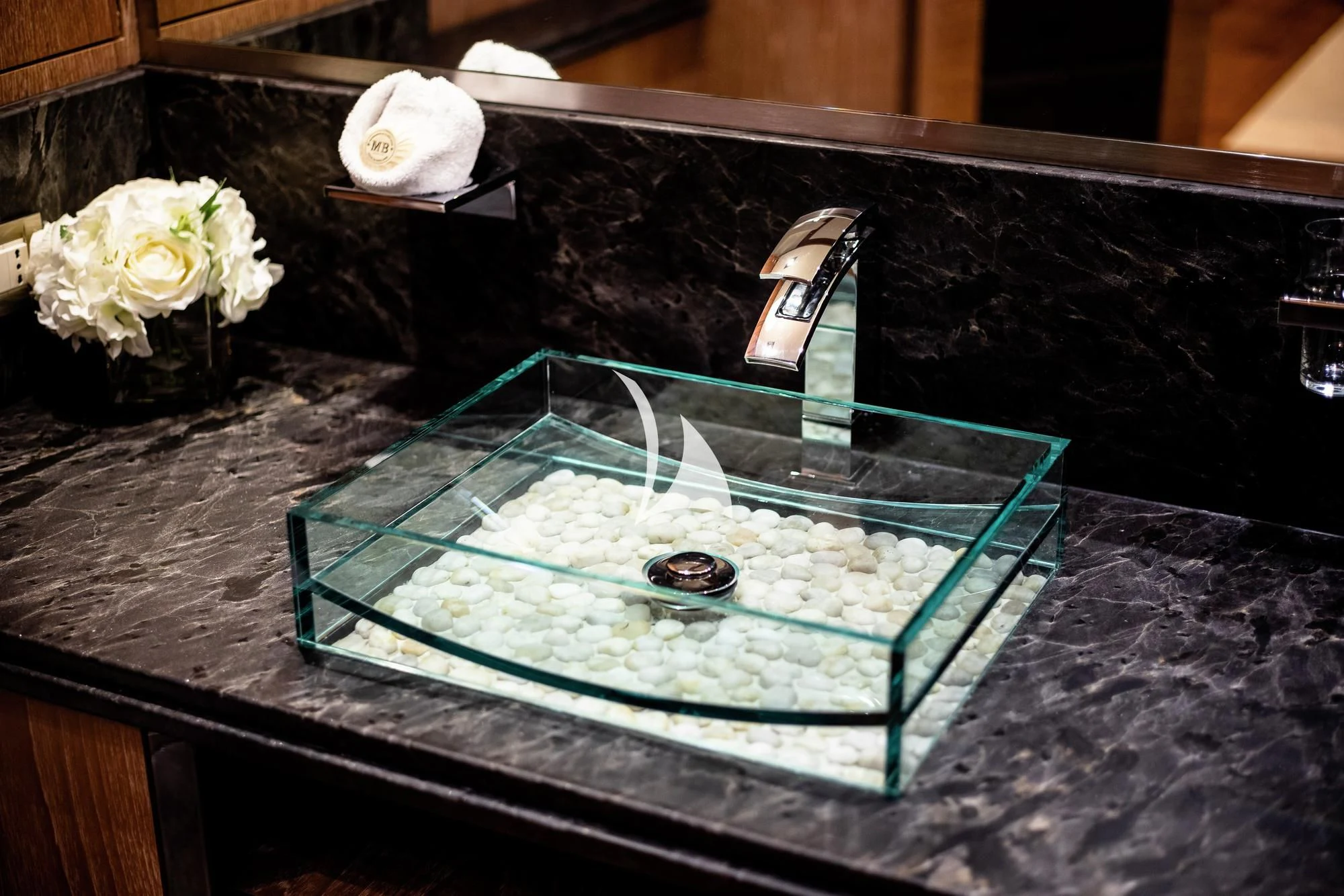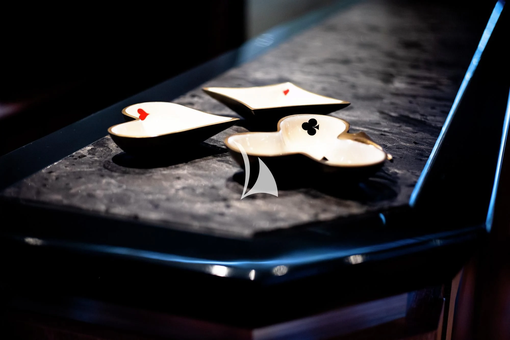 Inside STEALTH, you'll find an interior as striking as its exterior. The design exudes contemporary sophistication through its clean lines and high-quality finishes. A color palette dominated by neutral tones enhances the sense of space while allowing pops of color to add warmth and personality to each room. Five spacious cabins comfortably accommodate up to twelve guests in unrivaled luxury; each one thoughtfully designed to ensure maximum comfort during your voyage.