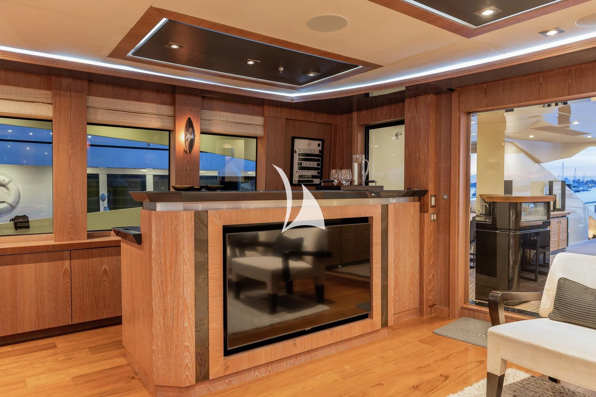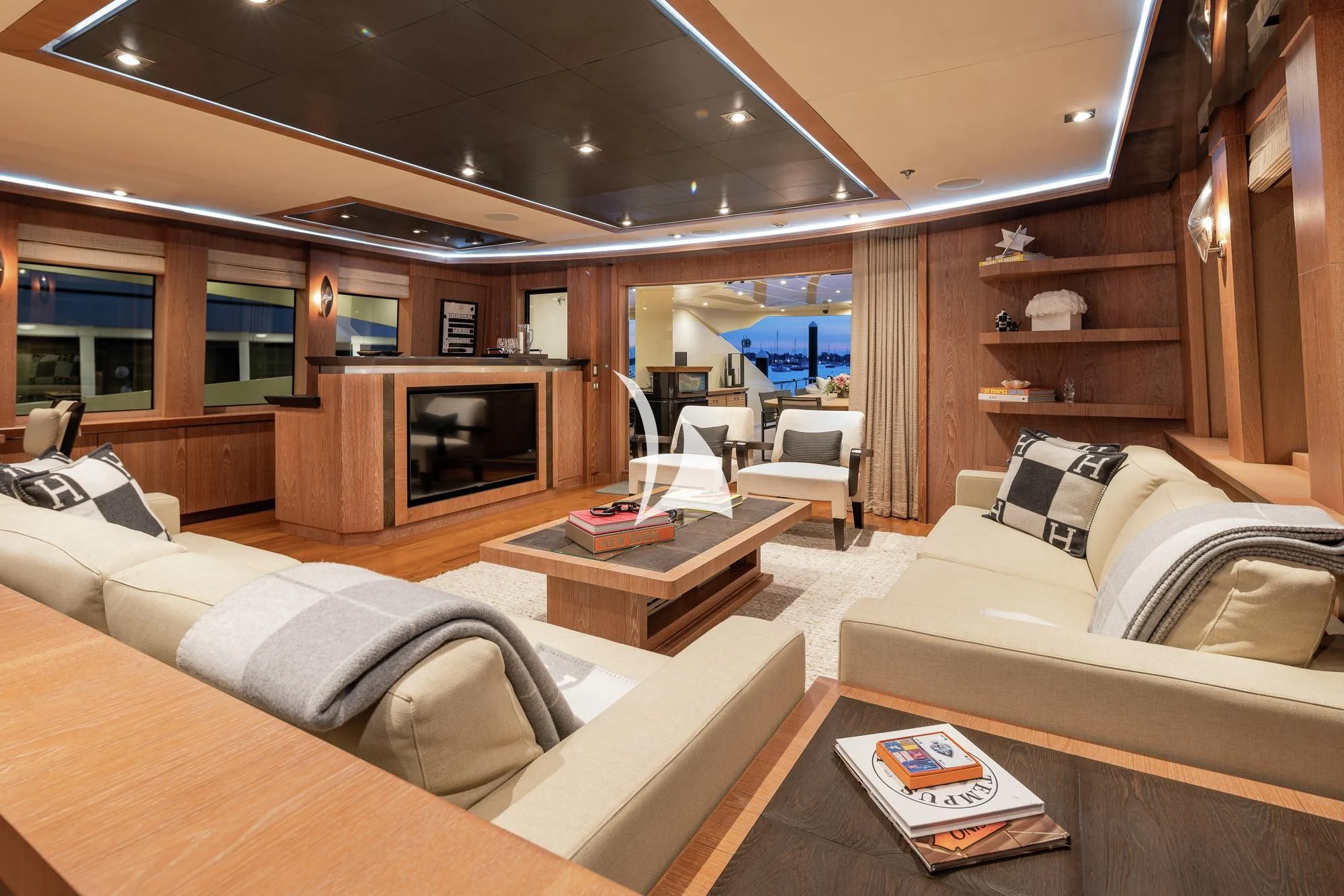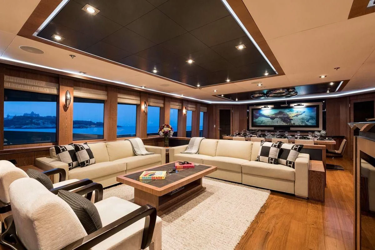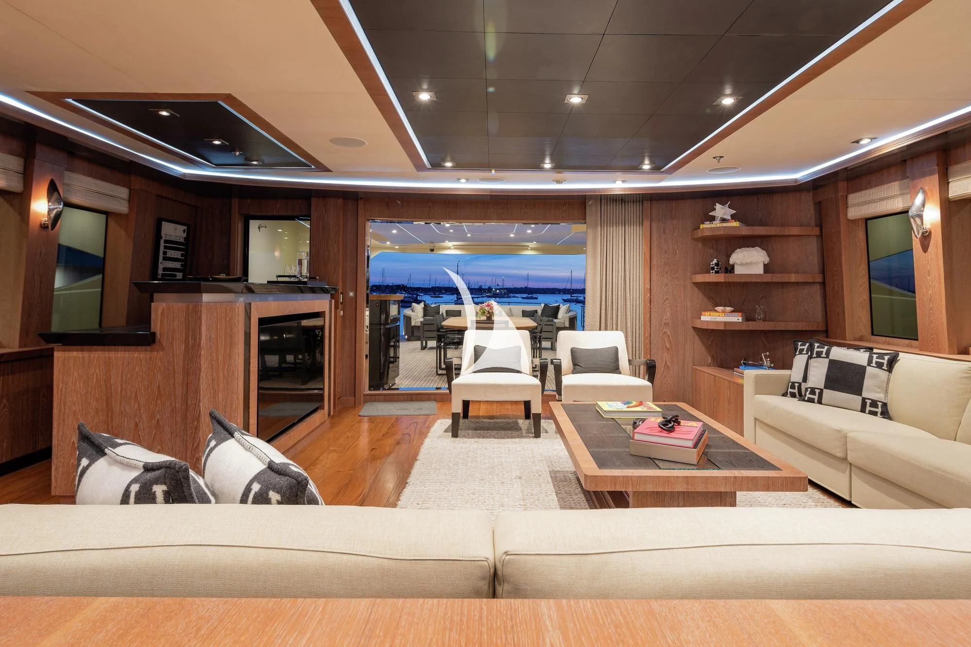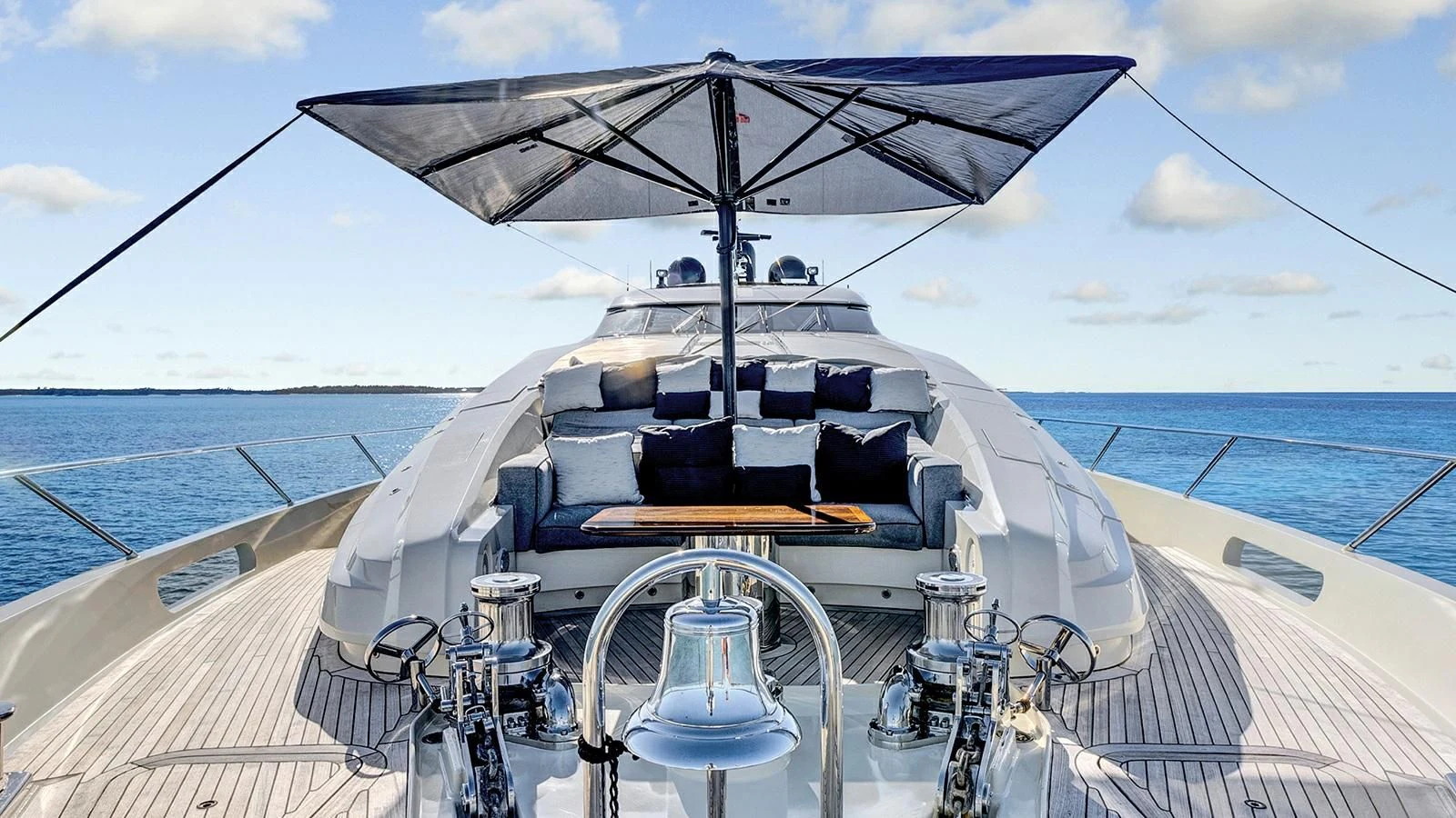 The yacht's exterior spaces are nothing short of spectacular. The sundeck is a haven for sun worshippers, complete with plush loungers and a luxurious Jacuzzi offering panoramic views of the surrounding seascape. Alfresco dining areas invite guests to savor gourmet meals under the stars while enjoying the gentle ocean breeze. At nightfall, these outdoor spaces transform into perfect venues for cocktail parties or intimate gatherings under the starlit sky.