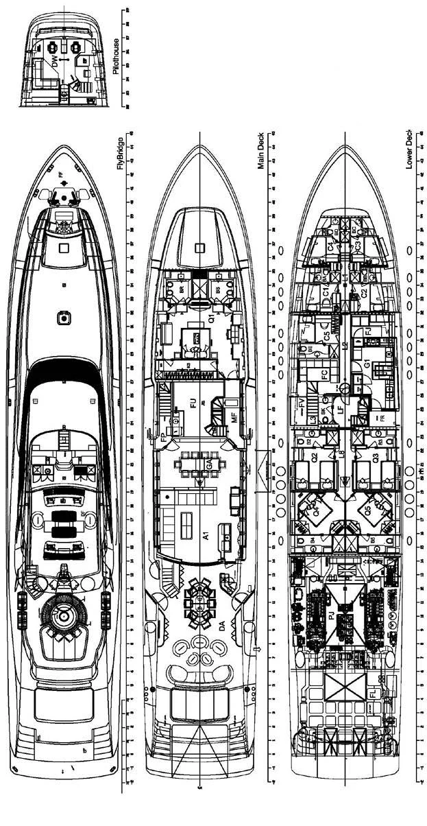 Underneath its sleek silhouette lies powerful machinery - two MTU 16V4000 engines delivering a combined force of 7300 hp (5442 kW). This allows STEALTH to cruise gracefully at speeds up to 15 knots and reach maximum speeds of astounding 27 knots – truly living up to its name! Furthermore, it features Arcturus Marine (TRAC) bow thrusters that ensure effortless maneuverability even in tight docking situations.