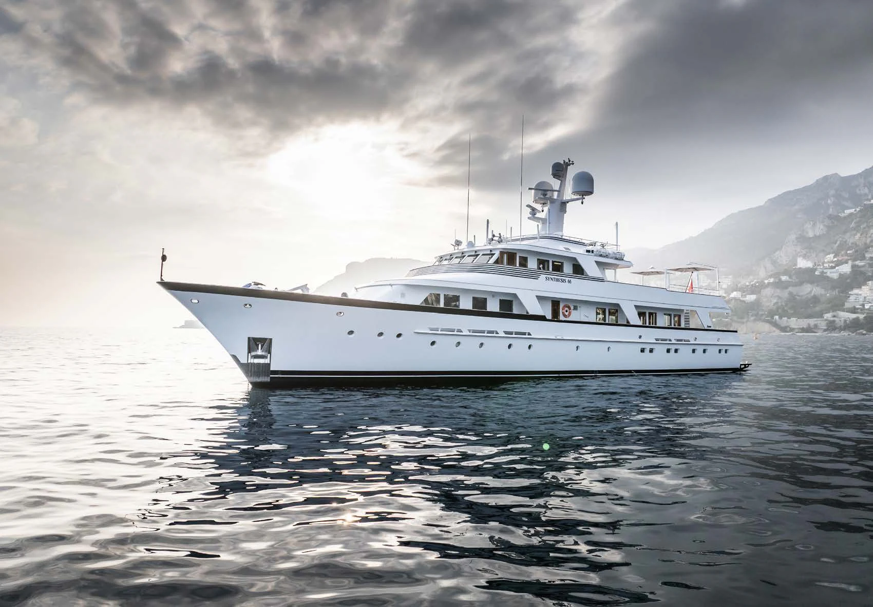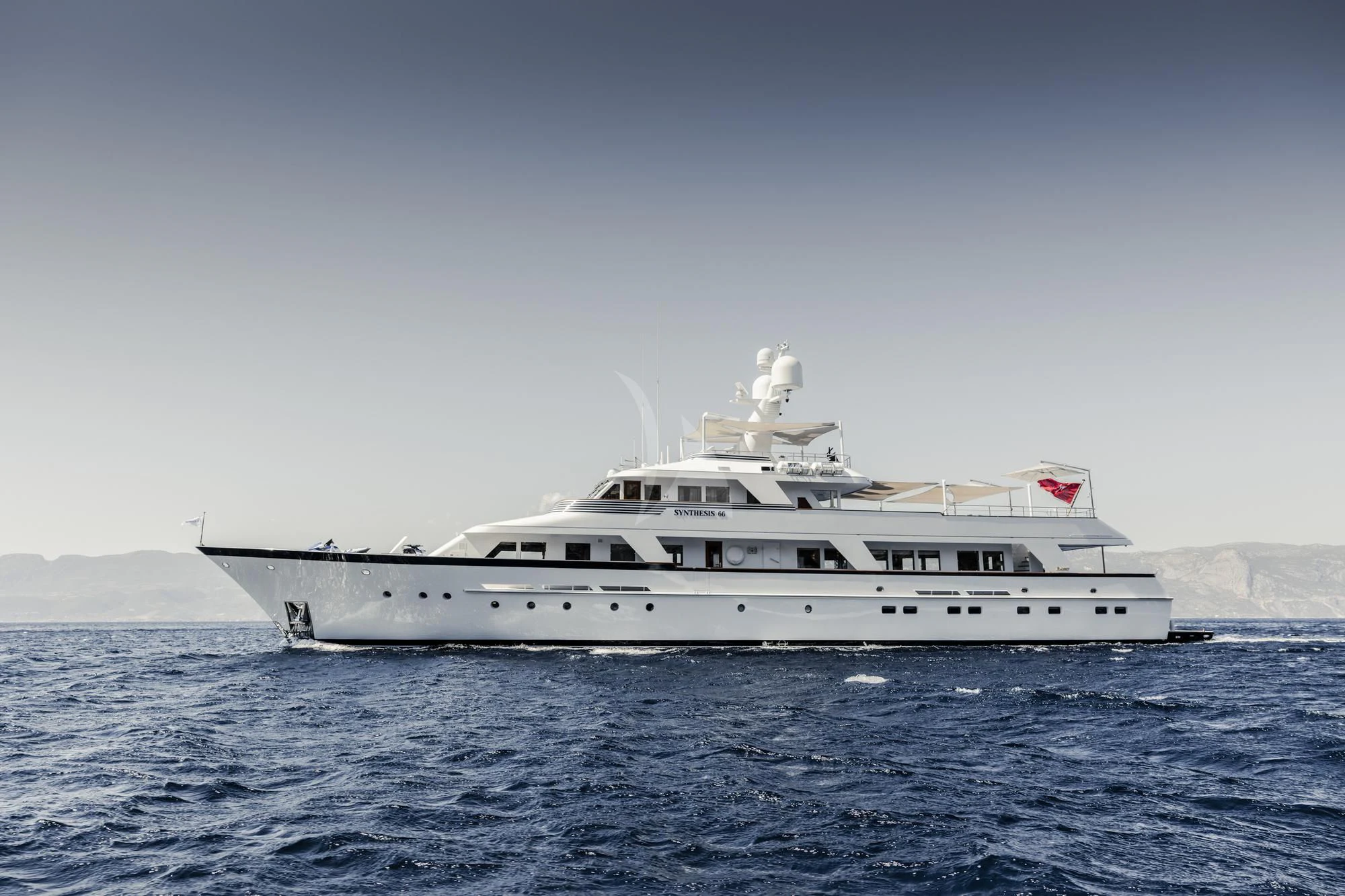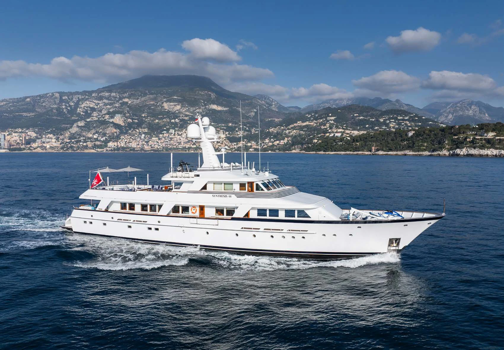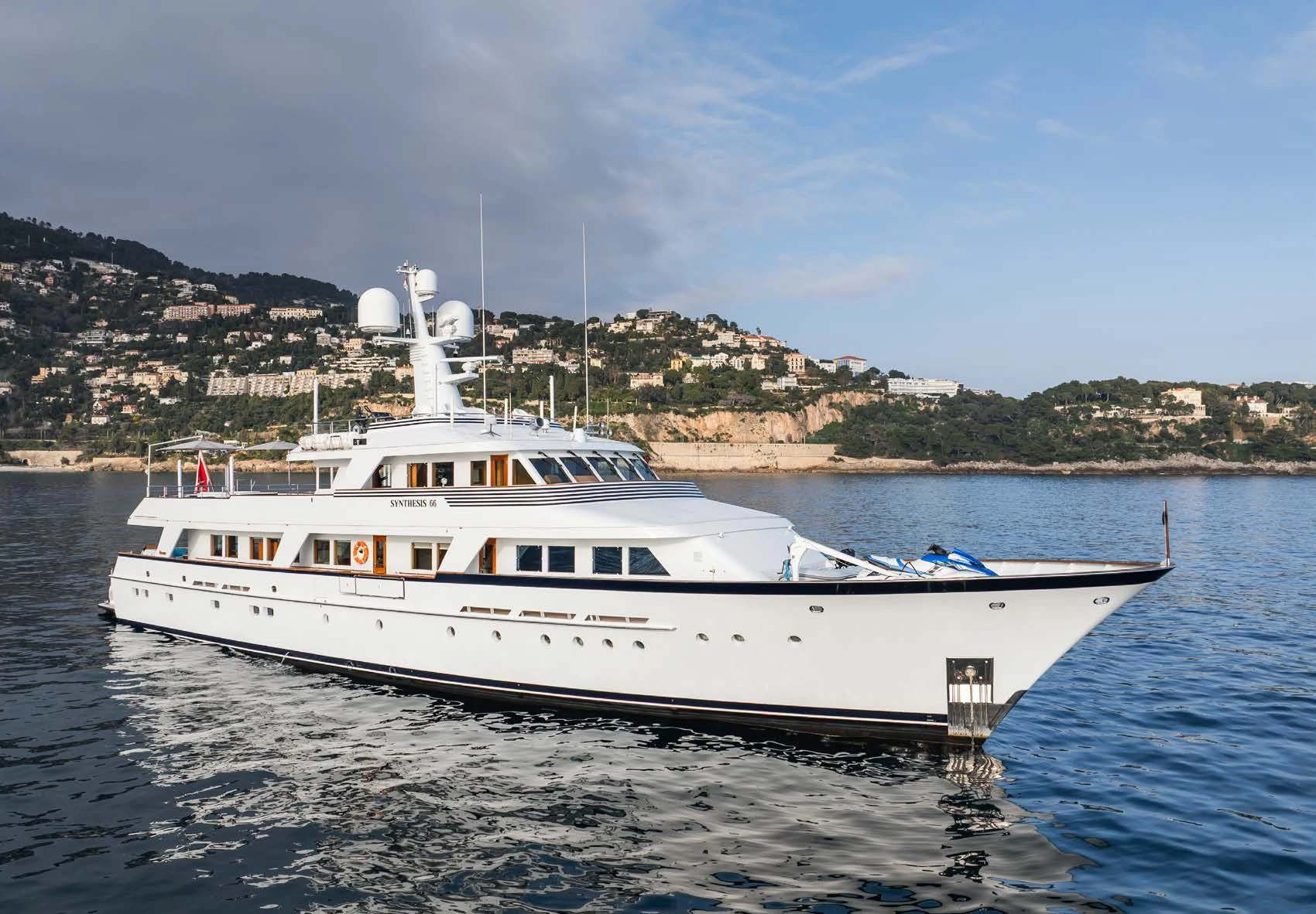 The classic Feadship SYNTHESIS 66 is a 137’ (41.8m) motor yacht of exceptional pedigree. Built in 1982, she is an impressive member of Feadship’s heritage fleet. She recently completed a major rebuild over three years at Monaco Marine, bringing her back into Lloyd’s classification—an impressive feat—and now enjoys modern amenities and a fresh design.