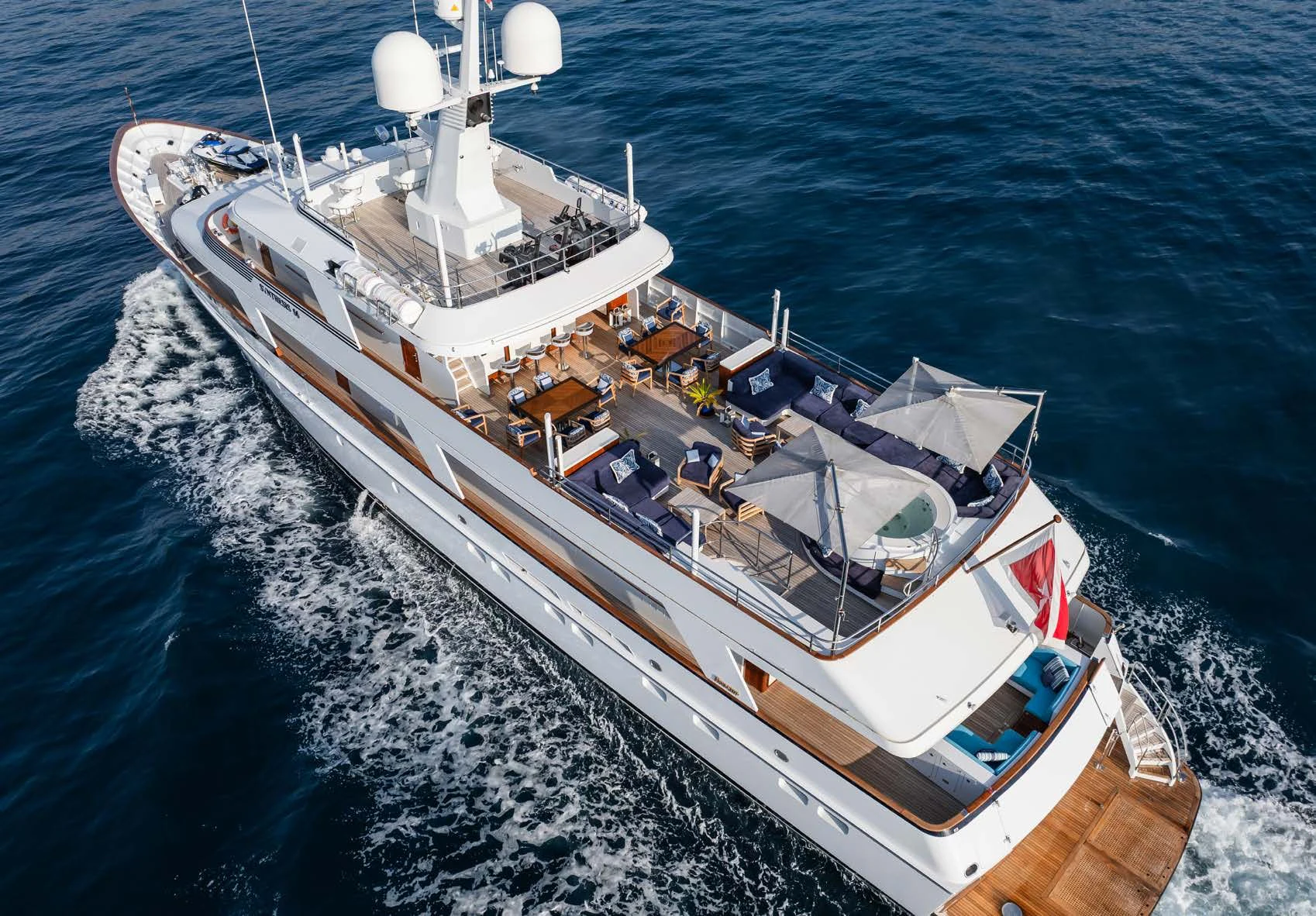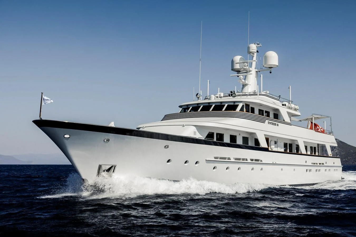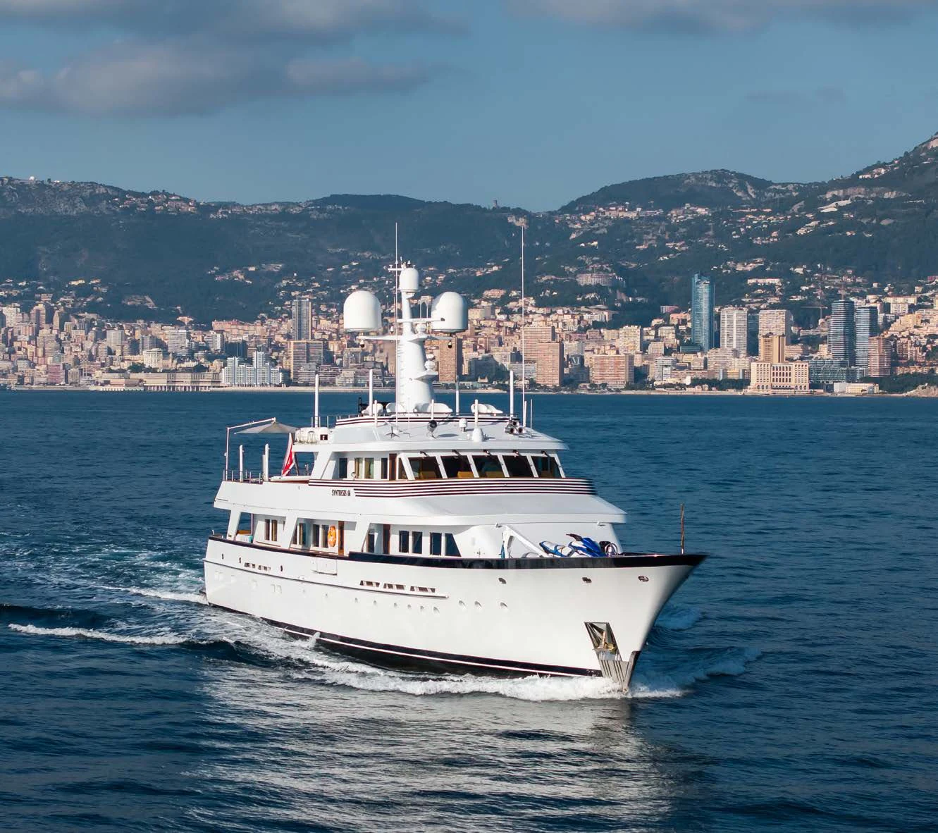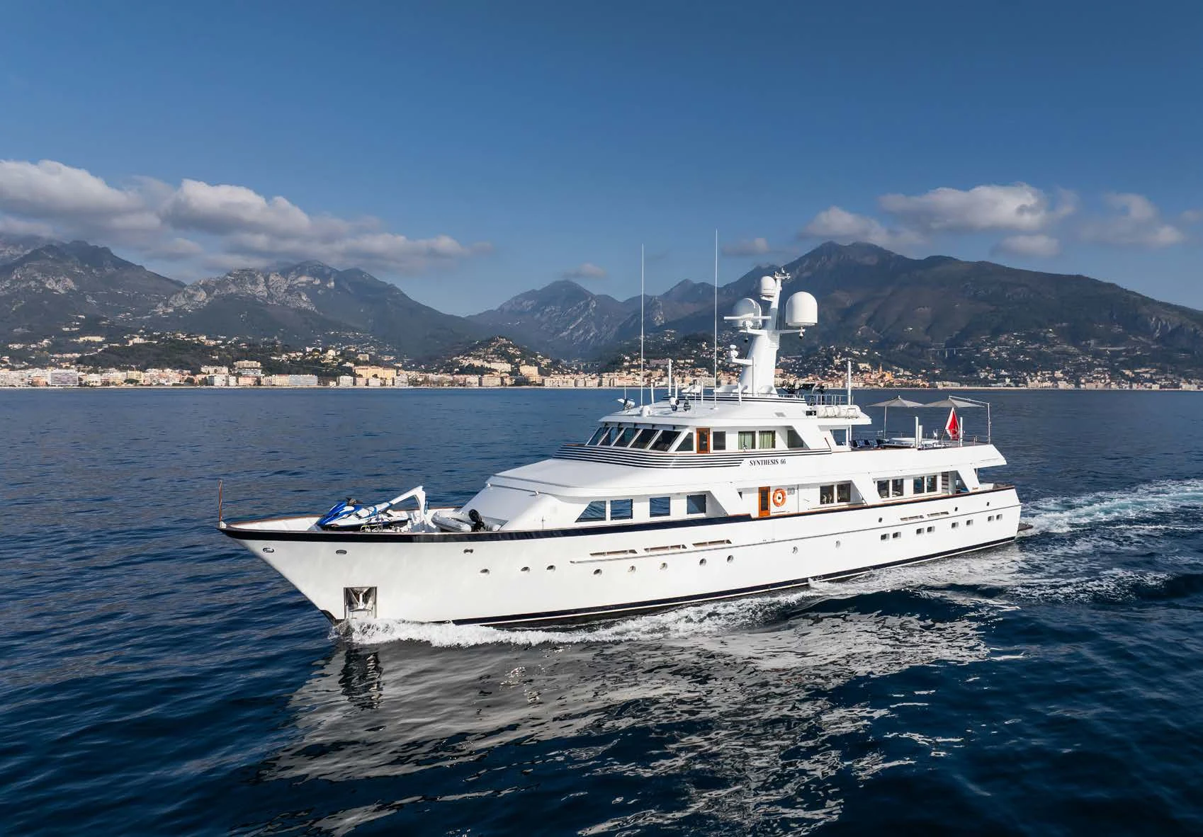 The classic Feadship SYNTHESIS 66 is a 137’ (41.8m) motor yacht of exceptional pedigree. Built in 1982, she is an impressive member of Feadship’s heritage fleet. She recently completed a major rebuild over three years at Monaco Marine, bringing her back into Lloyd’s classification—an impressive feat—and now enjoys modern amenities and a fresh design.
