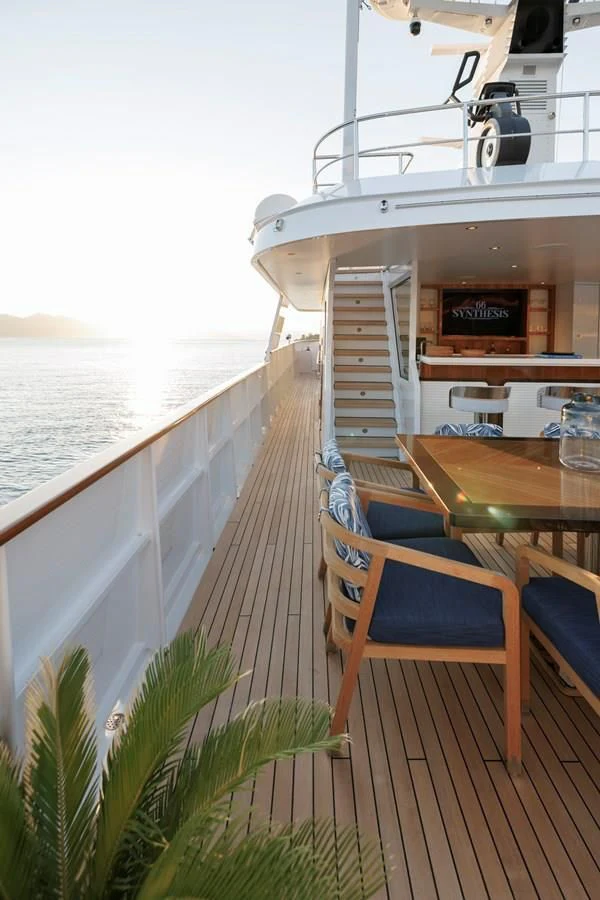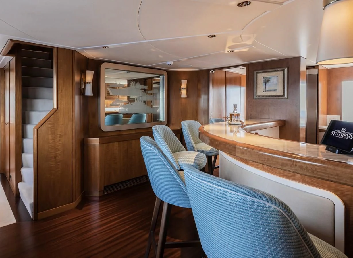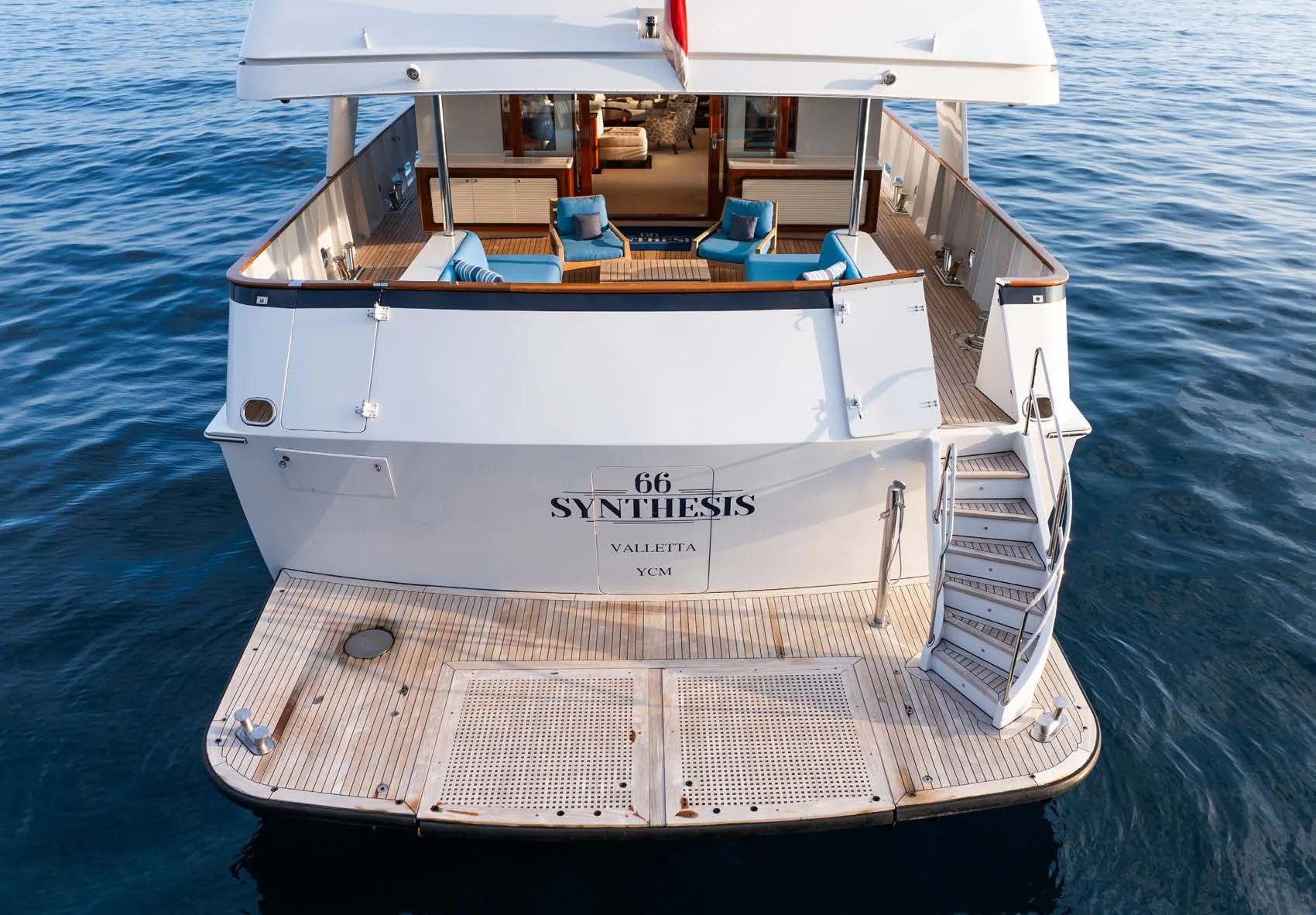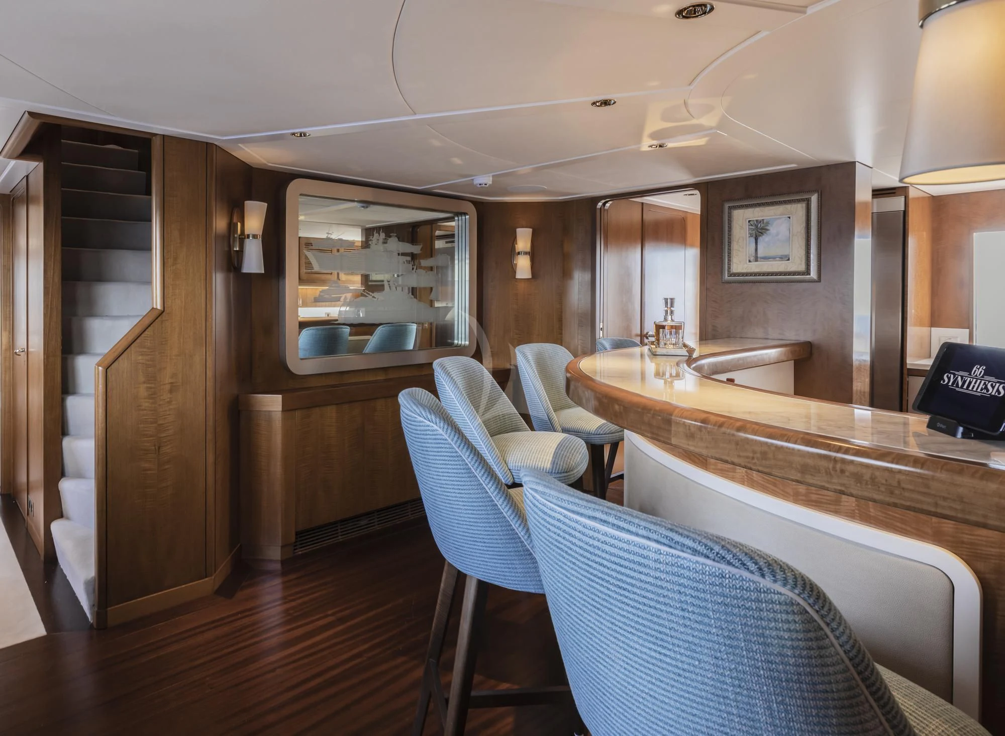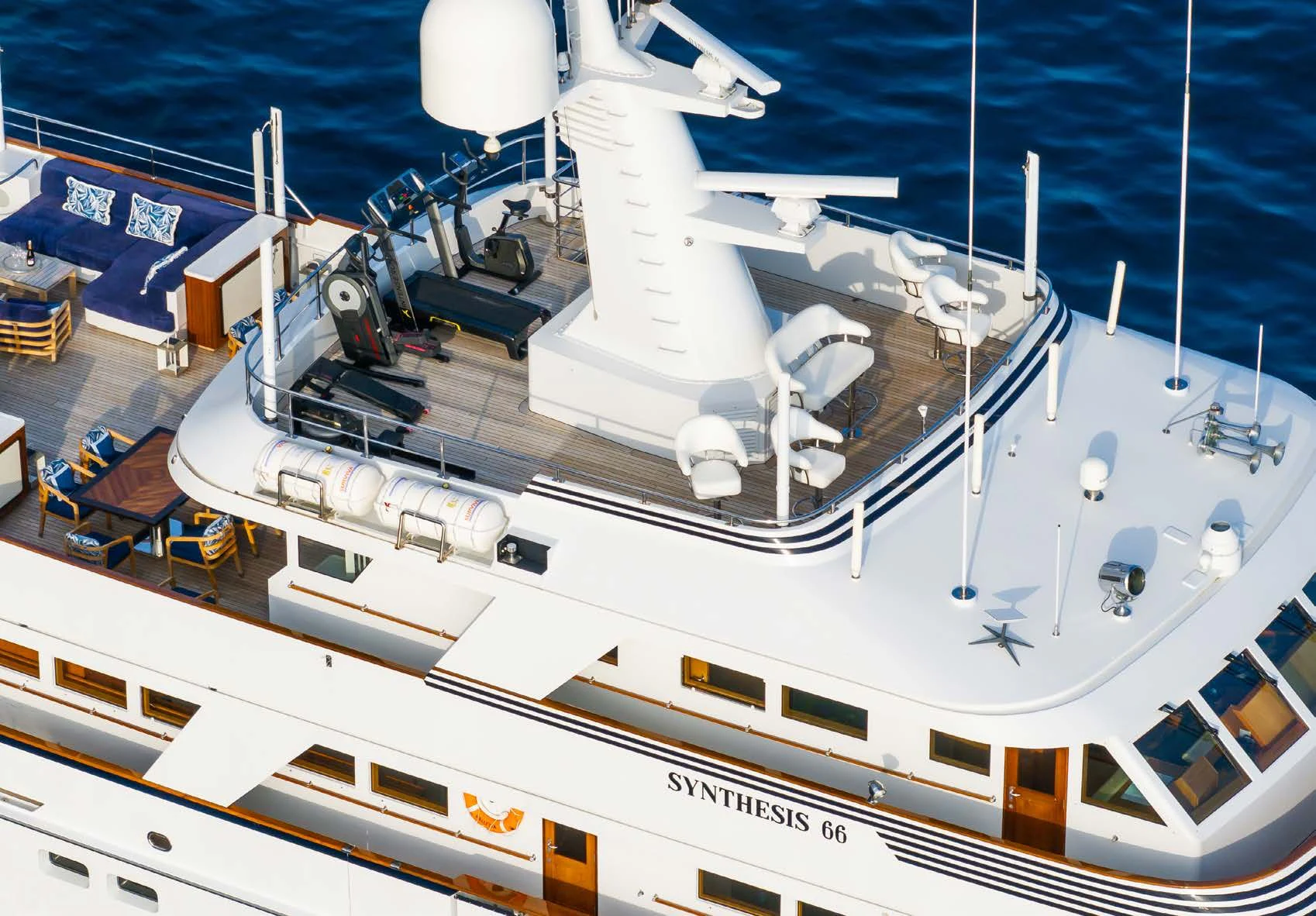 SYNTHESIS 66 is a bright and airy yacht, ideal for those looking to relax and entertain. A home away from home, her interior update has taken advantage of her large windows with a palette of light, neutral shades. Her interior refit was overseen by Boutsen Monaco who retained her original woodwork, which, paired with this new contemporary design, has provided the yacht with a timeless, classic ambiance throughout.