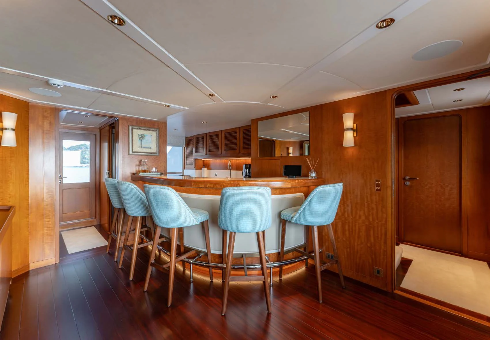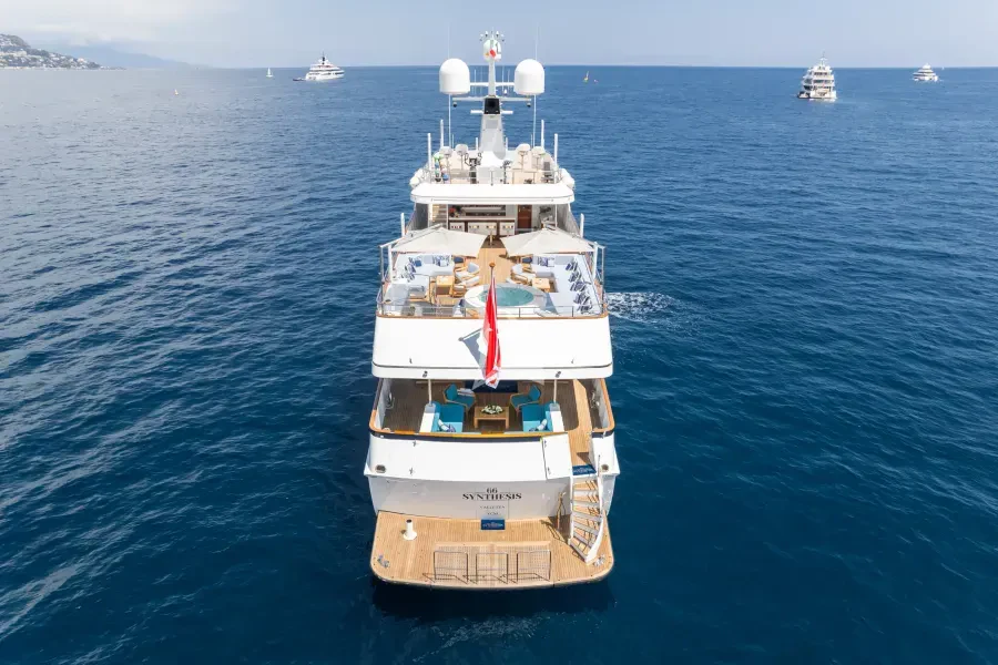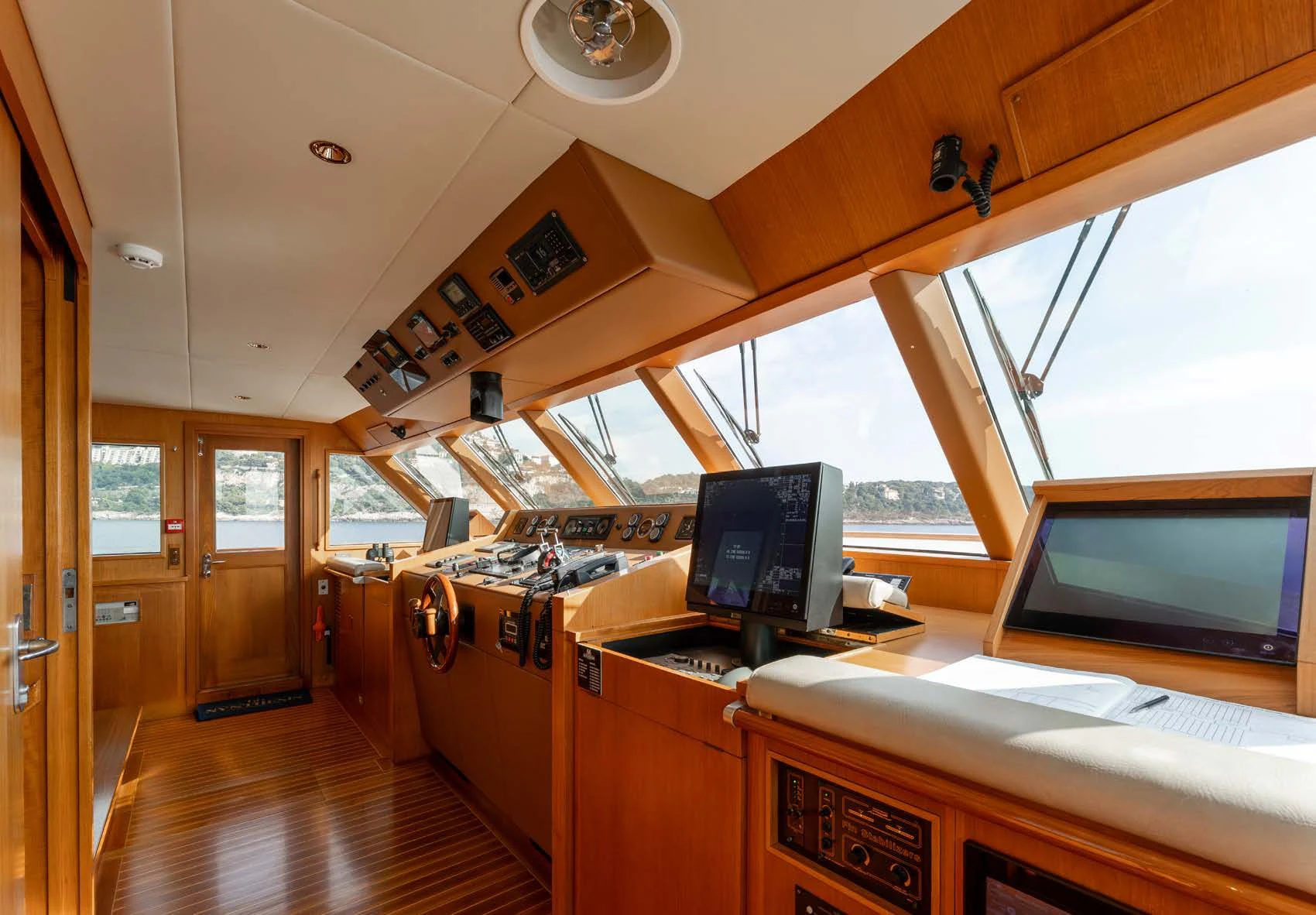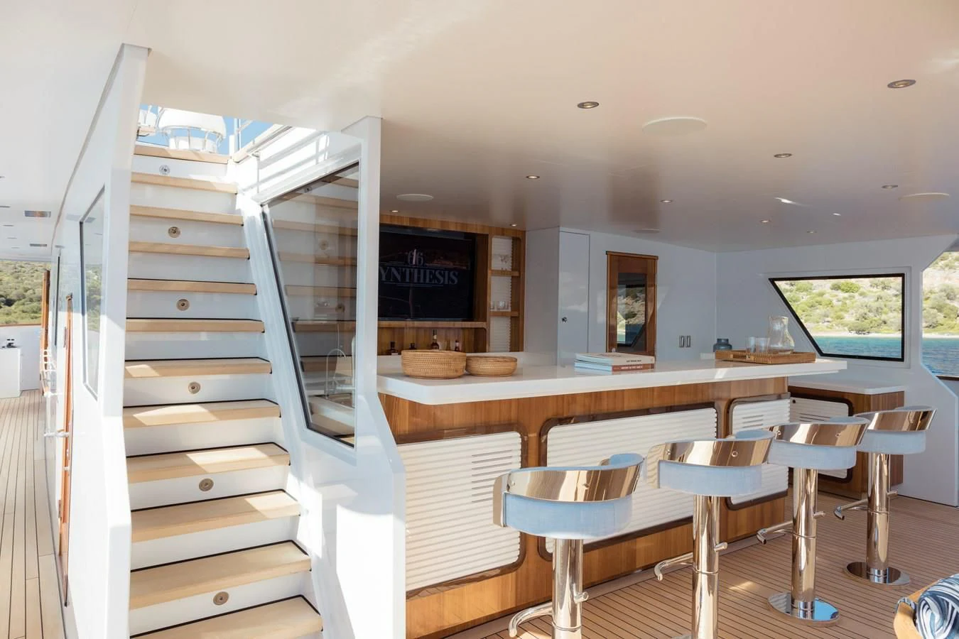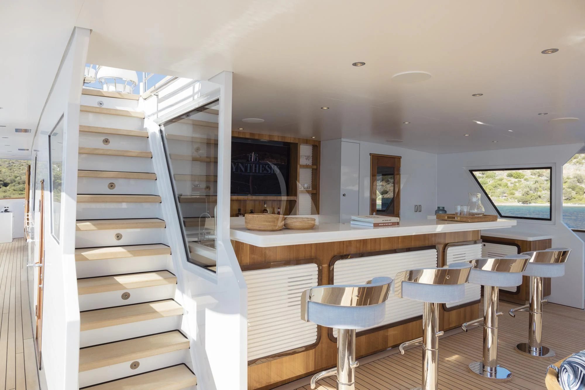 SYNTHESIS 66 is a bright and airy yacht, ideal for those looking to relax and entertain. A home away from home, her interior update has taken advantage of her large windows with a palette of light, neutral shades. Her interior refit was overseen by Boutsen Monaco who retained her original woodwork, which, paired with this new contemporary design, has provided the yacht with a timeless, classic ambiance throughout.