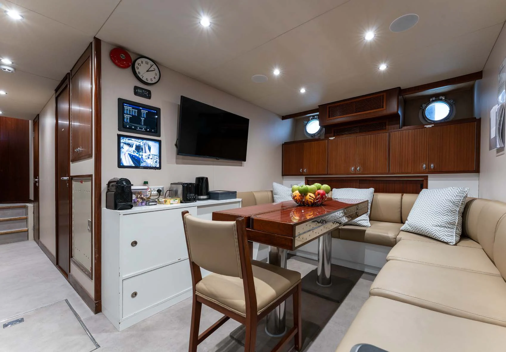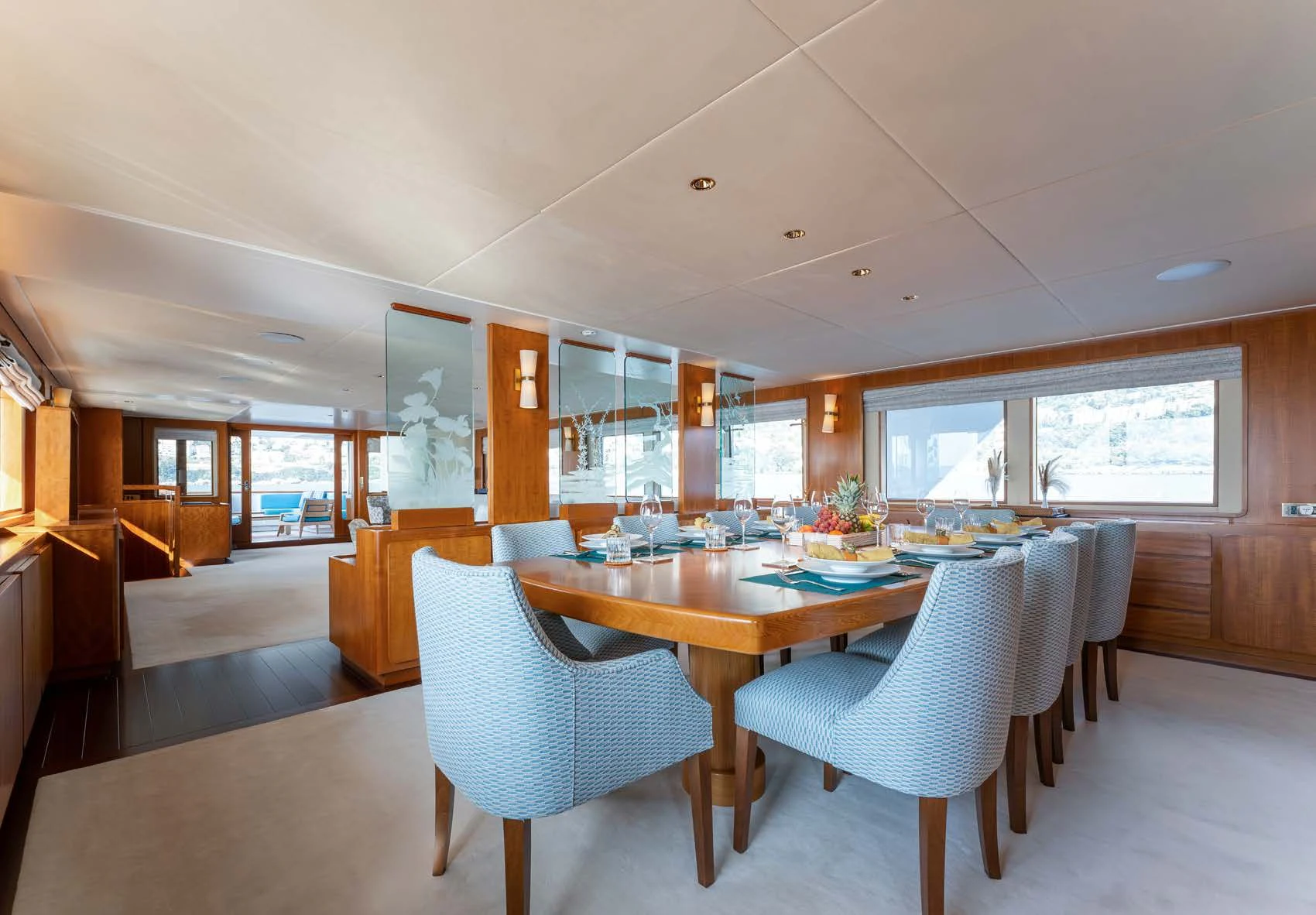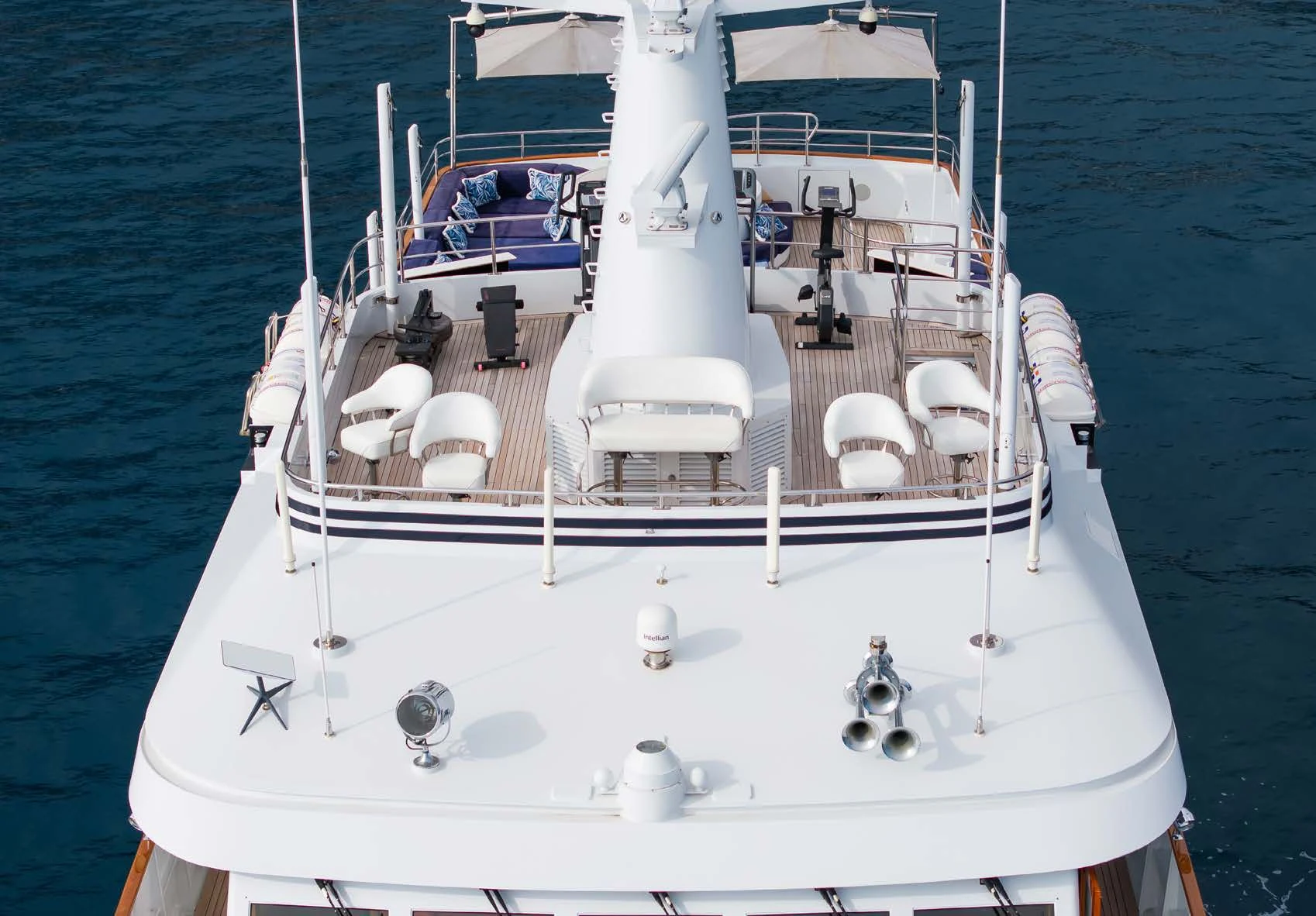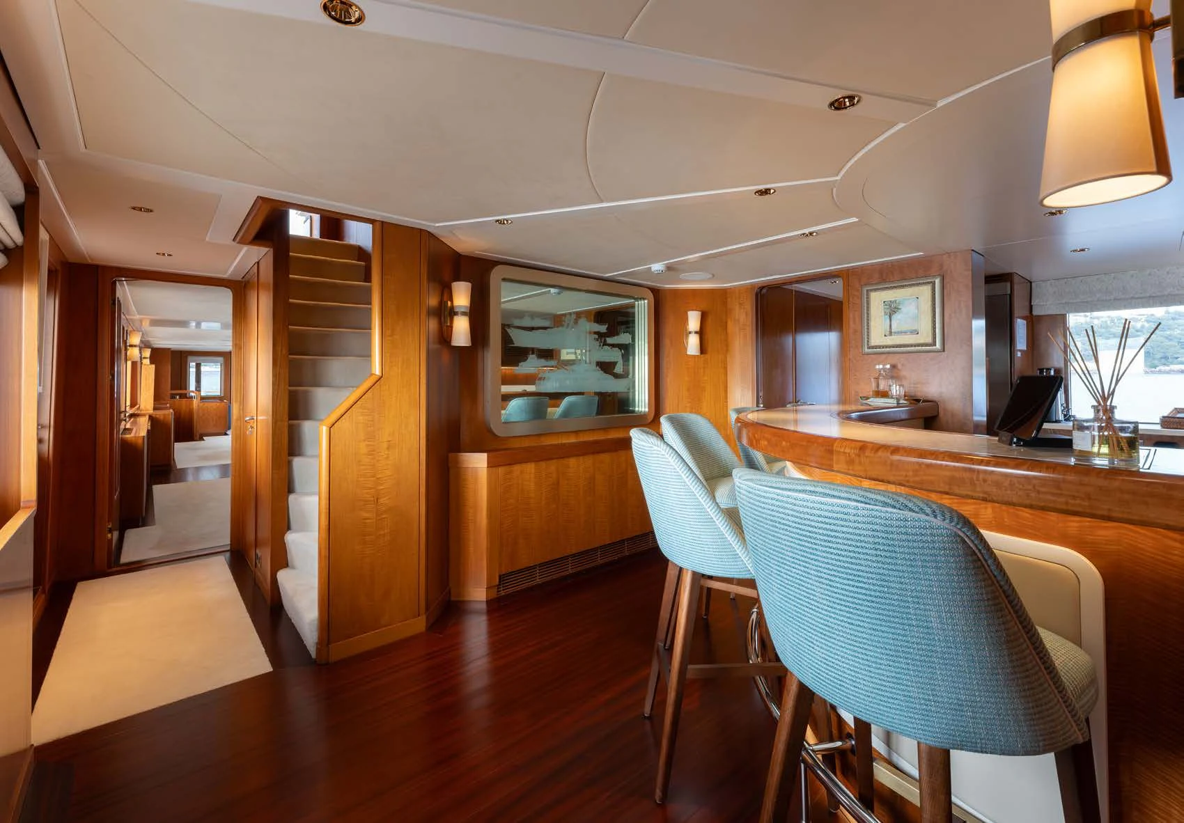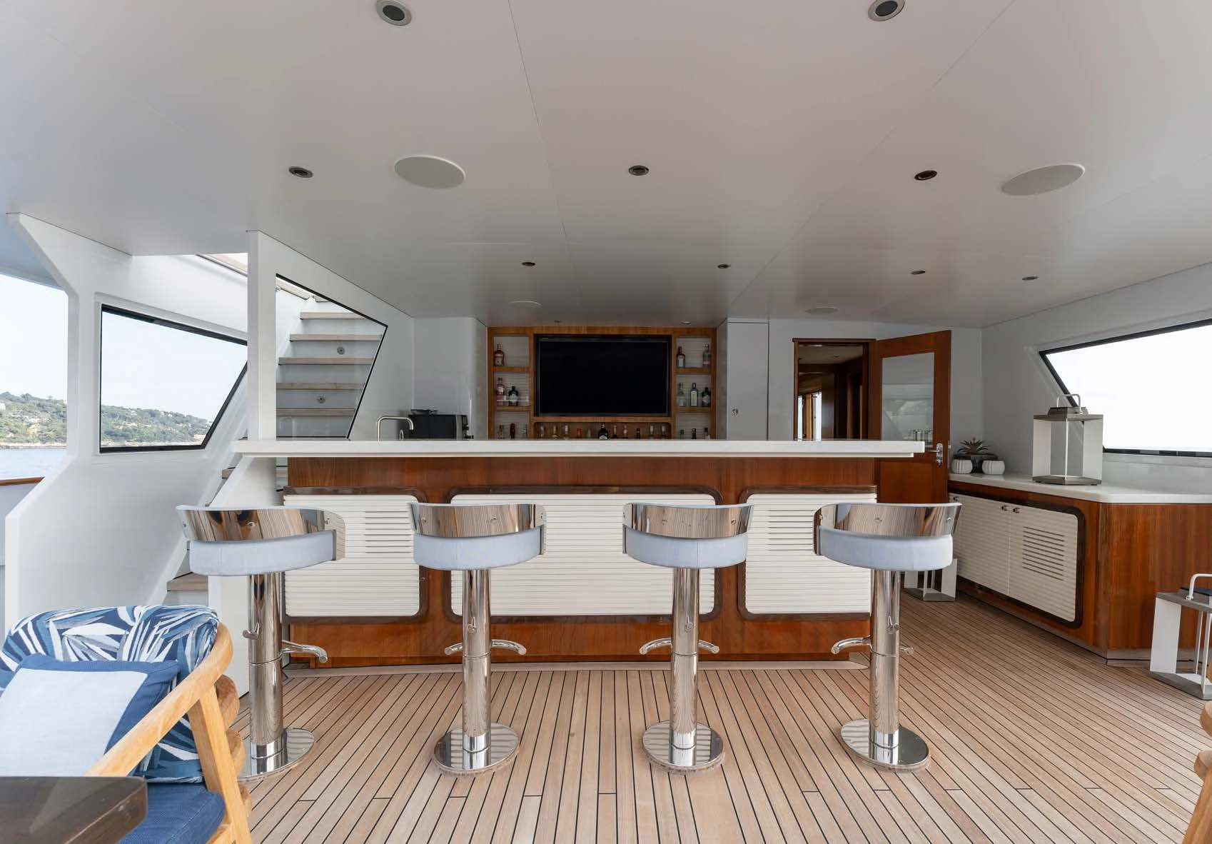 SYNTHESIS 66 is a bright and airy yacht, ideal for those looking to relax and entertain. A home away from home, her interior update has taken advantage of her large windows with a palette of light, neutral shades. Her interior refit was overseen by Boutsen Monaco who retained her original woodwork, which, paired with this new contemporary design, has provided the yacht with a timeless, classic ambiance throughout.