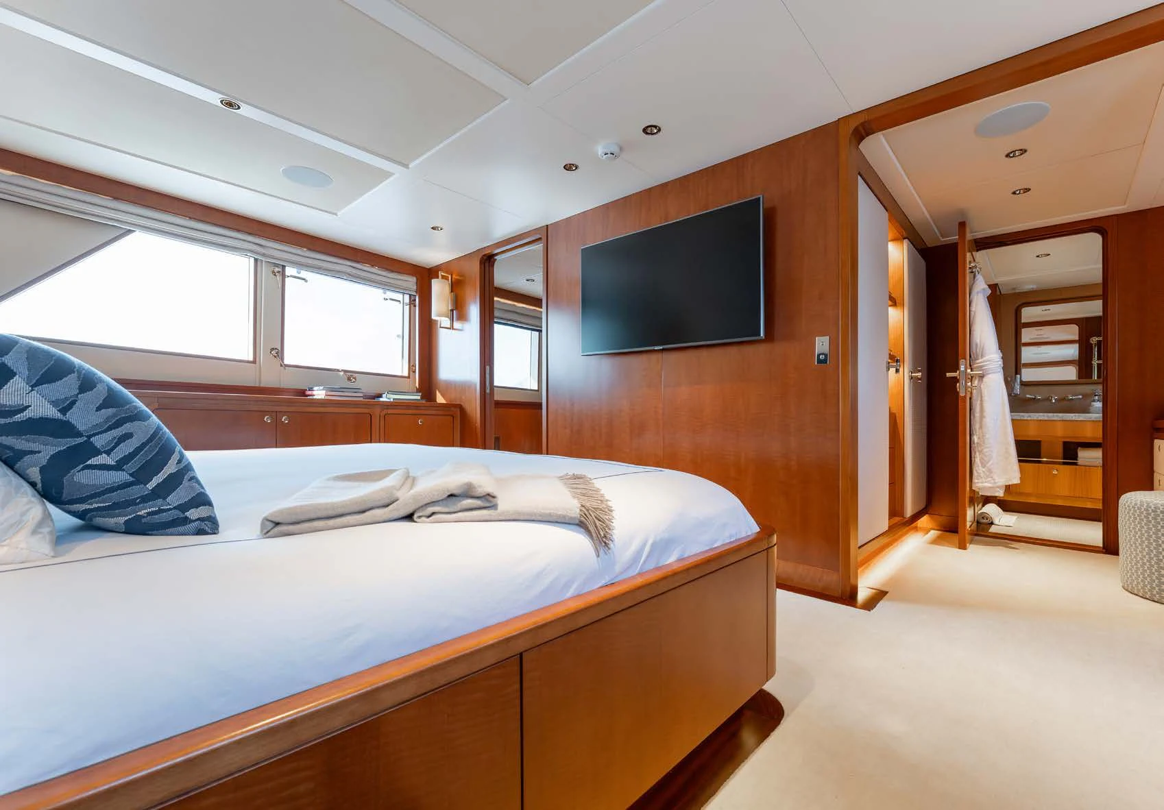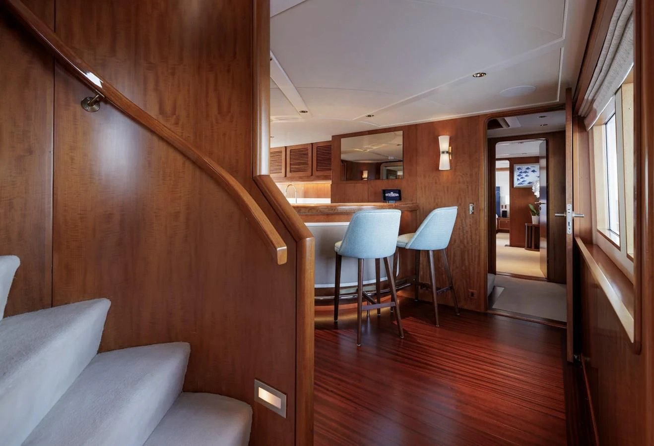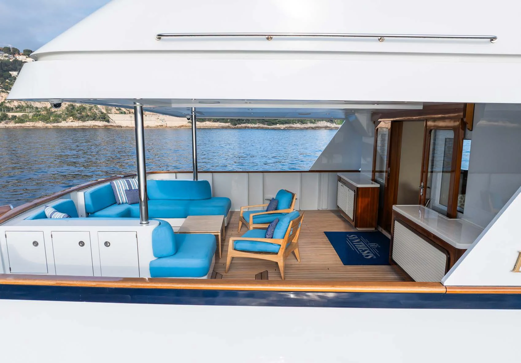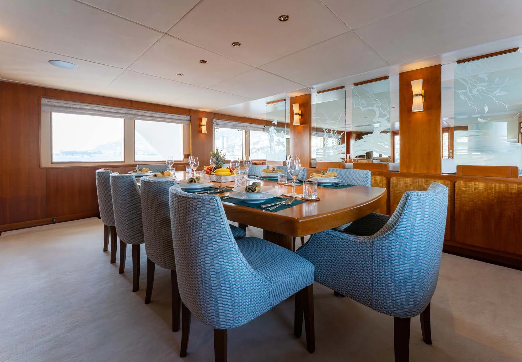 SYNTHESIS 66 is a bright and airy yacht, ideal for those looking to relax and entertain. A home away from home, her interior update has taken advantage of her large windows with a palette of light, neutral shades. Her interior refit was overseen by Boutsen Monaco who retained her original woodwork, which, paired with this new contemporary design, has provided the yacht with a timeless, classic ambiance throughout.