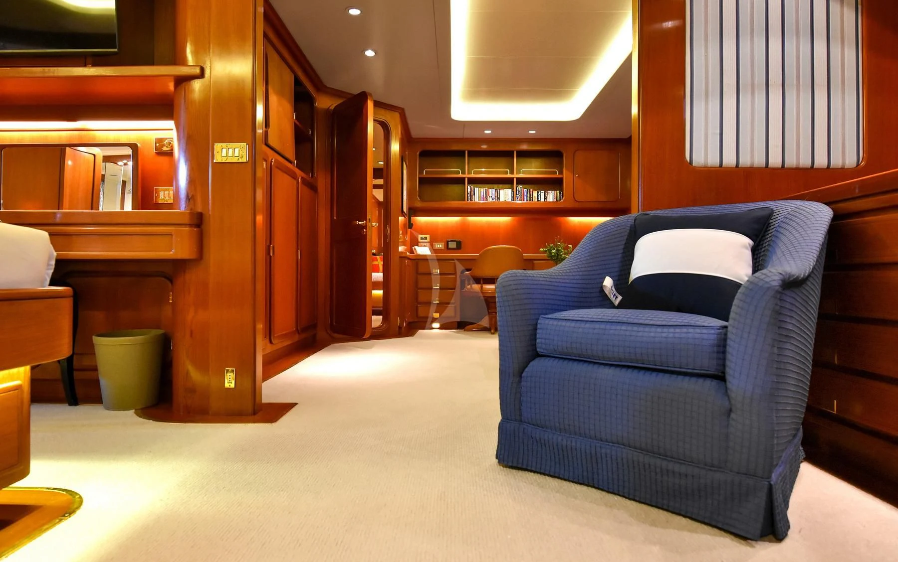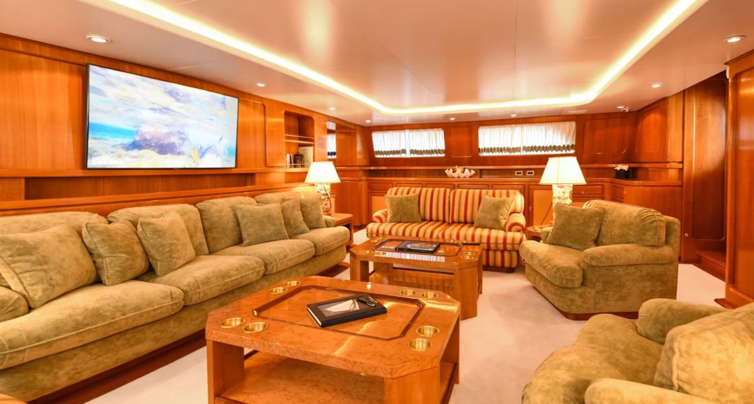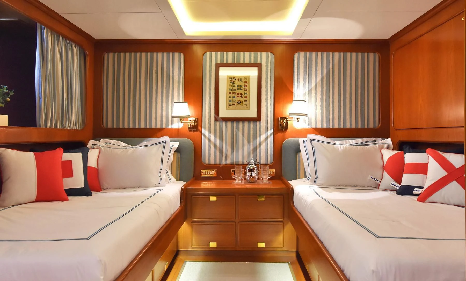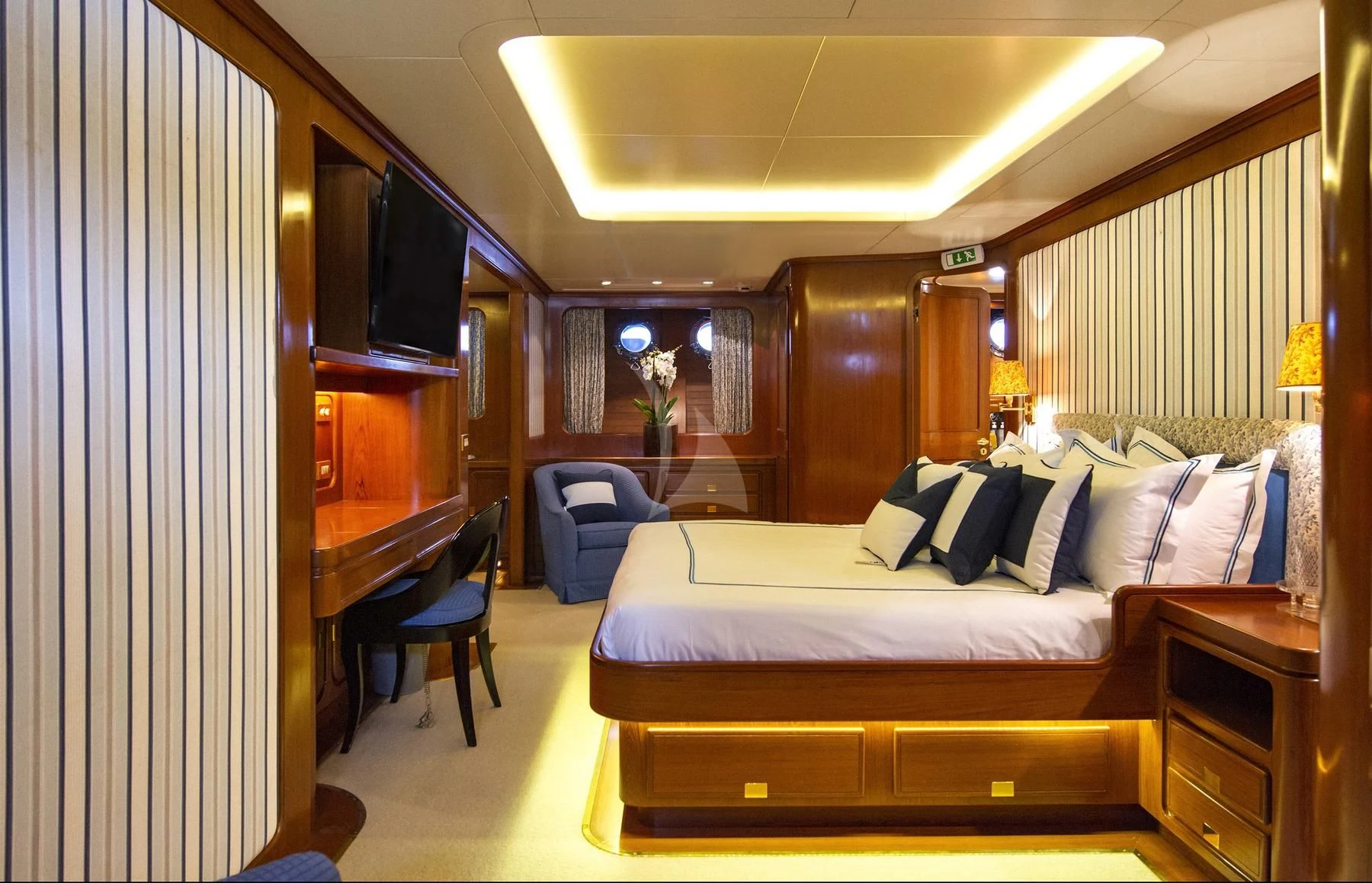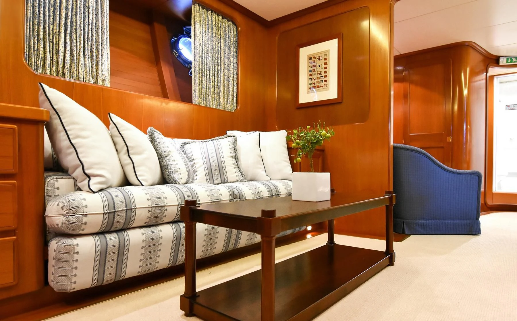 Step aboard TAMARITA and immerse yourself in her luxurious interior spaces designed with meticulous attention to detail. She comfortably accommodates eight guests across four sumptuous cabins, each reflecting an understated elegance that complements the yacht's overall aesthetic charm. The master stateroom is a haven of tranquility featuring plush furnishings, state-of-the-art amenities, and panoramic views of the oceanic expanse beyond.