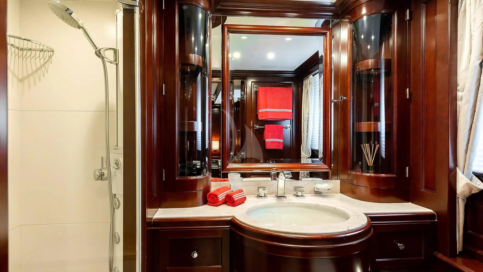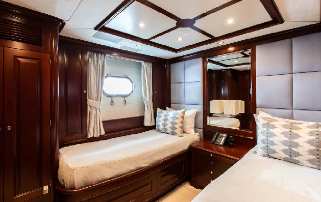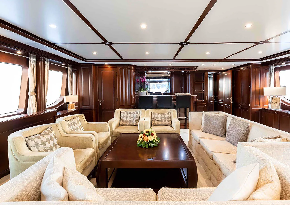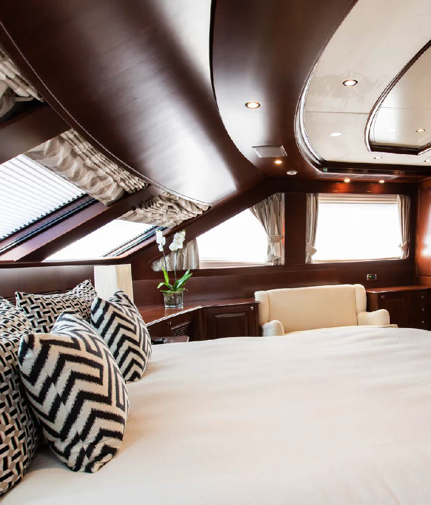 Step inside MI AMORE JULIA and be welcomed by her exquisite interior styling that perfectly blends traditional charm with modern elegance. With accommodations for up to five guests across six beautifully appointed cabins, every detail has been considered to ensure unparalleled comfort during your voyage. The master stateroom is particularly noteworthy—spacious, opulent yet inviting—with additional guest cabins offering equally lavish surroundings.