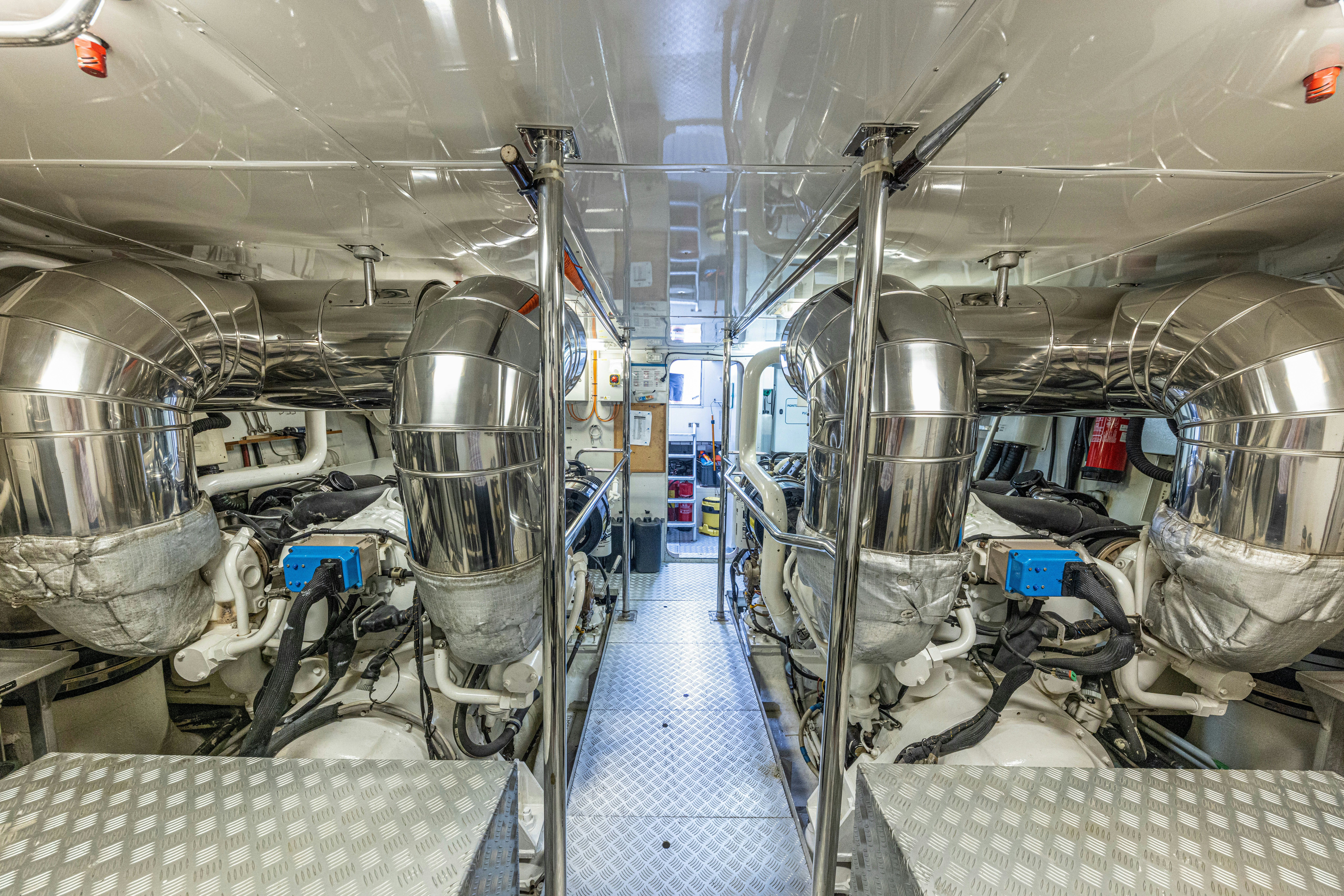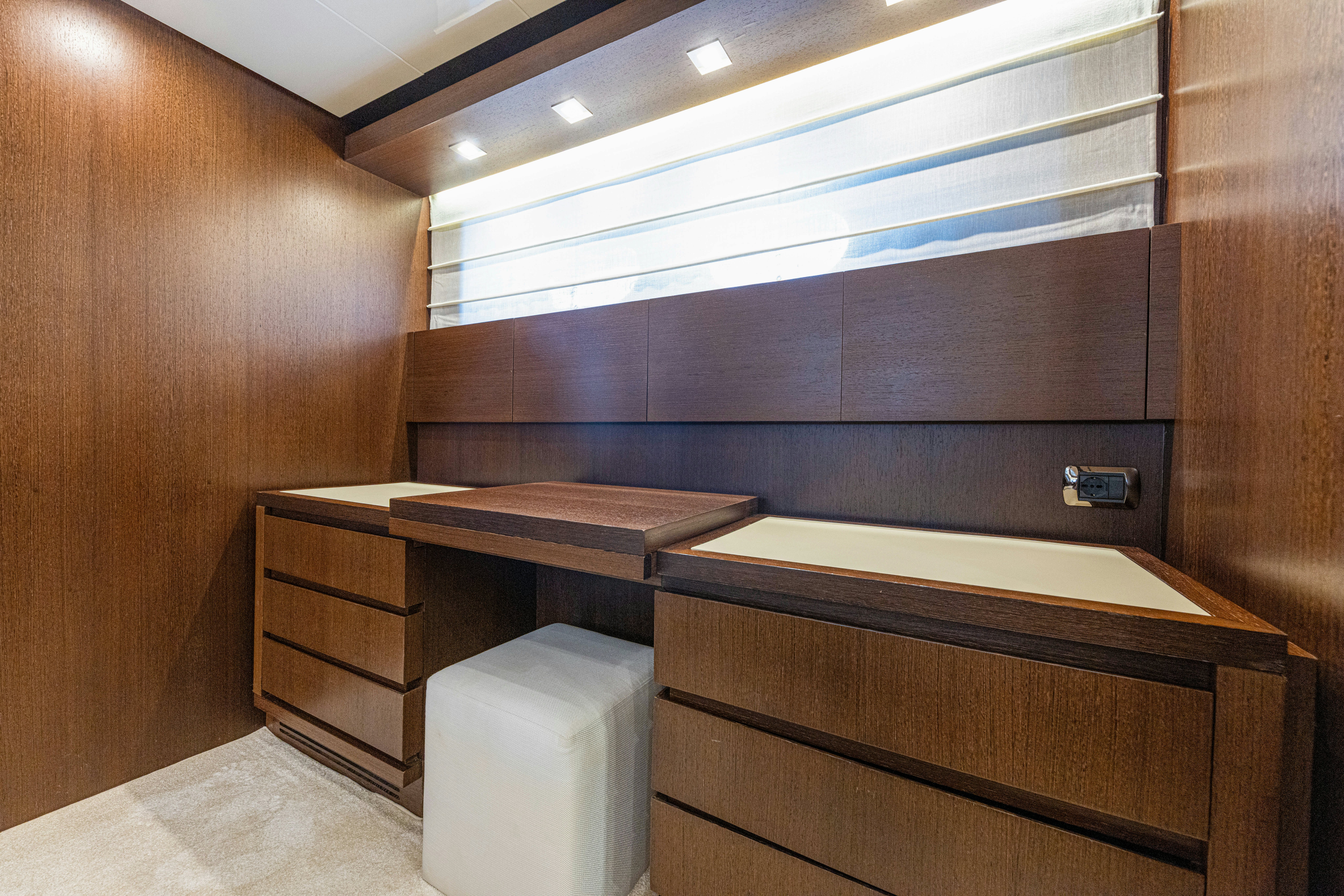Her refit left no detail overlooked. Her hull and superstructure have been fully repainted, preserving her sleek profile, while the addition of an extended swim platform with a lift enhances access to the water. State-of-the-art electronics, upgraded audiovisual systems and refreshed interior furnishings—including Fendi pieces—create a yacht that feels both modern and luxurious. Her thoughtful maintenance, with winter storage each year, ensures she’s in impeccable condition.