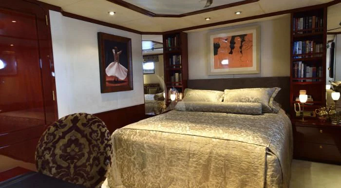 Step inside MERCY BOYS, and you'll be greeted by an interior that exudes warmth, comfort, and opulence. The yacht can comfortably accommodate up to 12 guests across five luxurious cabins – each designed with meticulous attention to detail ensuring an unrivaled staying experience at sea. The master stateroom stands as a symbol of grandeur with its lavish furnishing and sophisticated décor while offering stunning views through large windows that invite plenty of natural light.