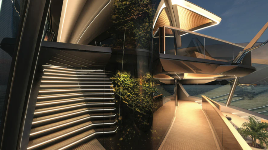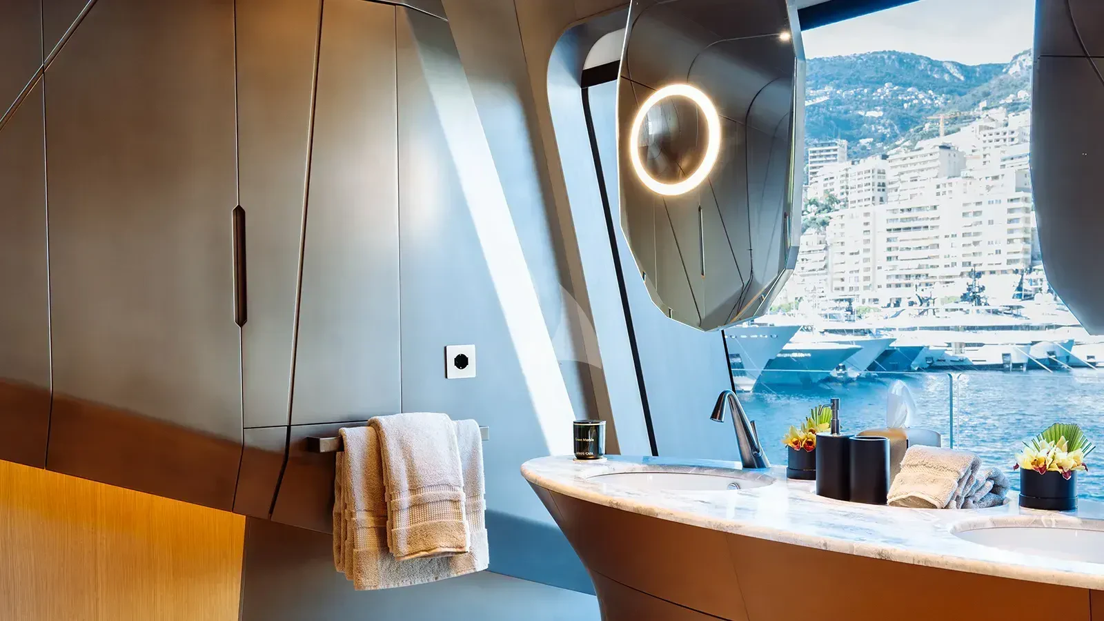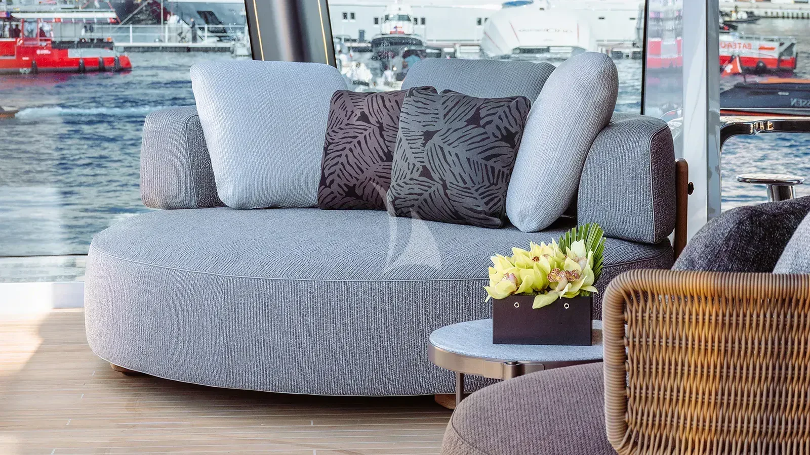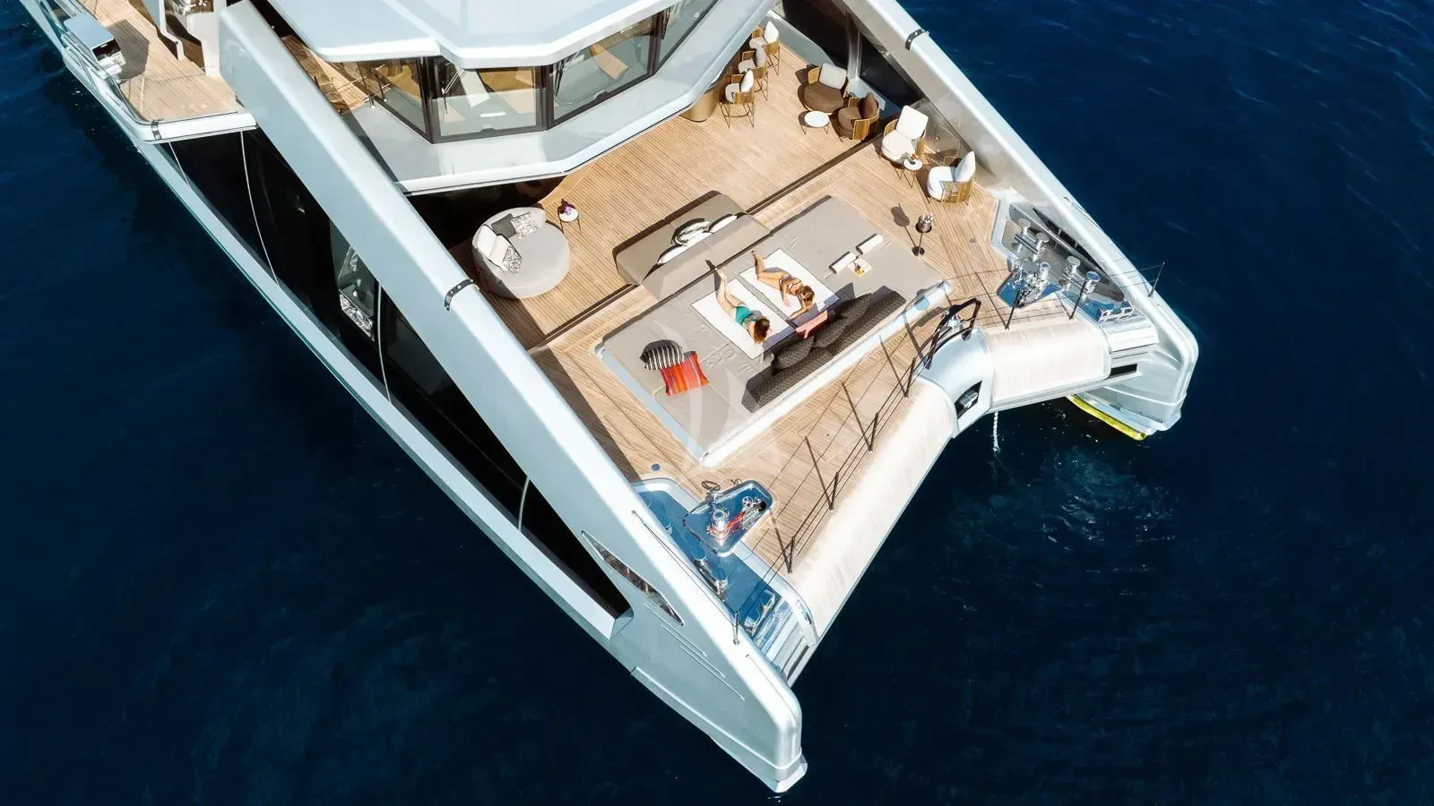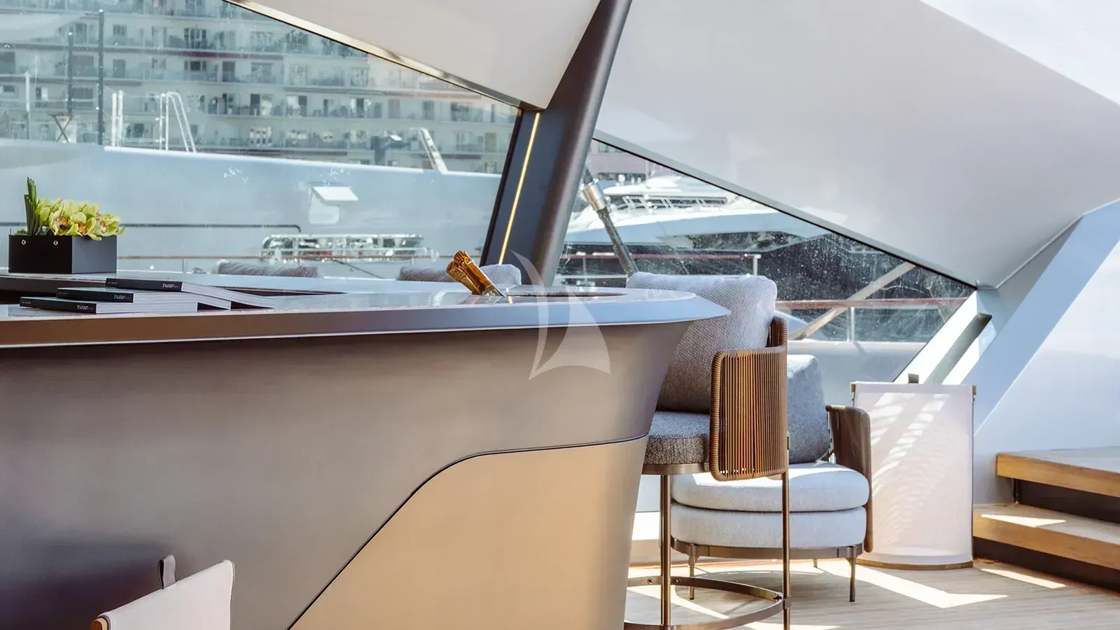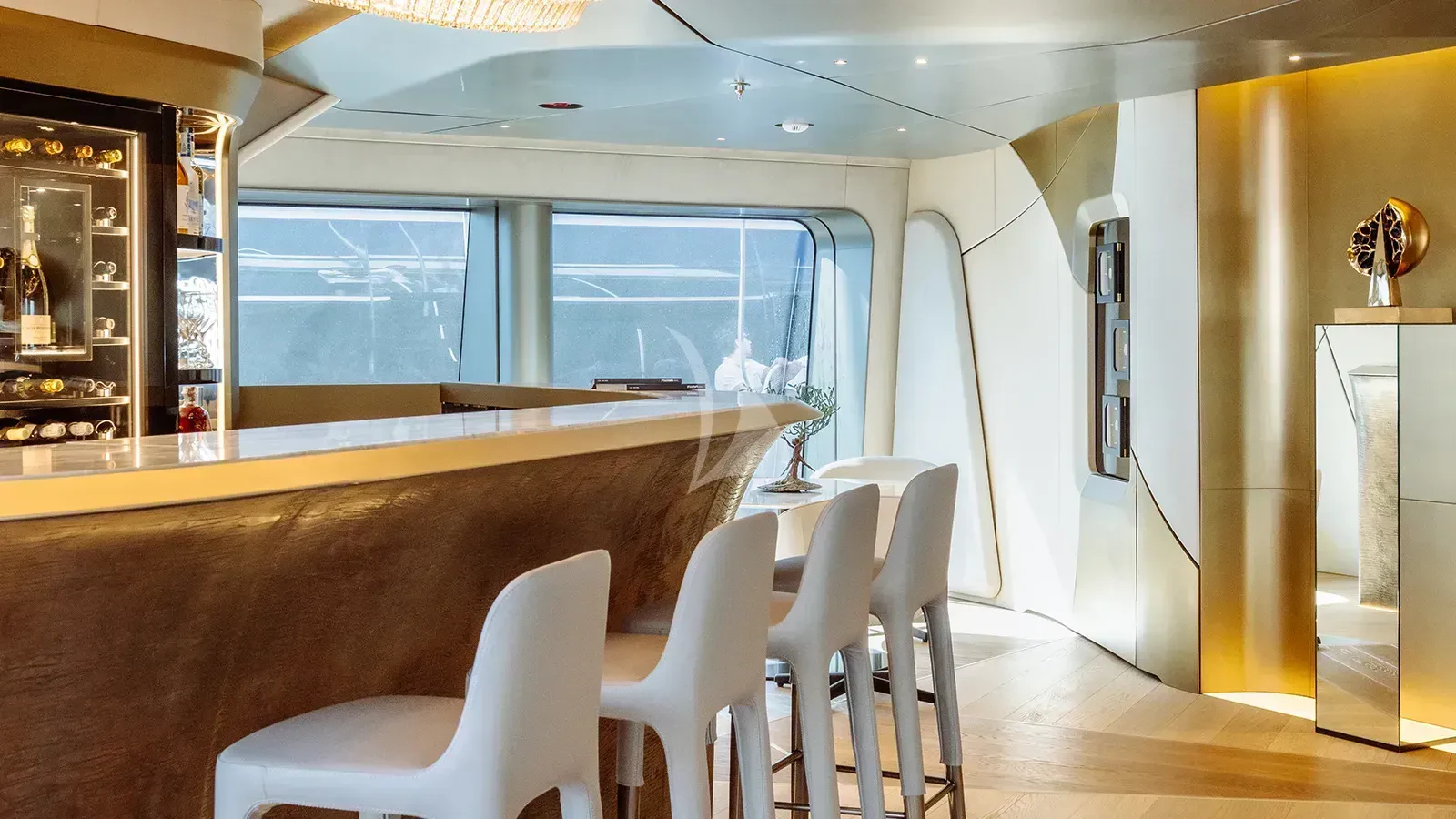 THIS IS IT I's exterior is crafted from robust aluminum, lending it both strength and sleekness. The exterior design showcases a graceful blend of modern lines and timeless elegance that commands attention at every port. Her expansive sundecks are perfect for basking under the sun or enjoying alfresco dining against breathtaking ocean views. Notable exterior features include a lavish swimming pool and a bubbling Jacuzzi - perfect spots for guests to unwind while soaking in panoramic sea vistas.