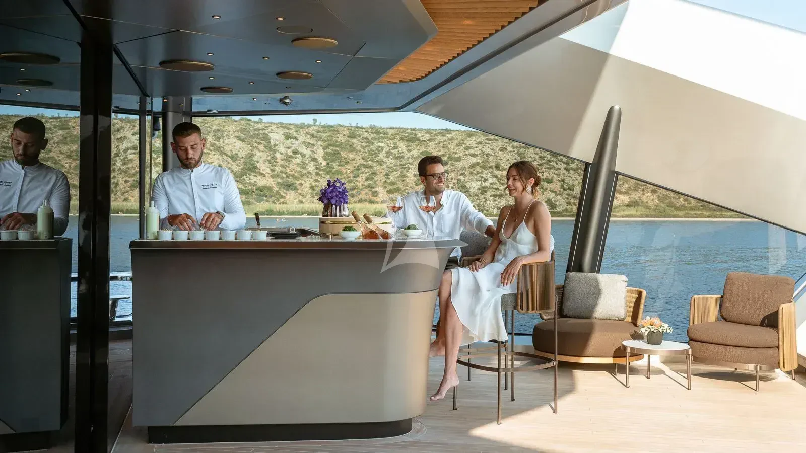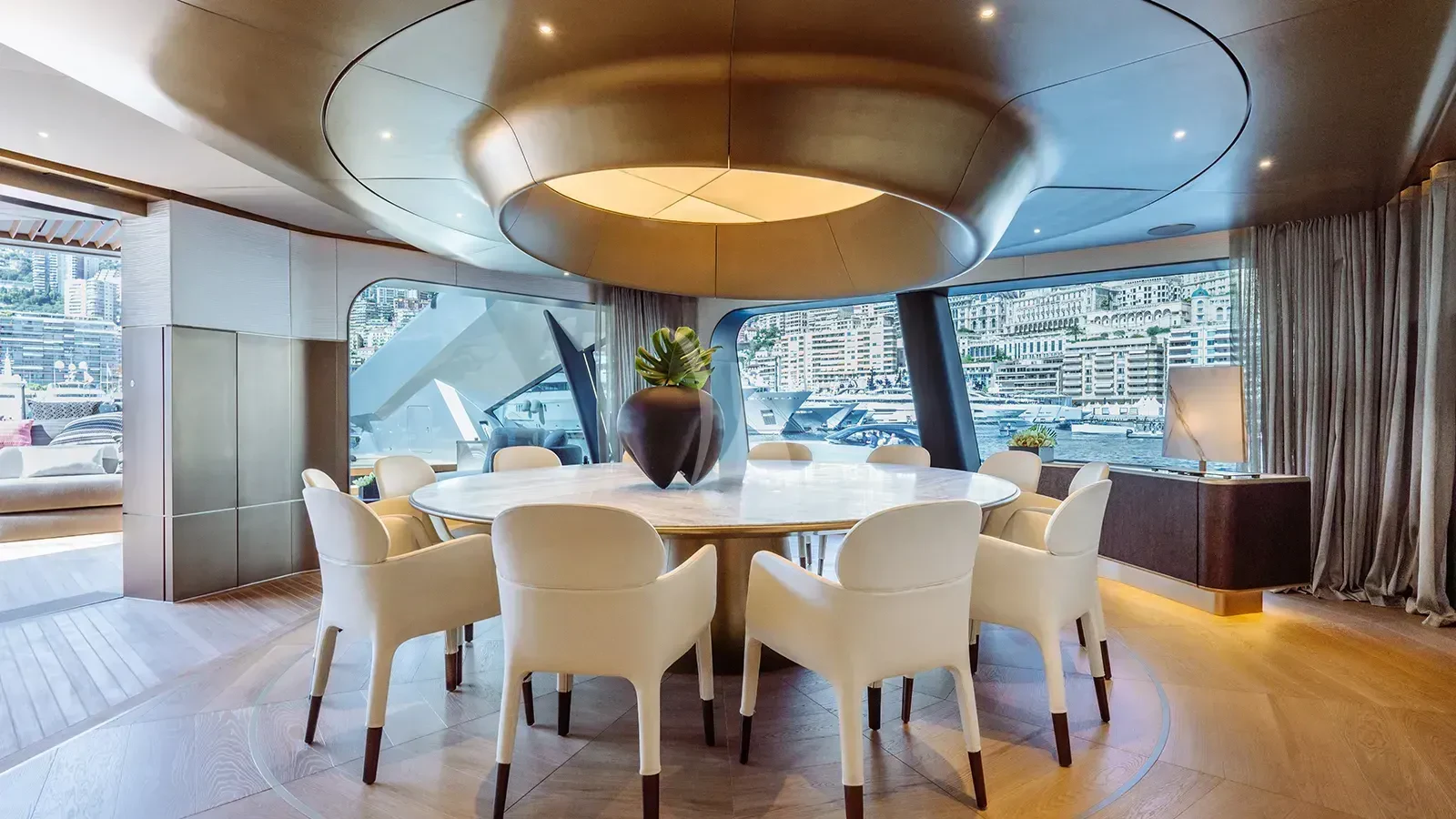 The main salon offers plush seating arrangements where guests can engage in intimate conversations or simply enjoy moments of tranquility while gazing out onto endless seascapes through large picture windows. For gastronomic delights, head over to the expertly appointed dining area that sets the stage for memorable culinary experiences curated by skilled chefs on board.