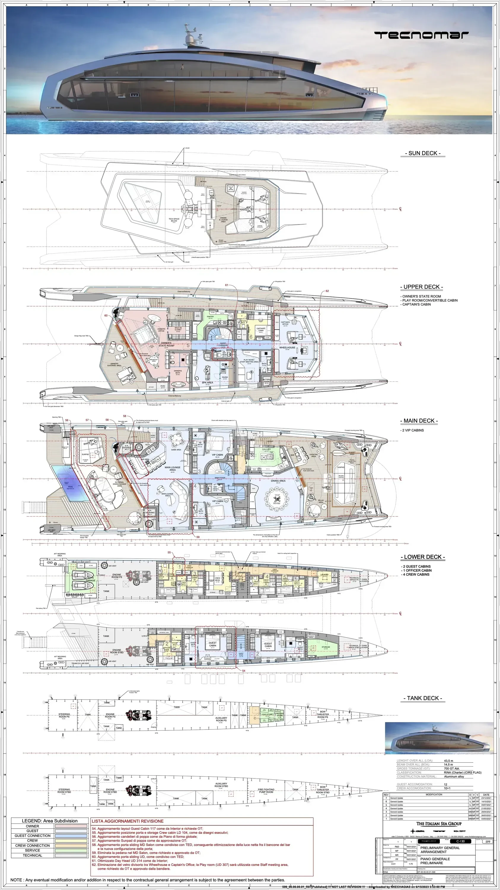 Introducing the epitome of luxury and elegance, the captivating super motor yacht, THIS IS IT I. Launched by Tecnomar in 2024, this custom-built model is a true testament to superior craftsmanship and innovative design. Spanning an impressive 142 feet (43.5 meters) in length with a beam of nearly 47 feet (14.98 meters), her grandeur is undeniable as she cuts through the water at speeds reaching up to 19 knots.