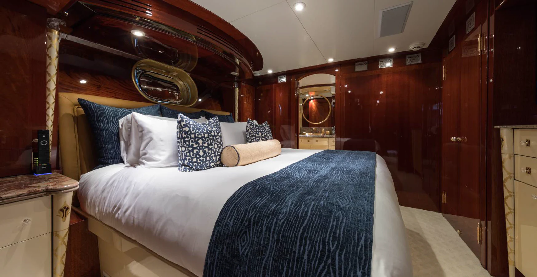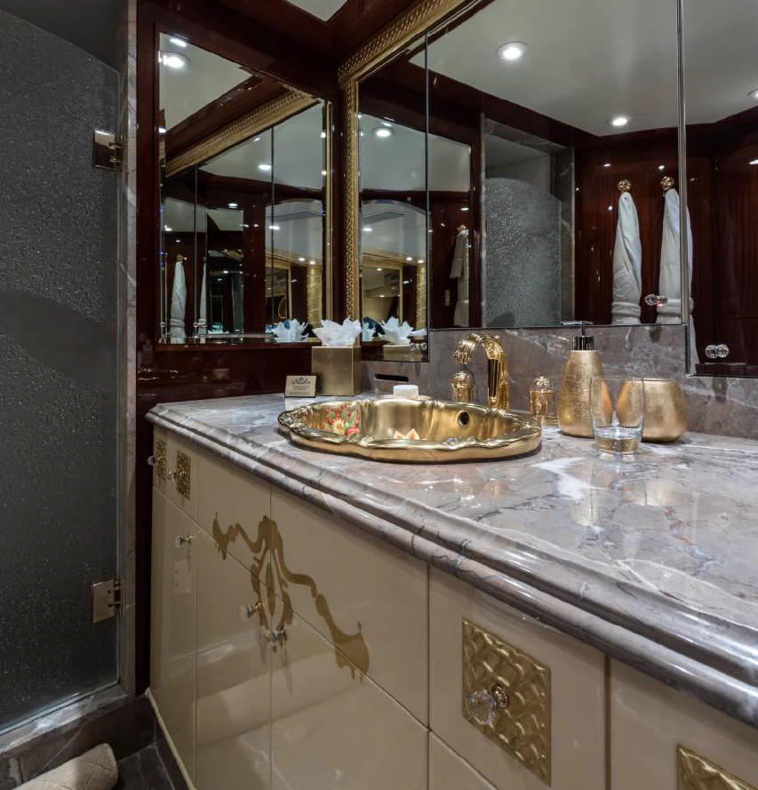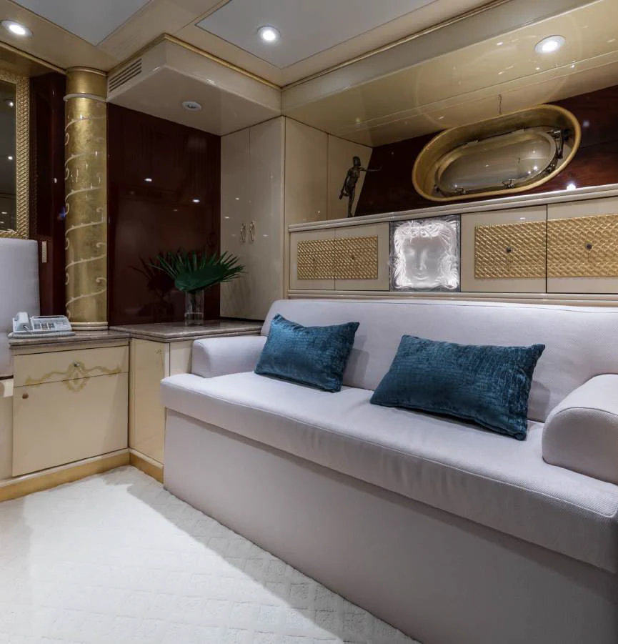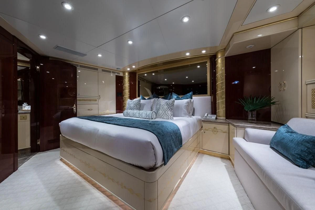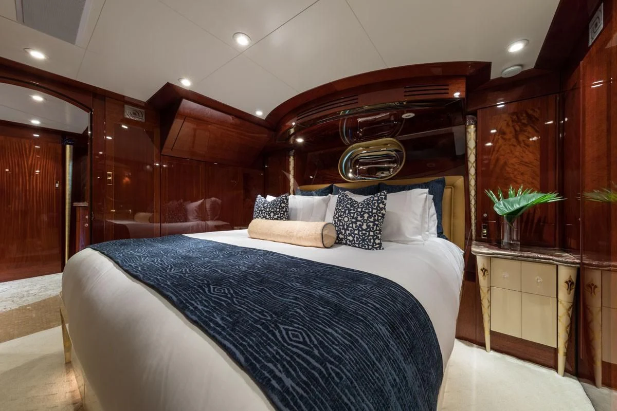 Step inside TOUCH to discover her luxurious interiors that perfectly blend comfort and style. She boasts four beautifully appointed cabins that can accommodate up to eight guests comfortably. The master stateroom is nothing short of impressive - spacious yet cozy with tasteful decor that creates an inviting ambiance for restful nights at sea. Each guest cabin is equally appealing with plush bedding and en-suite bathrooms offering complete privacy for each guest onboard.