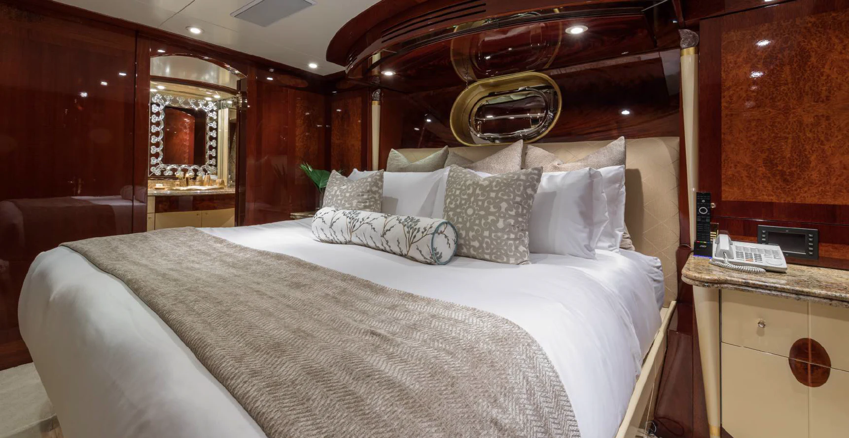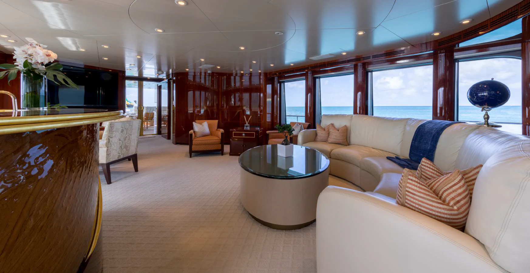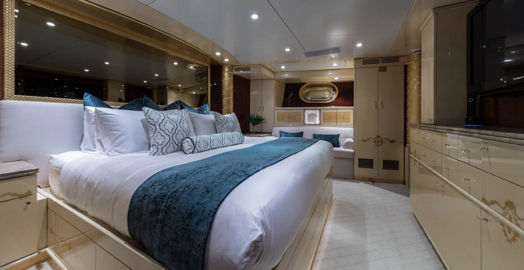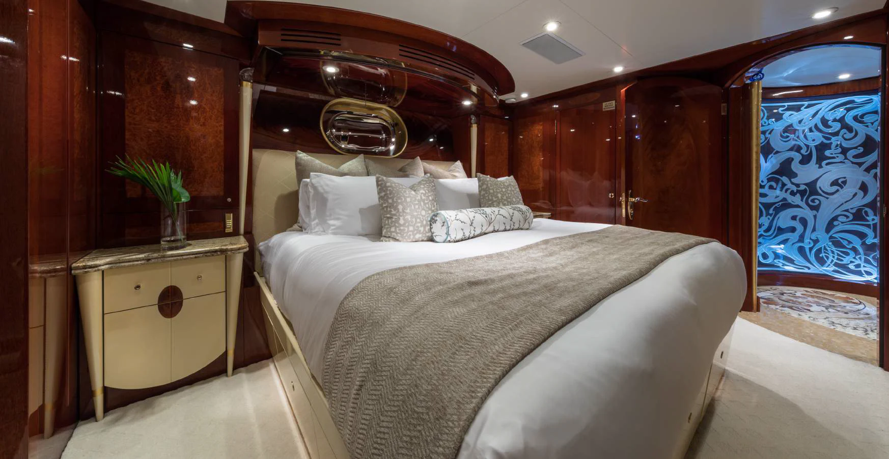 Step inside TOUCH to discover her luxurious interiors that perfectly blend comfort and style. She boasts four beautifully appointed cabins that can accommodate up to eight guests comfortably. The master stateroom is nothing short of impressive - spacious yet cozy with tasteful decor that creates an inviting ambiance for restful nights at sea. Each guest cabin is equally appealing with plush bedding and en-suite bathrooms offering complete privacy for each guest onboard.