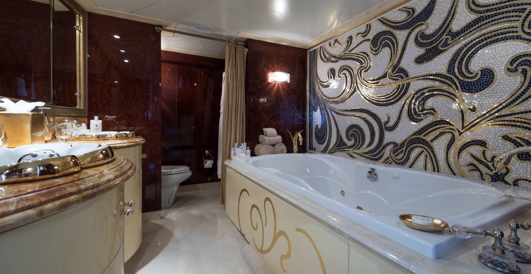 TOUCH offers more than just stunning accommodations; she also provides top-notch amenities designed for optimal enjoyment during your journey at sea. For fitness enthusiasts, there's a well-equipped gym onboard where you can keep up with your workout routine even while cruising in paradise. If you're looking forward to some water fun, we have personal watercrafts ready for use anytime you wish! After an action-packed day filled with adventures, unwind by watching your favorite films in our movie theater or simply relax in any of our lounging areas fitted with Wi-Fi connectivity so you can stay connected wherever you are on board.